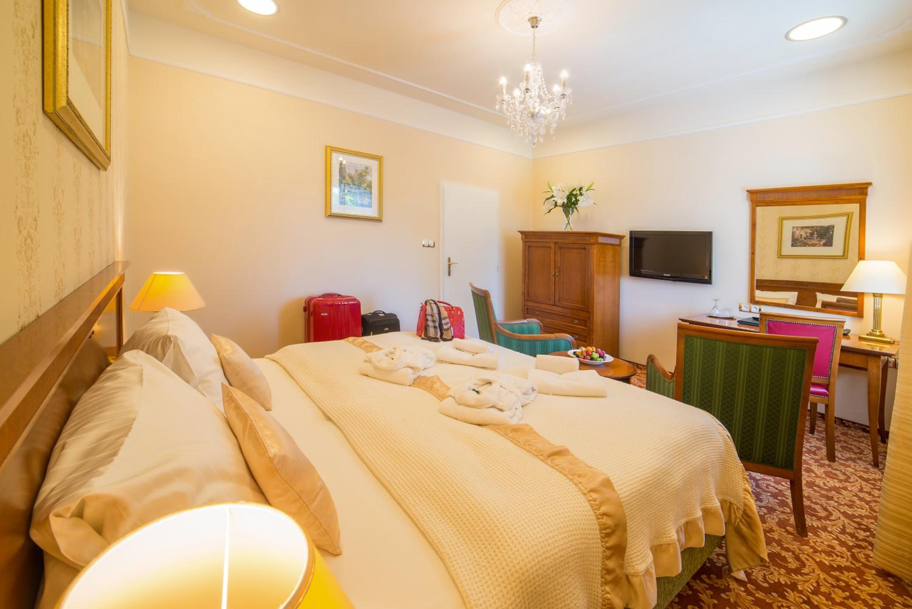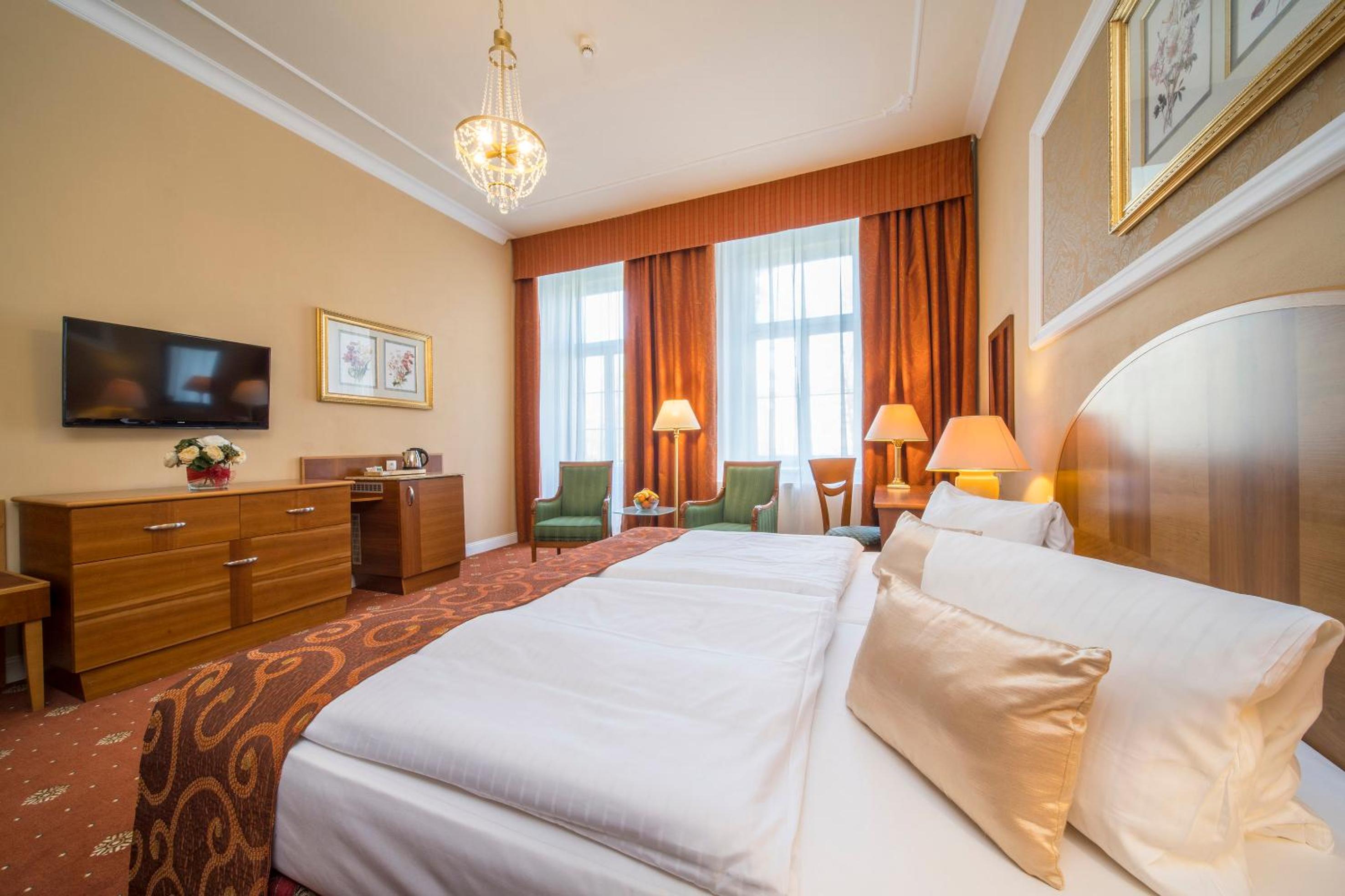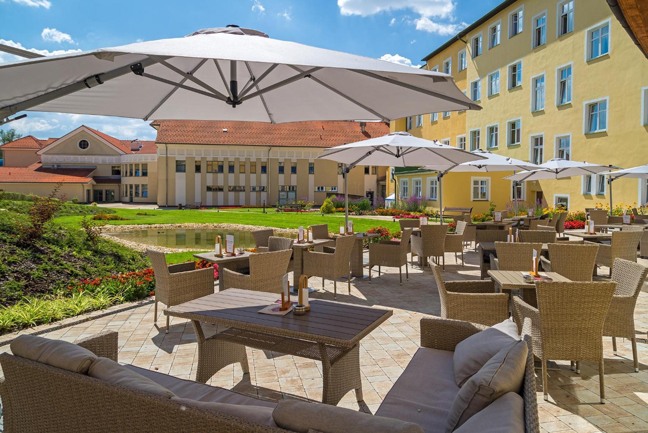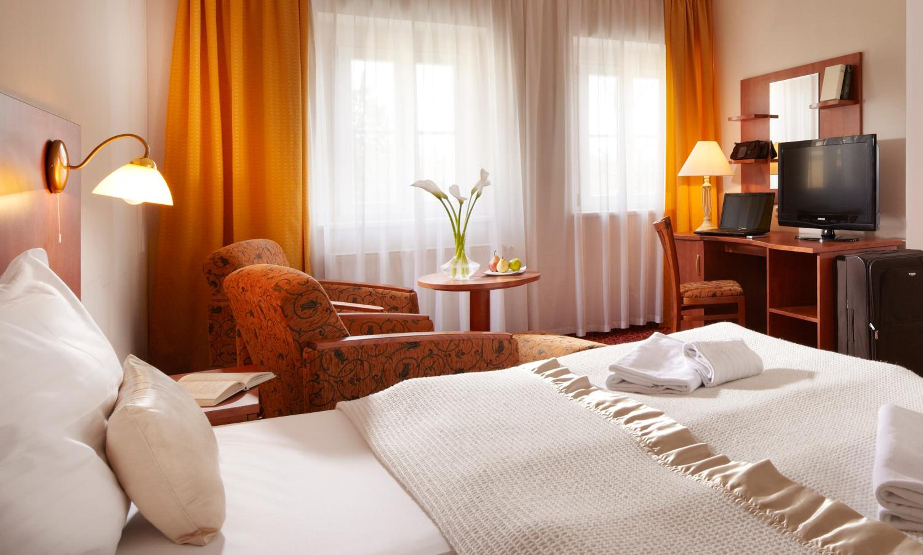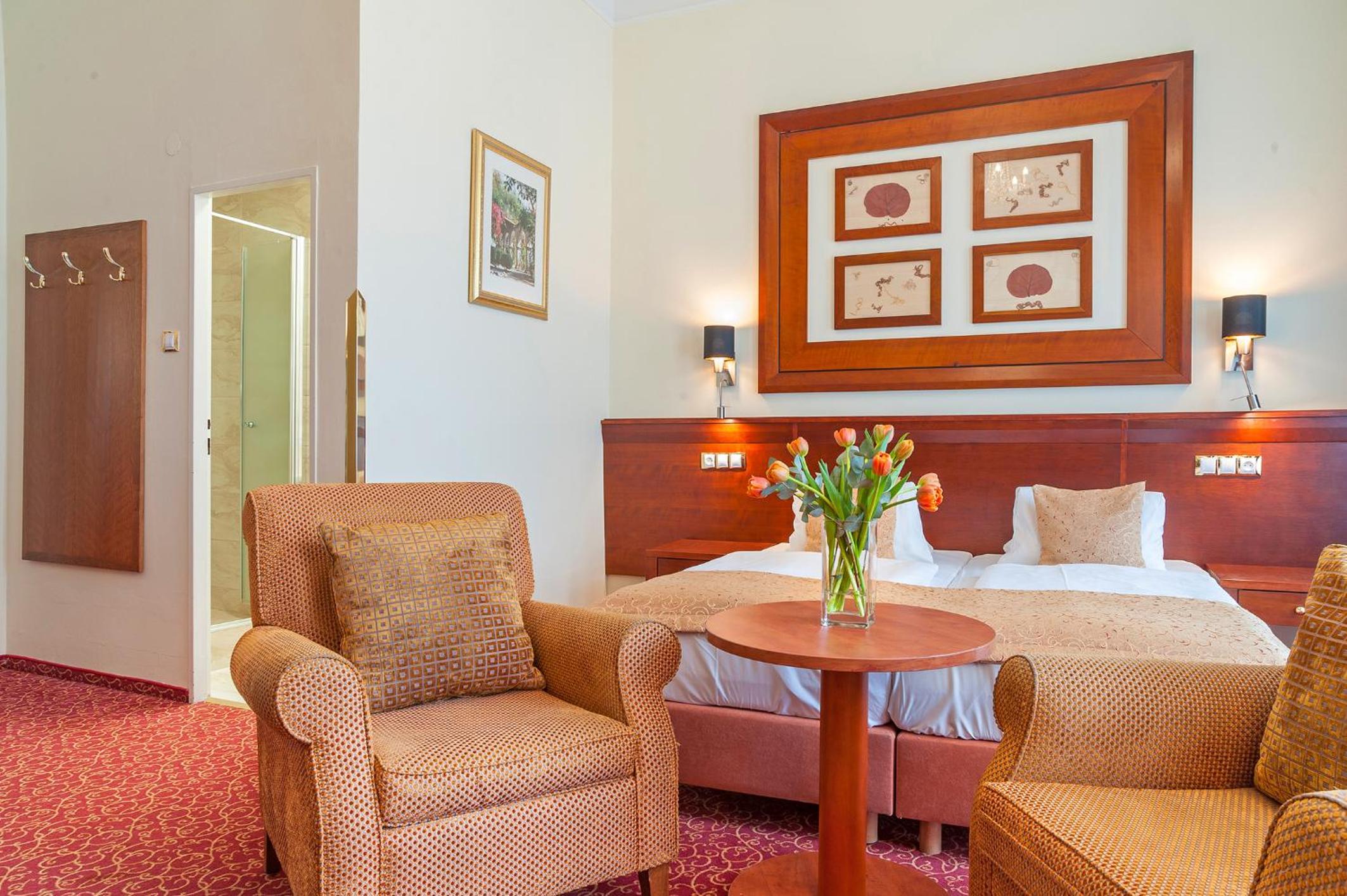 Hotel PAWLIK-AQUAFORUM offers a luxurious stay with views of the park or garden from every room. Enjoy modern amenities like free WiFi, LCD satellite TV, and a minibar. Relax in the comfort of your room with a private bathroom featuring a bath or shower.