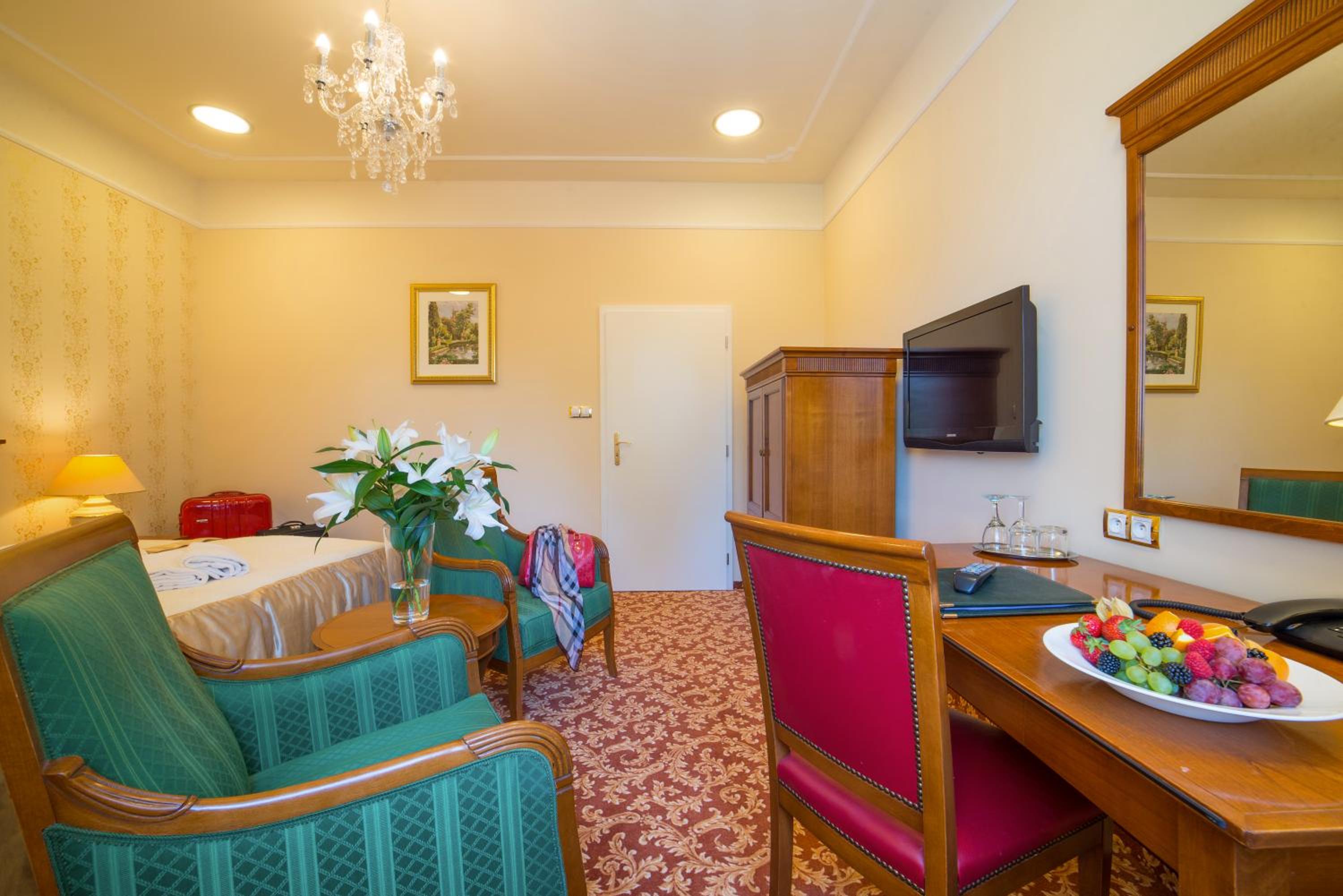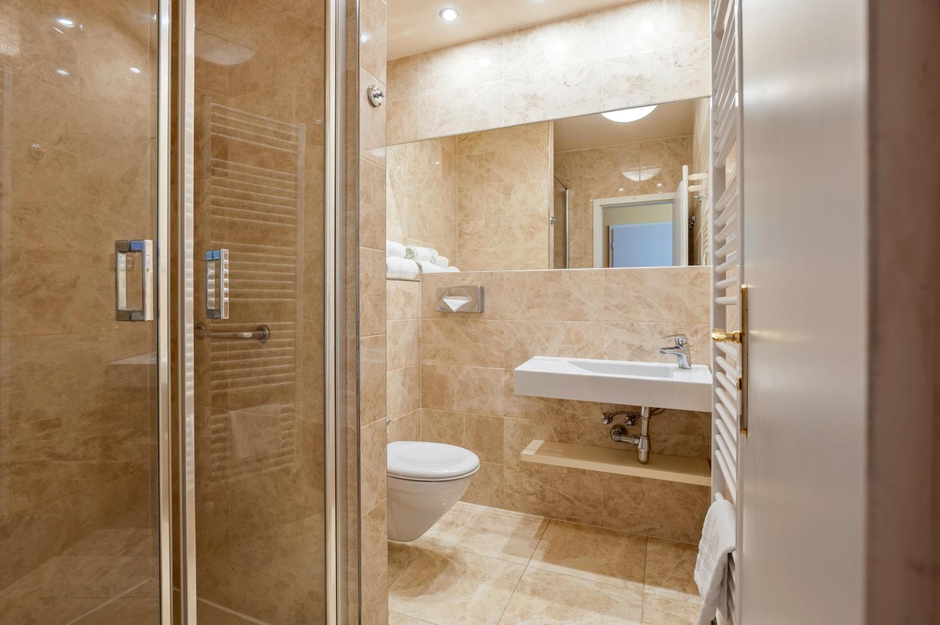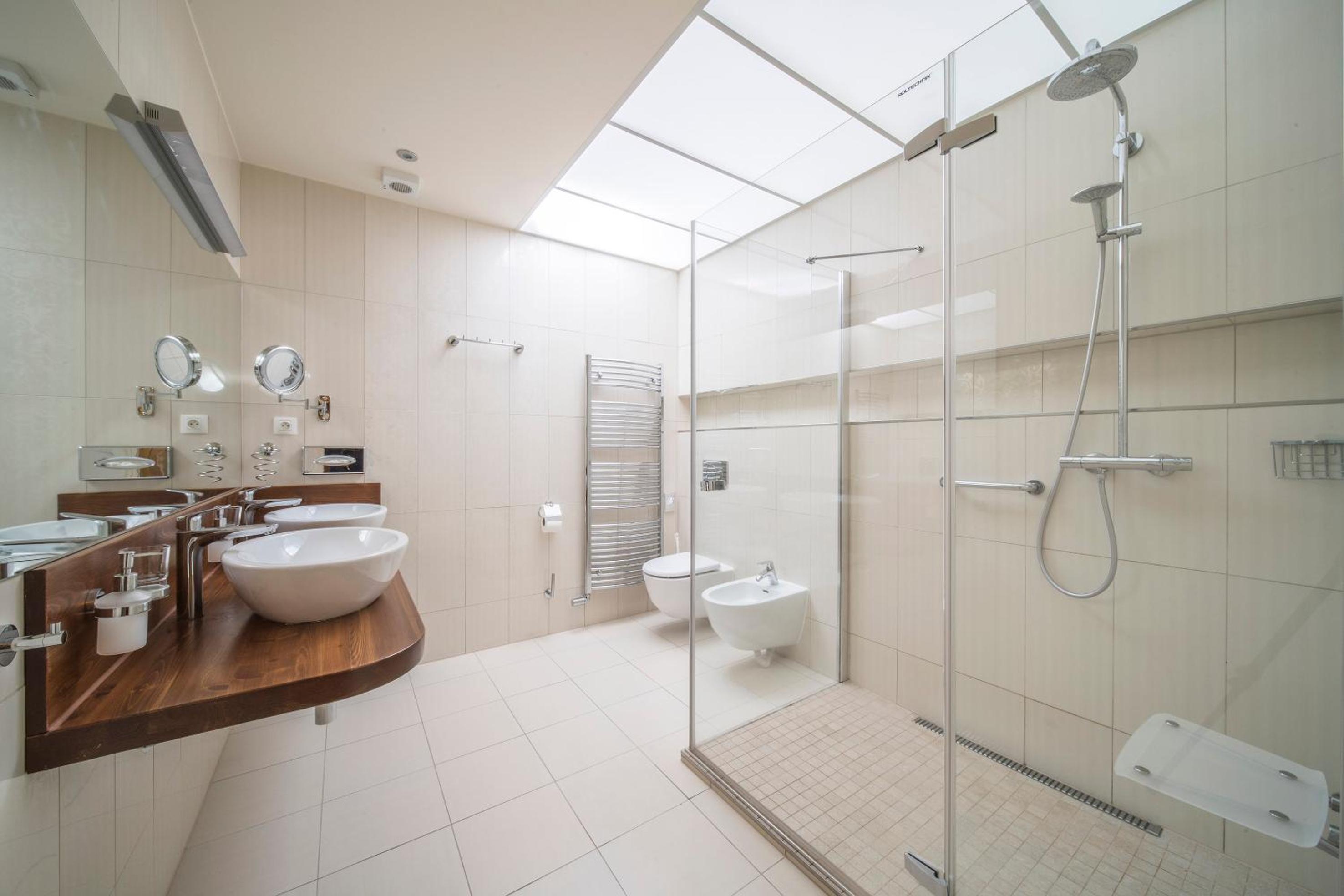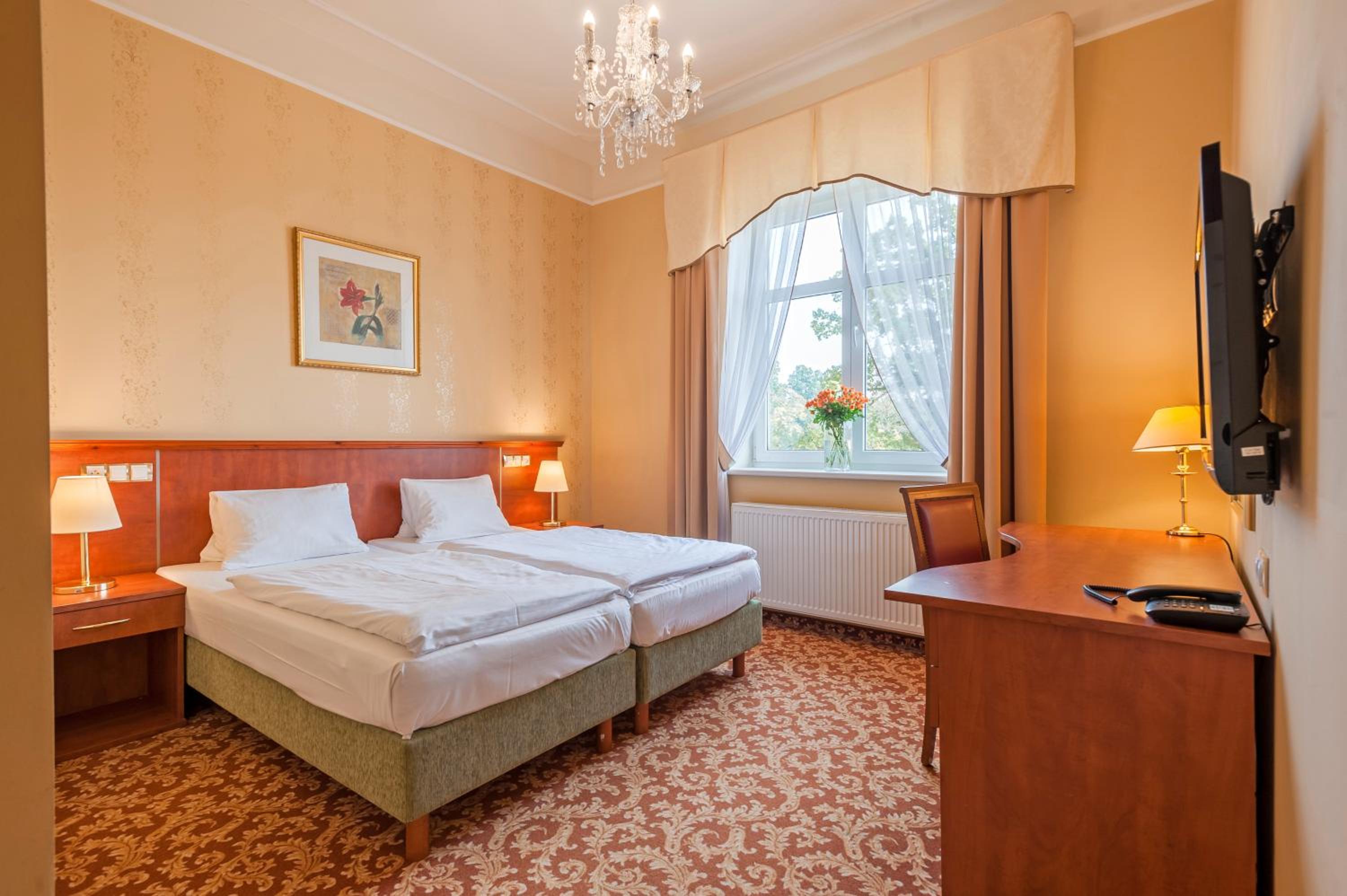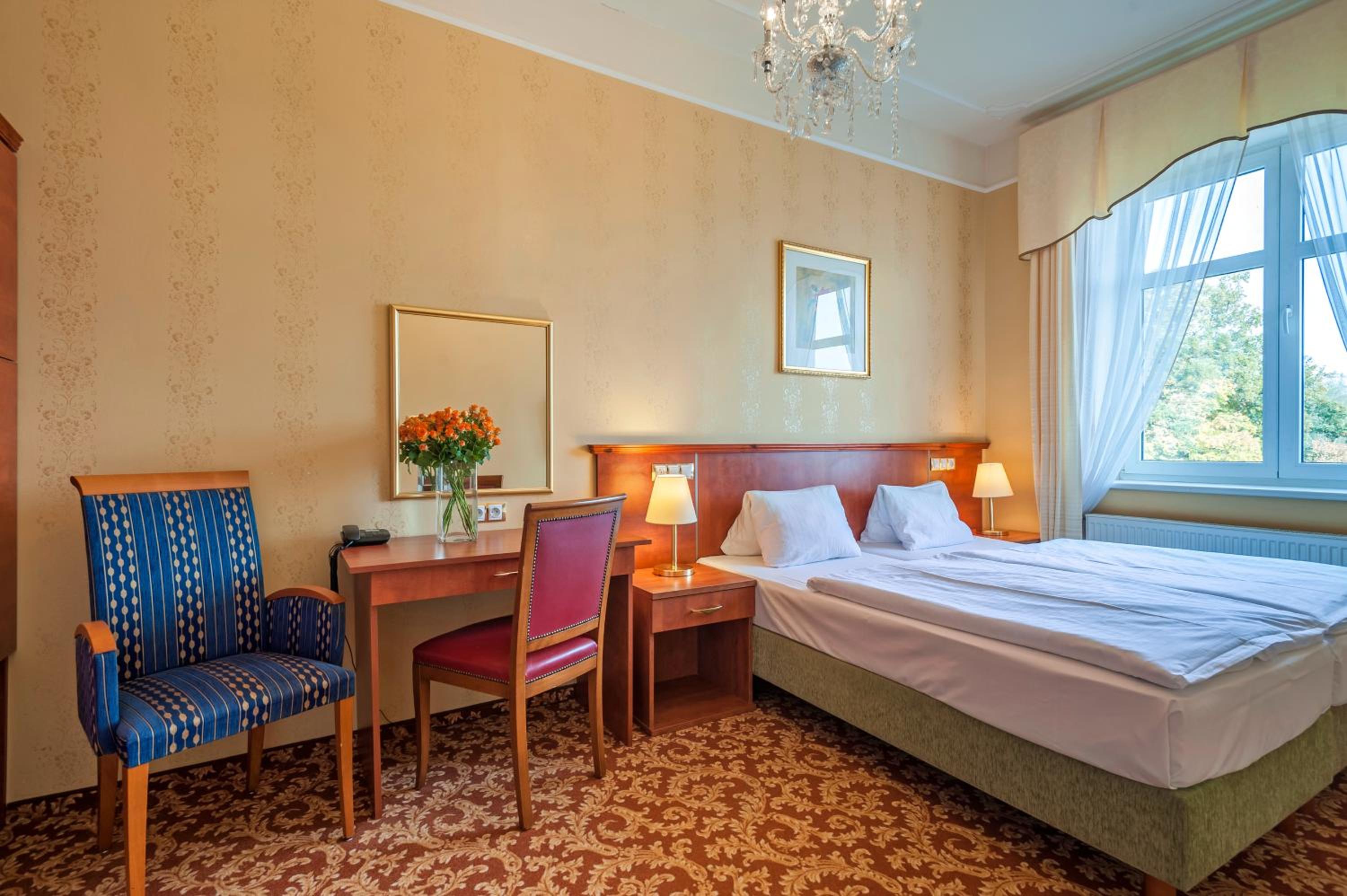 Hotel PAWLIK-AQUAFORUM offers a luxurious stay with views of the park or garden from every room. Enjoy modern amenities like free WiFi, LCD satellite TV, and a minibar. Relax in the comfort of your room with a private bathroom featuring a bath or shower.