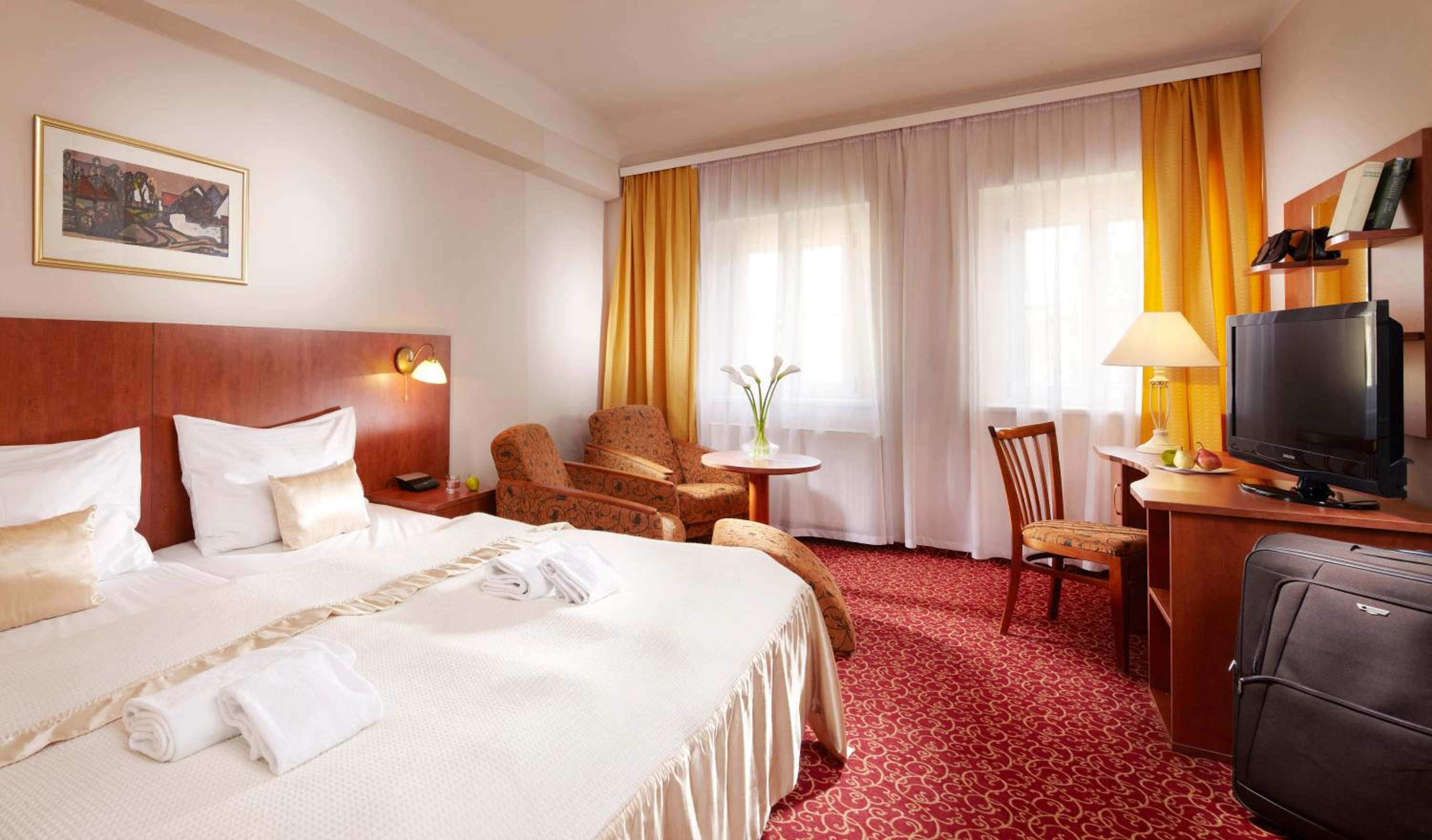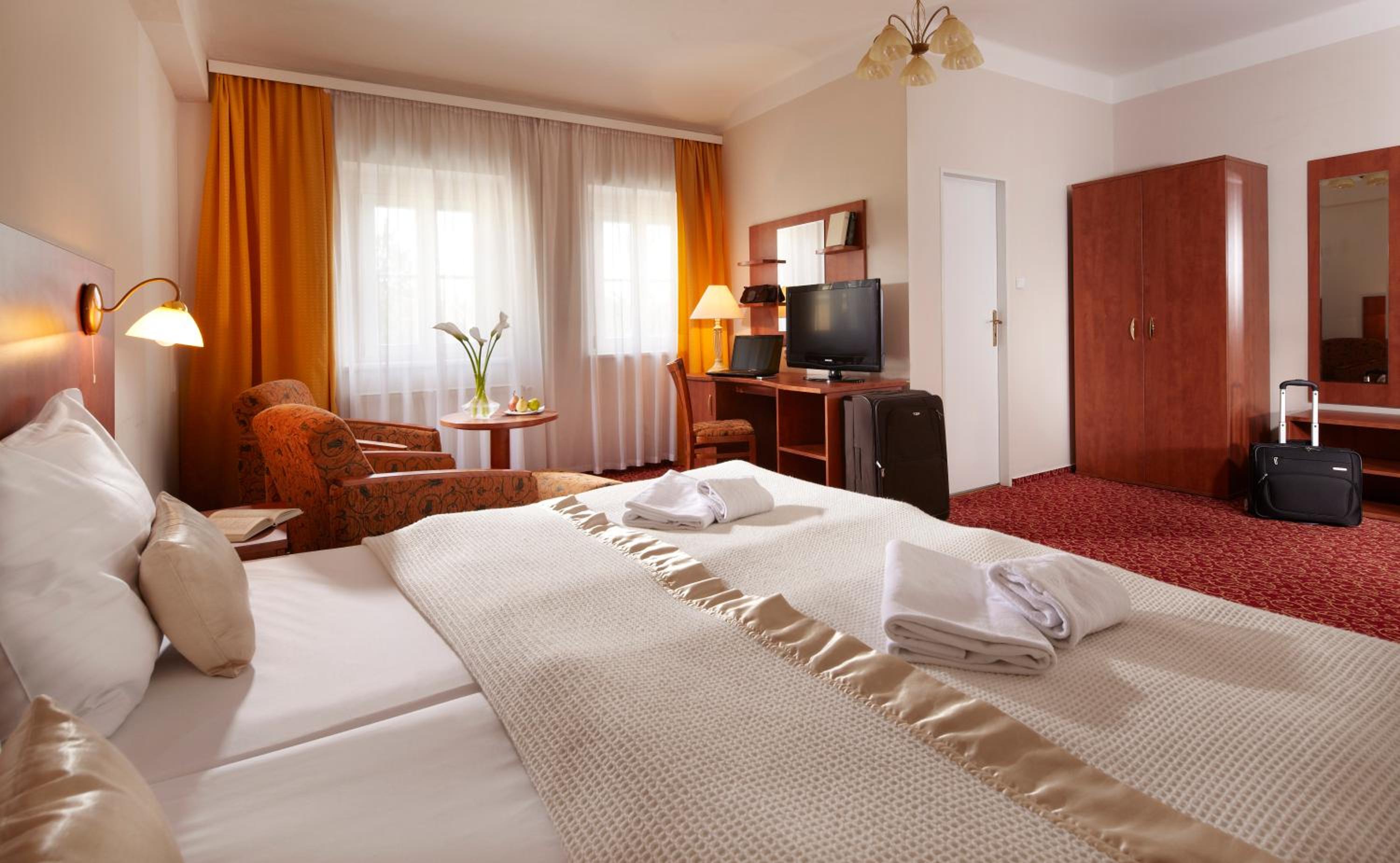 Indulge in a buffet breakfast each morning and savor Czech and international cuisine at the on-site restaurant. Unwind in the hot tub or stay active at the fitness center. For relaxation, visit the sauna (surcharge) or rent a bicycle to explore the area.