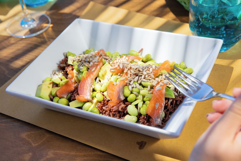 We had half board meals. The buffet was ok but the dinner menu was not. I had to return the food once. In 2 other nights, the food was undercooked. They cooked the food again. We ate lunch in another restaurant. We ate fish. They charged us 10 euros for each single shrimp. Besides the very high price for each fish.