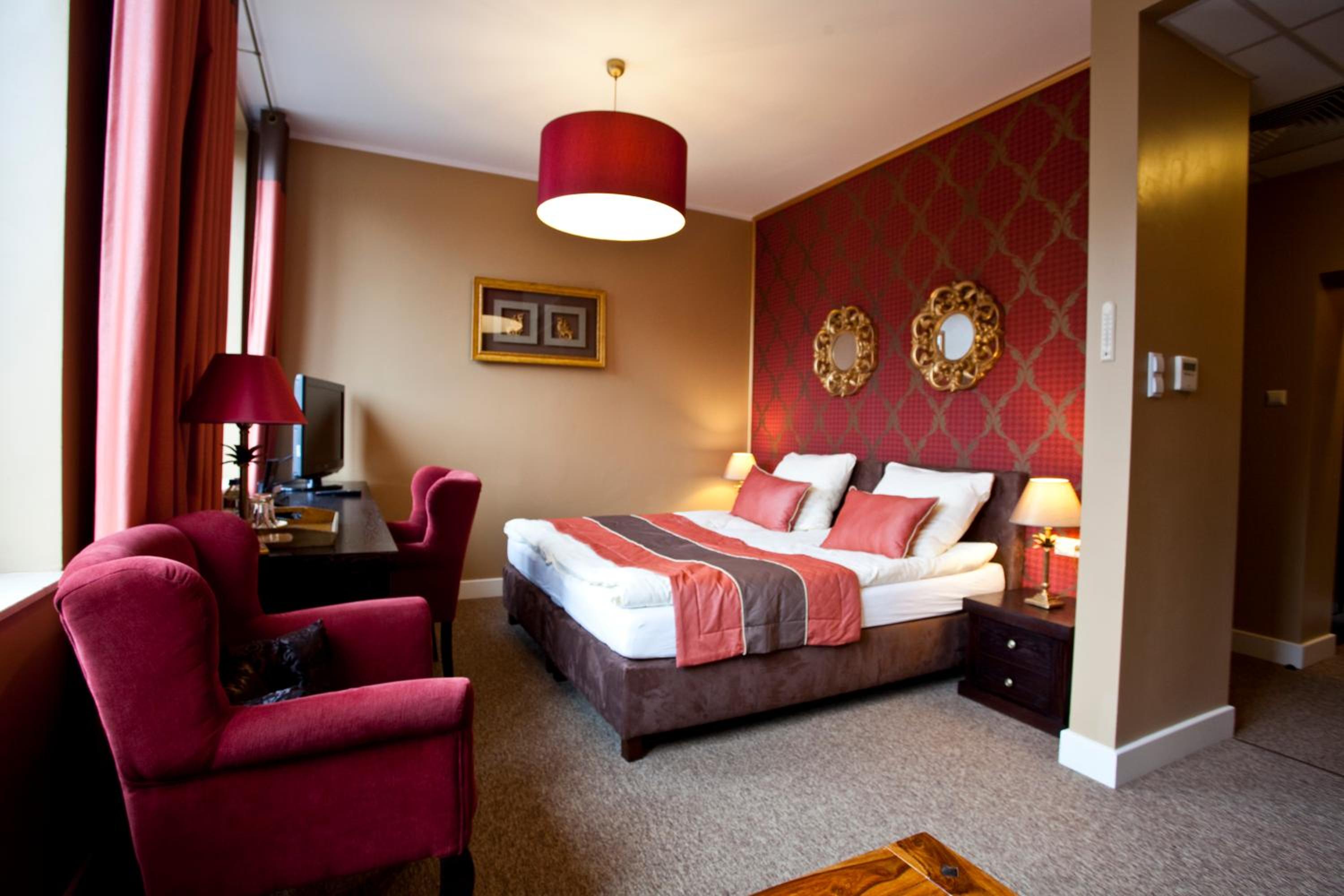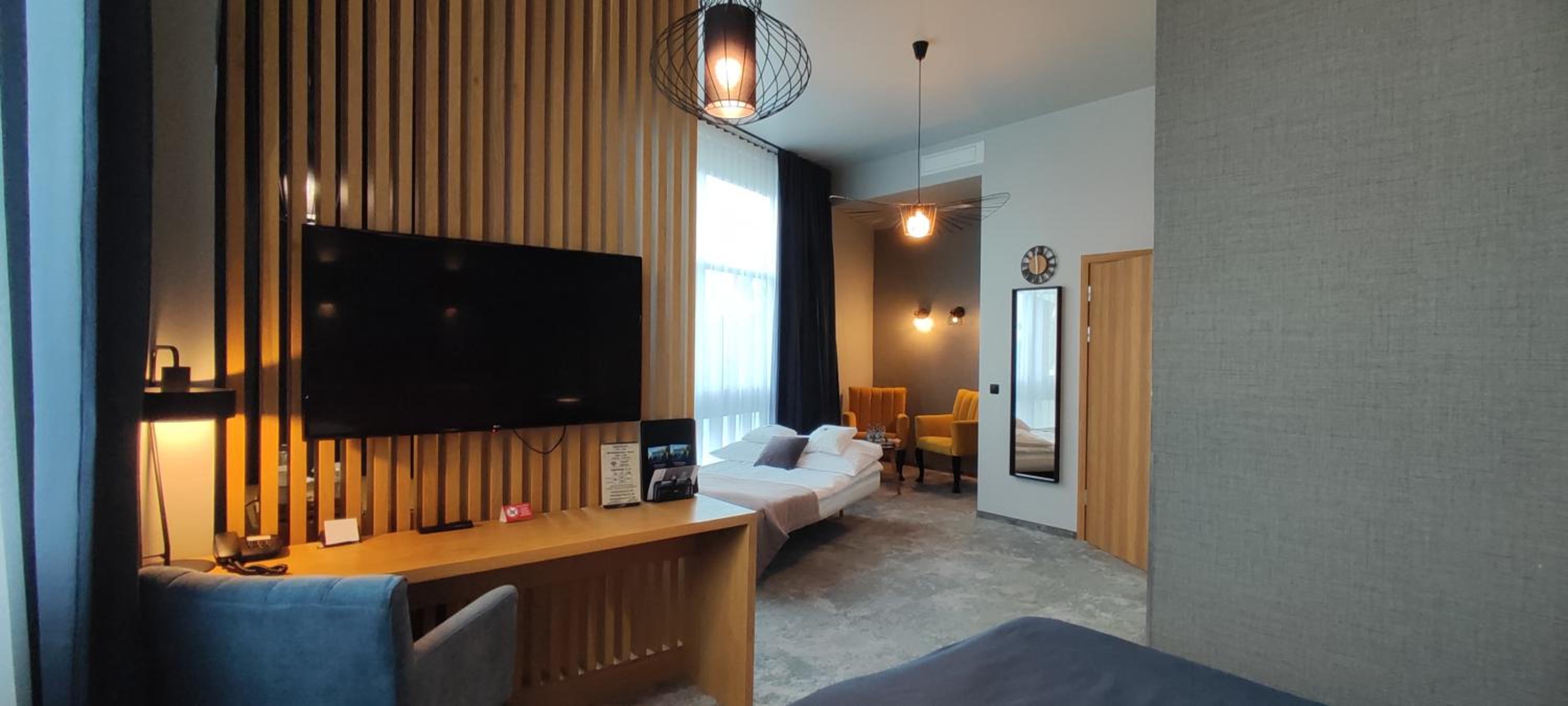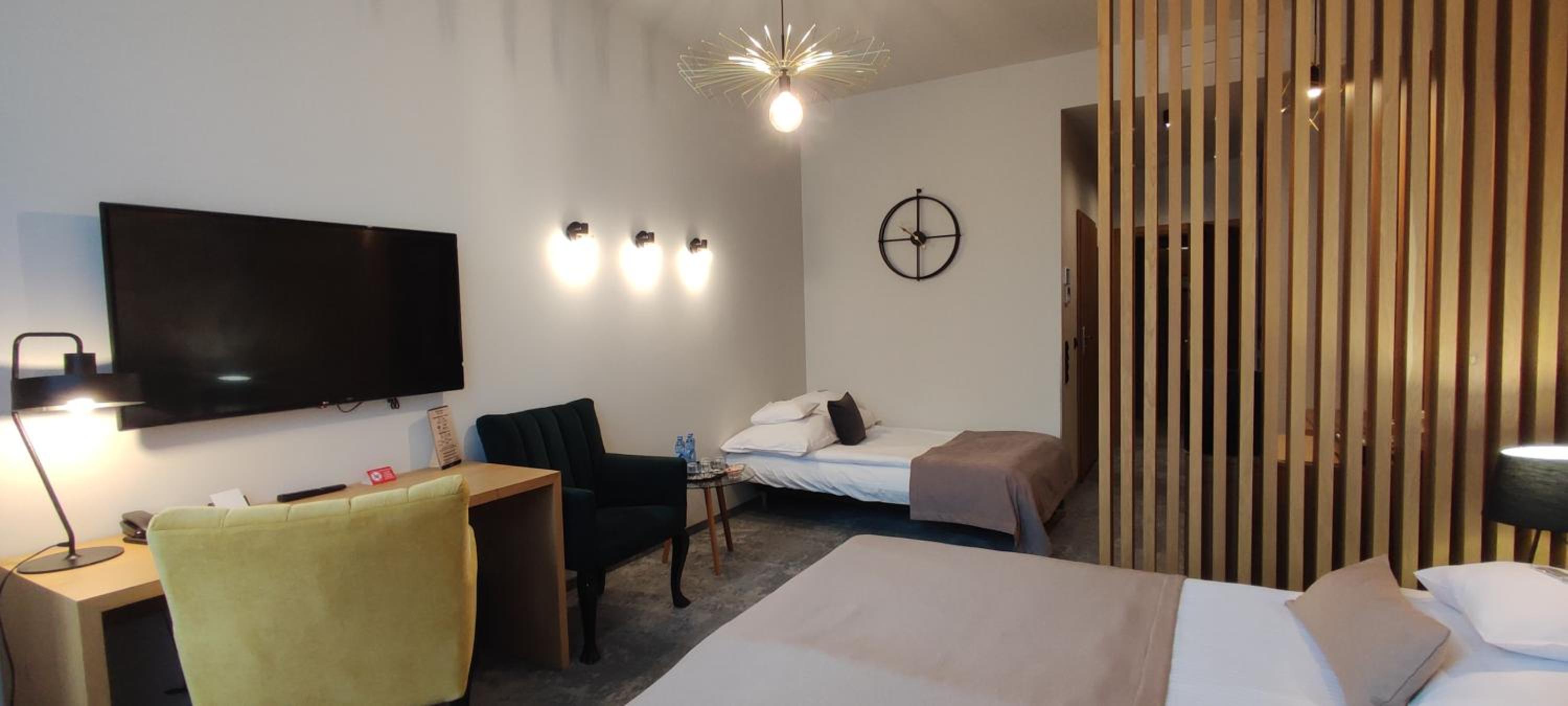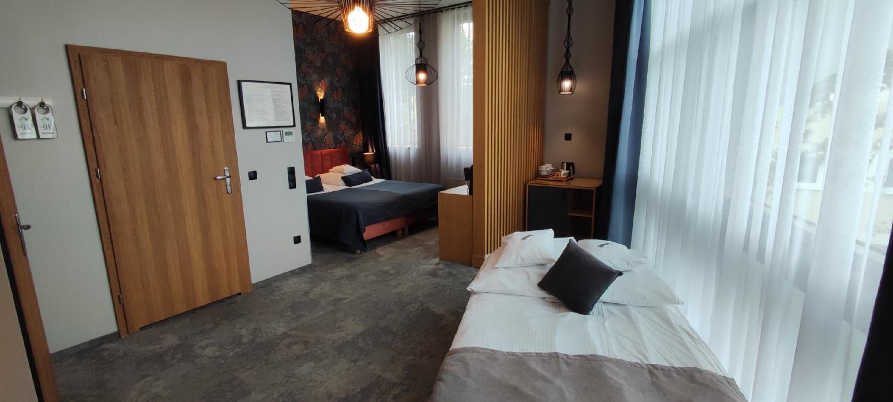Lokalizacja bardzo dobra, blisko centrum/rynku. Okolica cicha. Czyściutko wszędzie (pokój, korytarze, restauracja). Pokój "family", gustownie urządzony, bardzo wygodny, przestronny, funkcjonalny, spora łazienka z dużą ilością miejsca na kosmetyki i akcesoria. Zadbano o wszelkie szczegóły (podświetlane wnętrza szaf, 3 rodzaje poduszek, żelazko i deska do prasowania, nawet słodkości w pokoju, a w łazience pięknie pachnące, aksamitne mydełko). Śniadania bogate, różnorodne. Obsługa bardzo miła i pomocna. Polecam dania z karty, bo w restauracji serwują przepyszne jedzenie (w dobrych cenach). Sama restauracja jest klimatyczna, z bardzo wygodnymi fotelami.