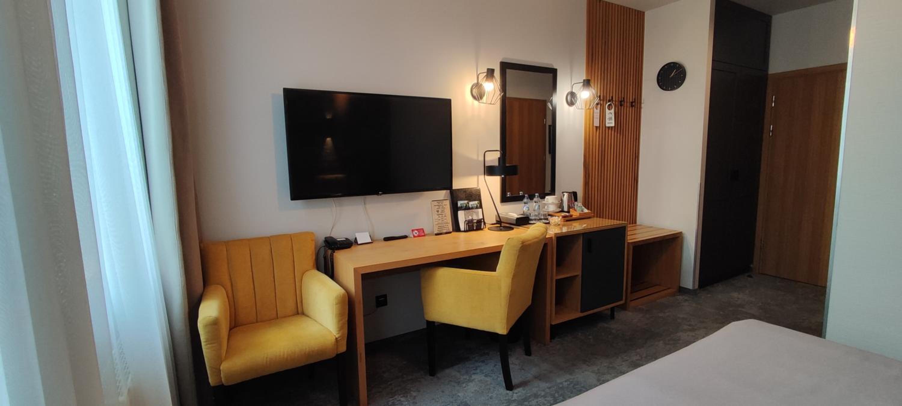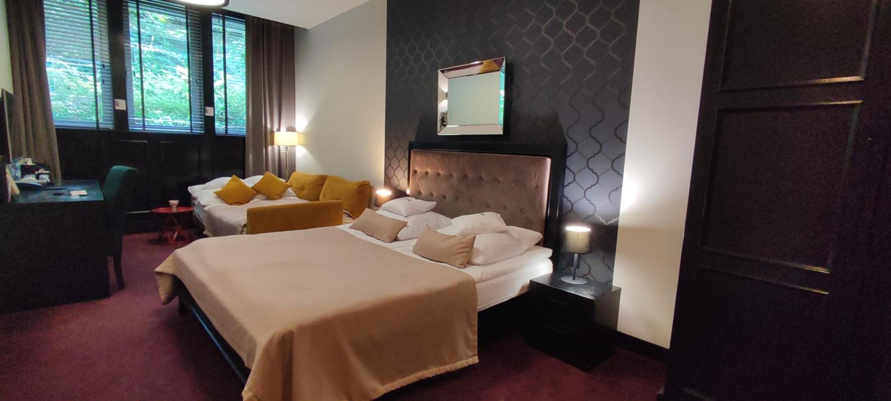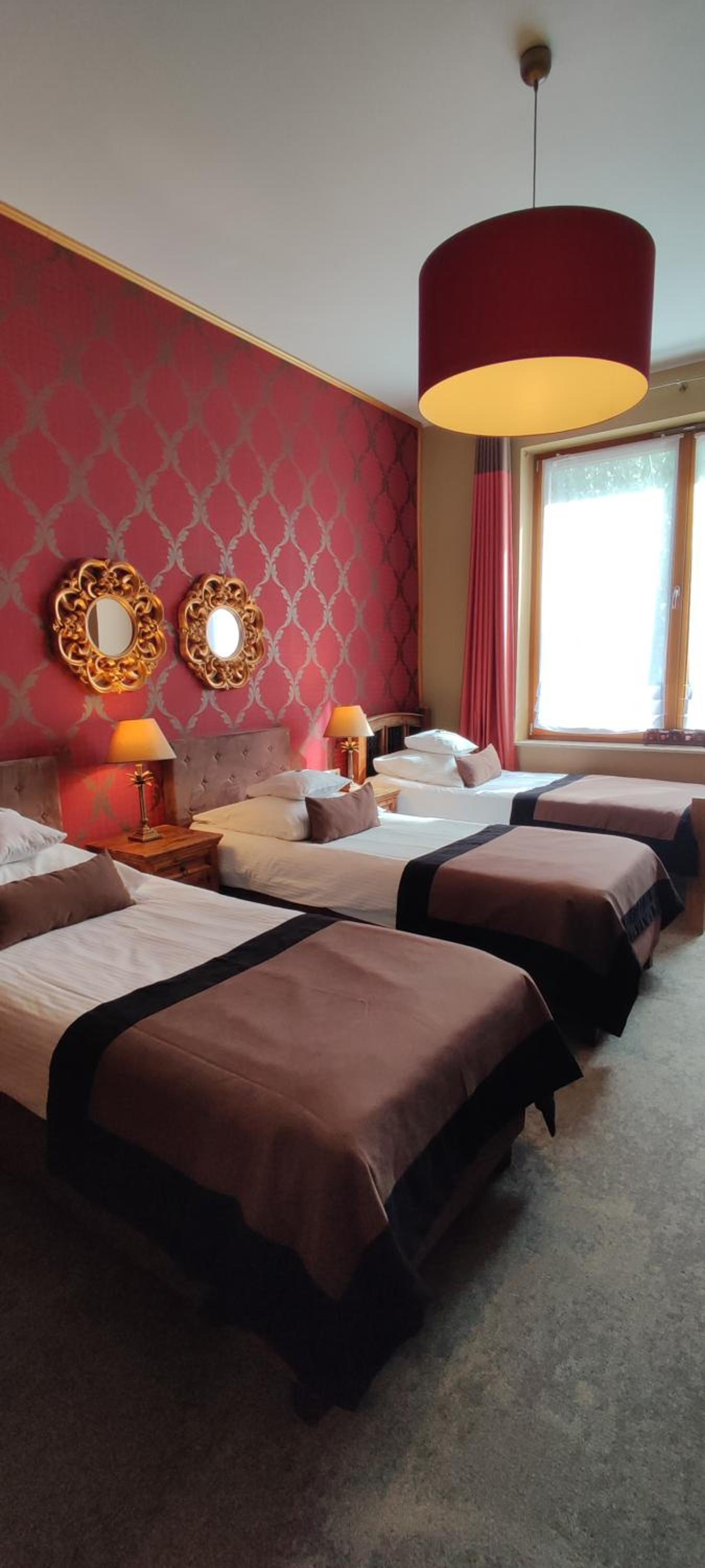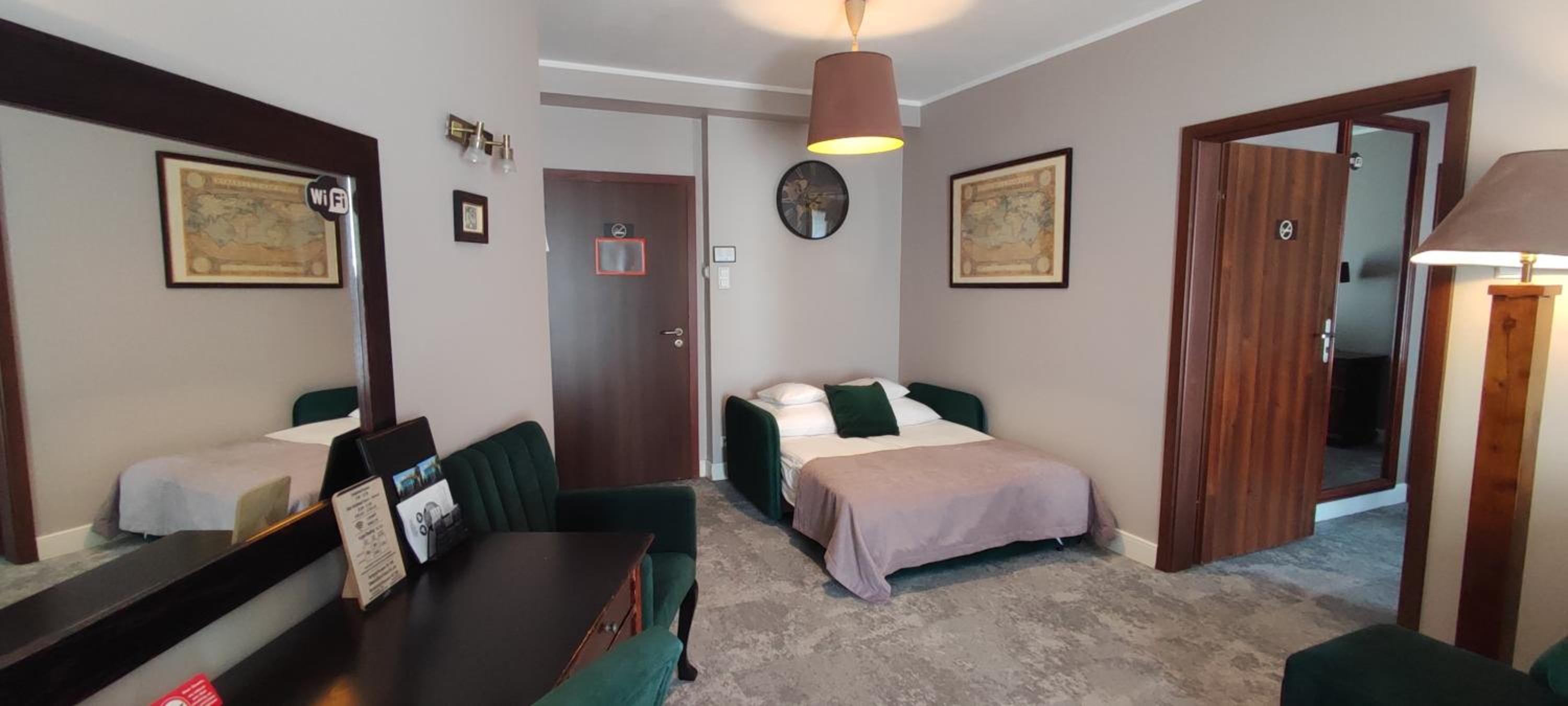 Lokalizacja bardzo dobra, blisko centrum/rynku. Okolica cicha. Czyściutko wszędzie (pokój, korytarze, restauracja). Pokój "family", gustownie urządzony, bardzo wygodny, przestronny, funkcjonalny, spora łazienka z dużą ilością miejsca na kosmetyki i akcesoria. Zadbano o wszelkie szczegóły (podświetlane wnętrza szaf, 3 rodzaje poduszek, żelazko i deska do prasowania, nawet słodkości w pokoju, a w łazience pięknie pachnące, aksamitne mydełko). Śniadania bogate, różnorodne. Obsługa bardzo miła i pomocna. Polecam dania z karty, bo w restauracji serwują przepyszne jedzenie (w dobrych cenach). Sama restauracja jest klimatyczna, z bardzo wygodnymi fotelami.