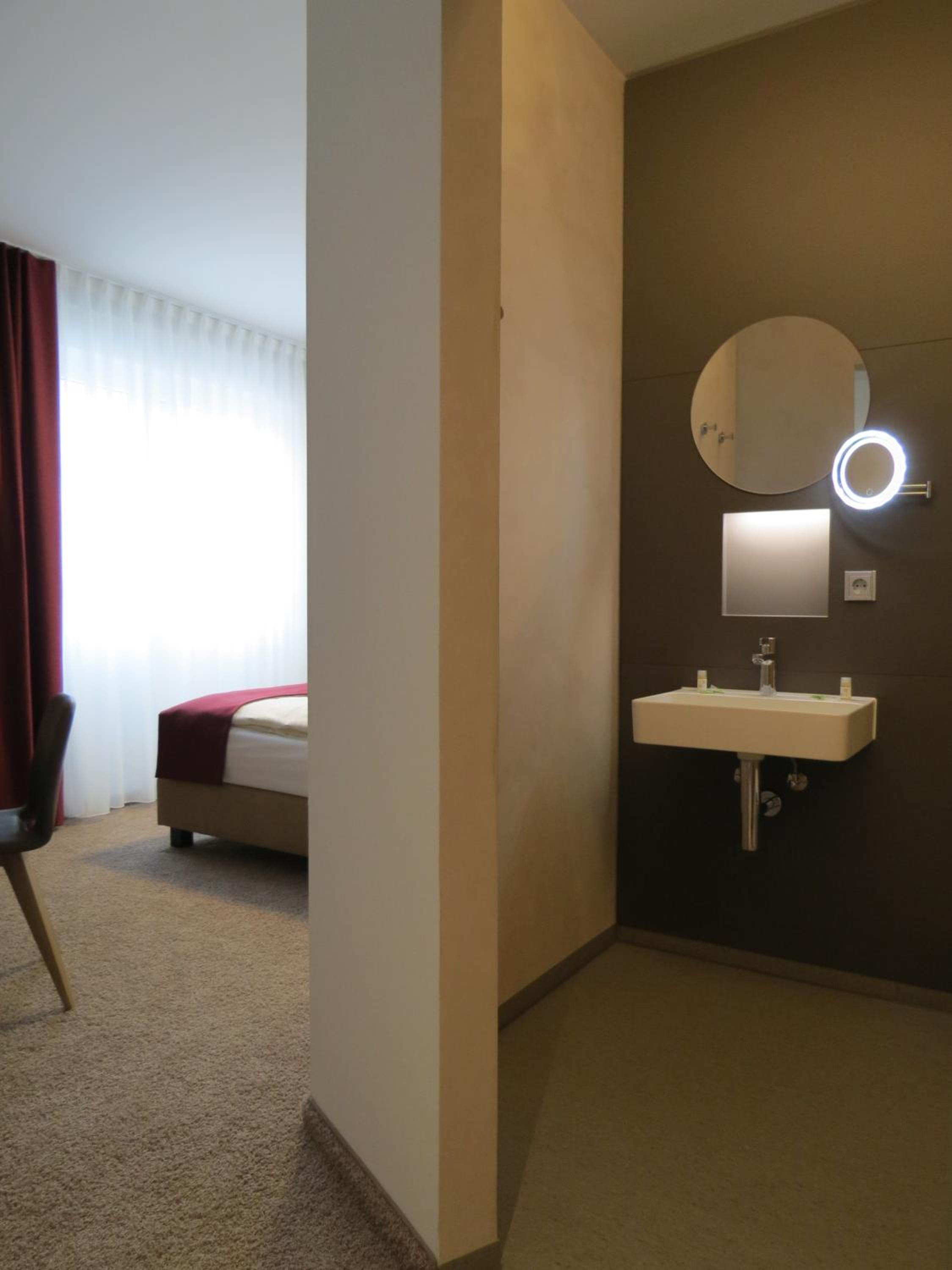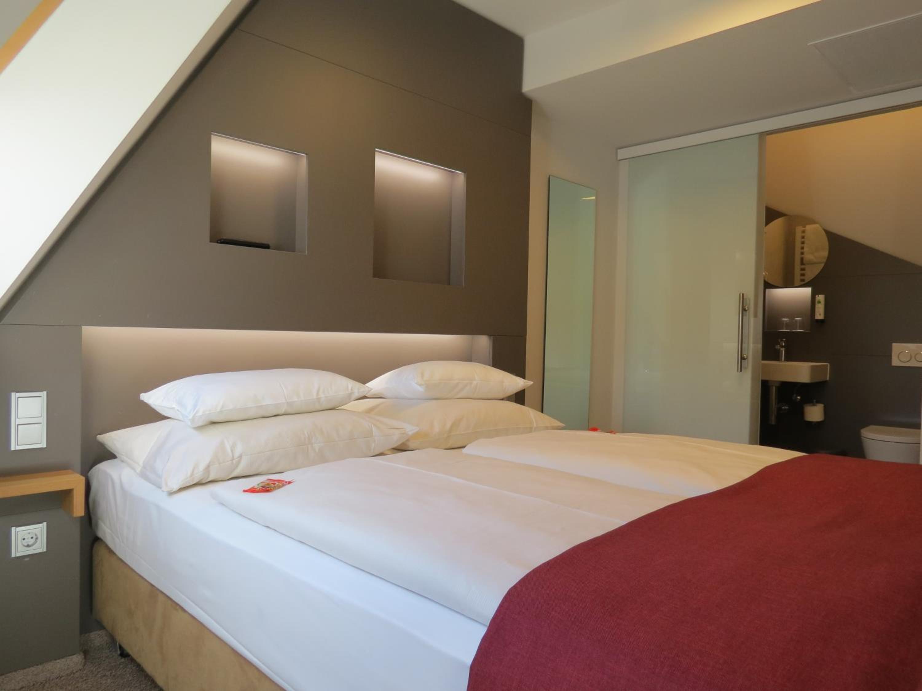 Scenic Views and Modern Comfort: Enjoy soundproofed rooms with a seating area, contemporary decor, and free WiFi. The hotel's prime location offers stunning views of the ancient town wall and is a short walk from Ulm Train Station and Ulm Cathedral.