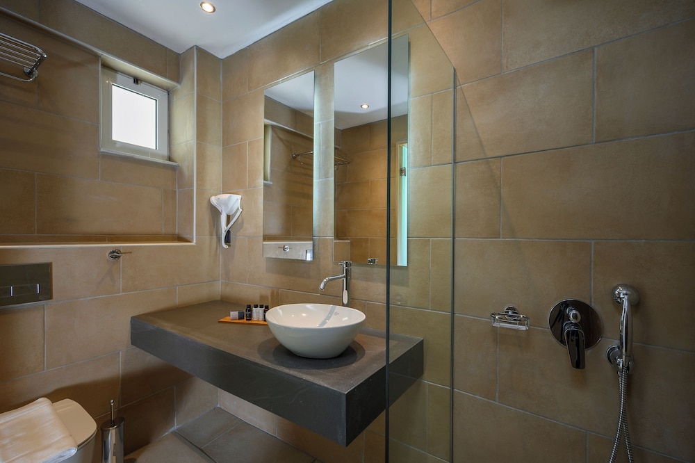 A part la vue, car dans notre malheur nous avons eu la chance d'avoir vu sur mer, le reste est très mauvais. Etablissement sale, pas confortable literie horrible, balcon se touchant avec les autres et séparés uniquement avec une petite balustrade . Les repas le soir vraiment pas bon et toujours pareils avec très peu de choix (pour 15 jours ce n'est pas supportable) et malgré la demi pension nous avons du souvent diner dans les restaurants voisins surtout après que mon épouse ait eu une intoxication alimentaire. D'autre part la description de l'hôtel dans l'offre ne correspond pas du tout. Il n'y a pas de piscine intérieure qui est surement à leur autre hotel le Feneriki. La piscine extérieure est difficilement utilisable car pas de place autour, pas de transat.