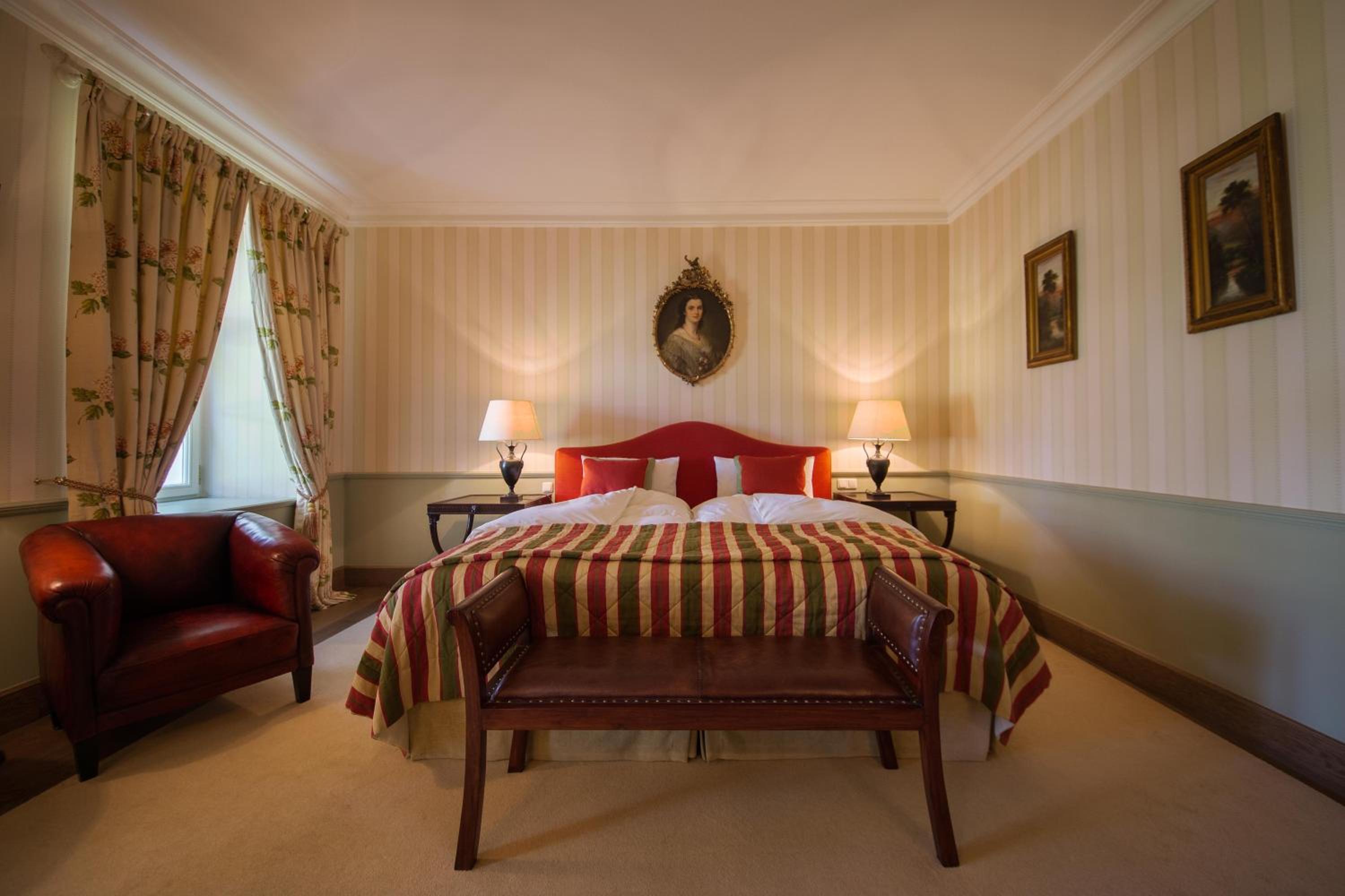 Hotel Château Bela offers a luxurious stay in southern Slovakia at a historic château surrounded by 28 hectares of beautiful land. The rooms feature elegant wooden furniture, modern amenities, and marble bathrooms, ensuring a comfortable and stylish experience.