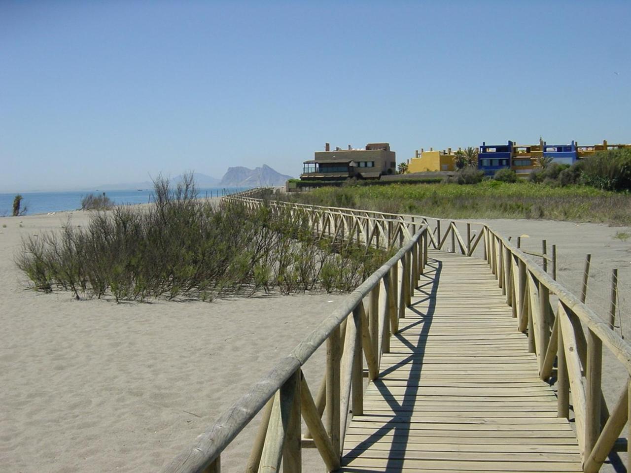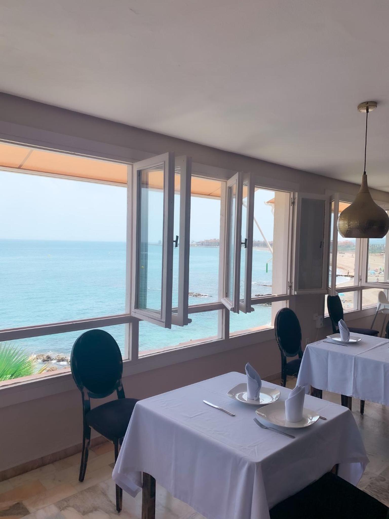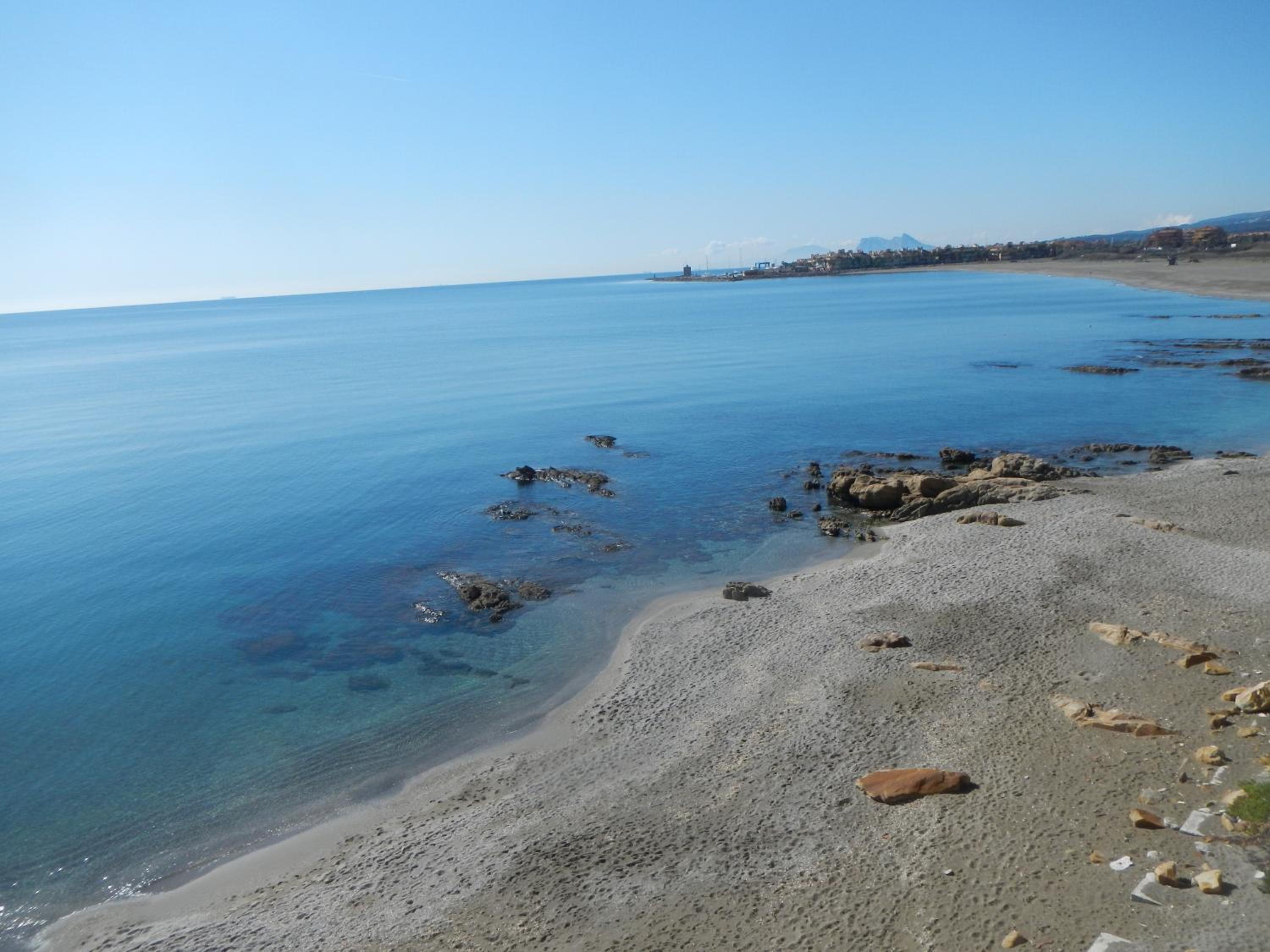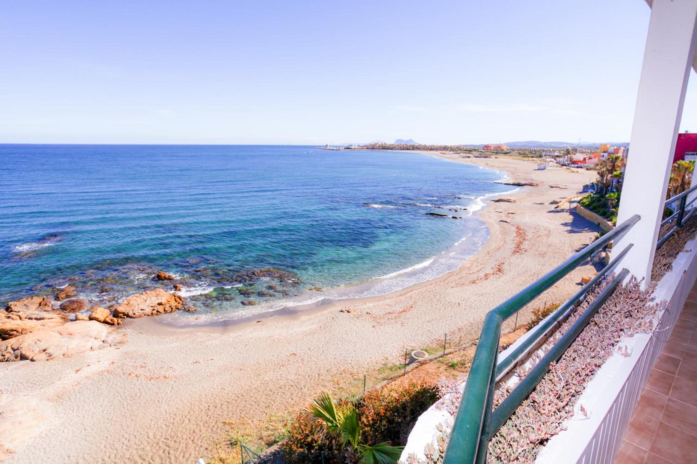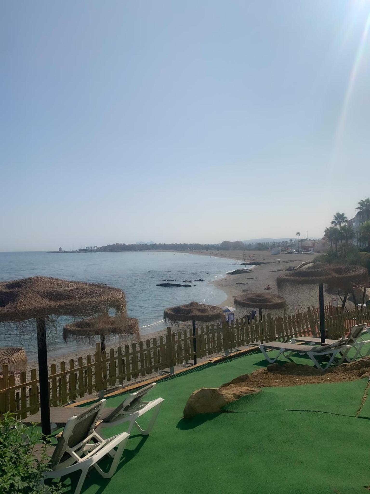 Perfekte Lage direkt am Meer. Zimmer mit überdachter Terrasse mit Tisch, Stühlen und zwei Liegen, Blick auf Gibraltar und Strand. Inverter Klimaanlage die auch sehr gut heizt was bei uns wichtig wegen der Jahreszeit war.