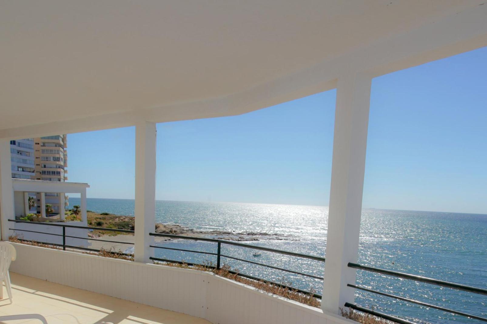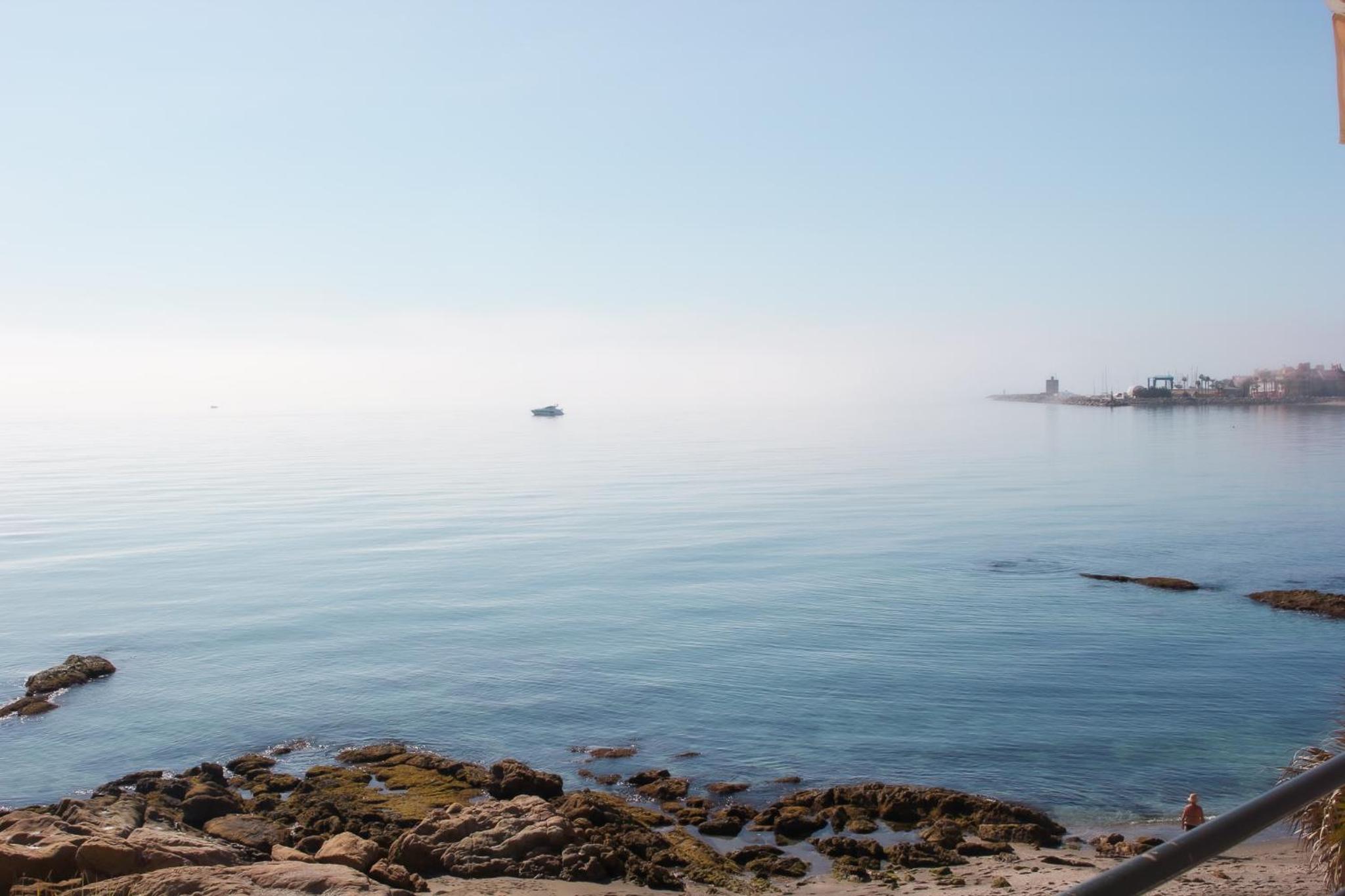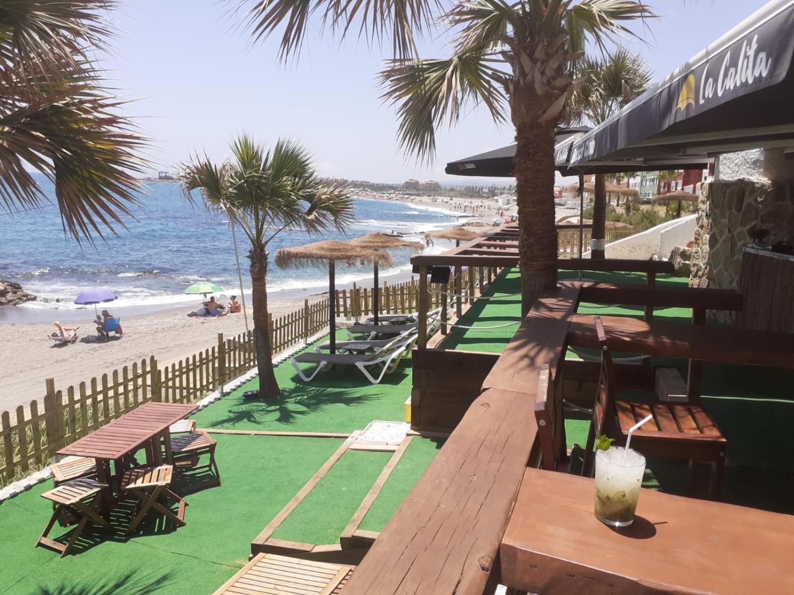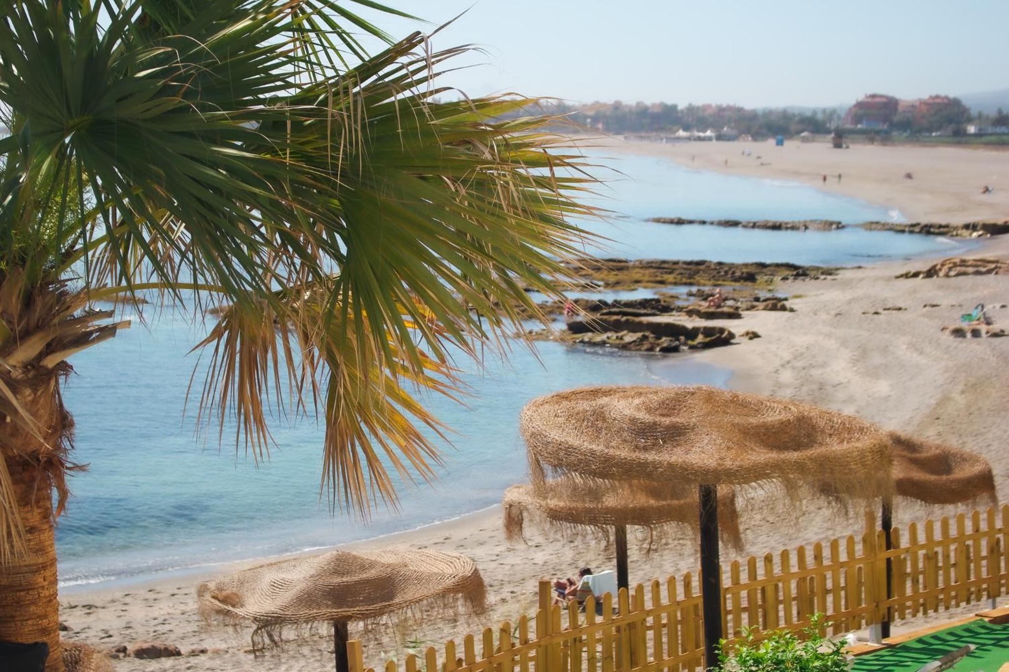Perfekte Lage direkt am Meer. Zimmer mit überdachter Terrasse mit Tisch, Stühlen und zwei Liegen, Blick auf Gibraltar und Strand. Inverter Klimaanlage die auch sehr gut heizt was bei uns wichtig wegen der Jahreszeit war.