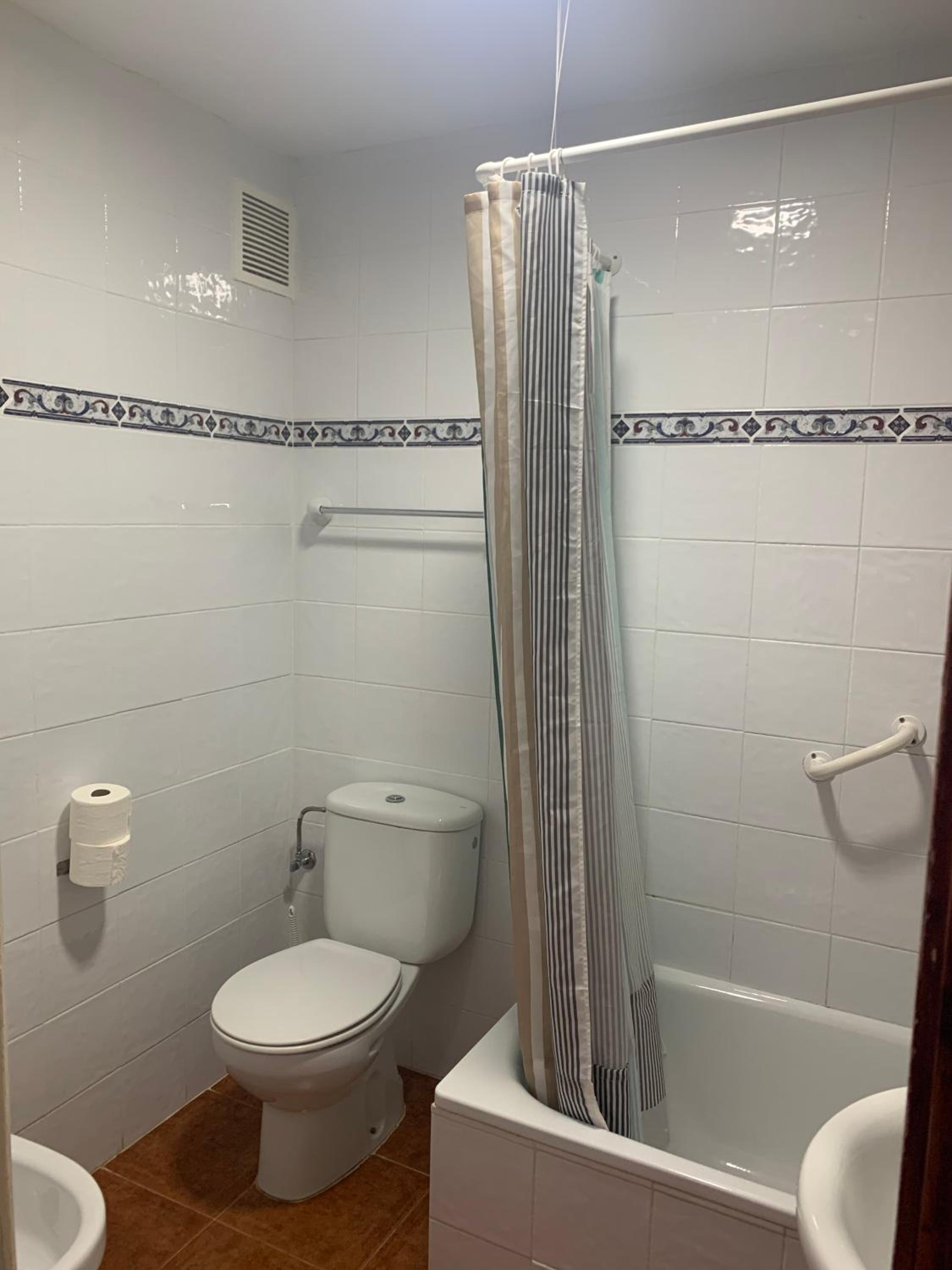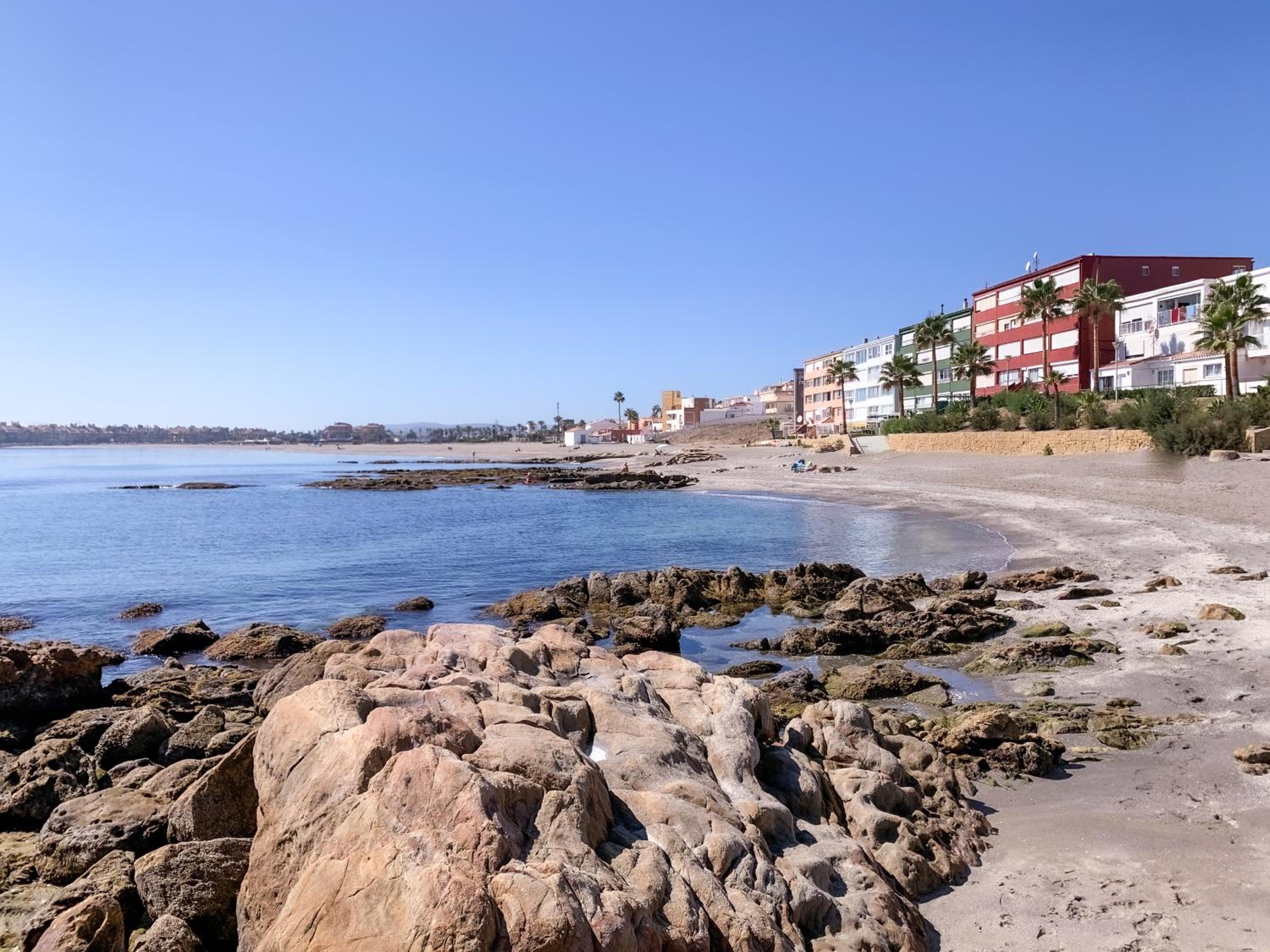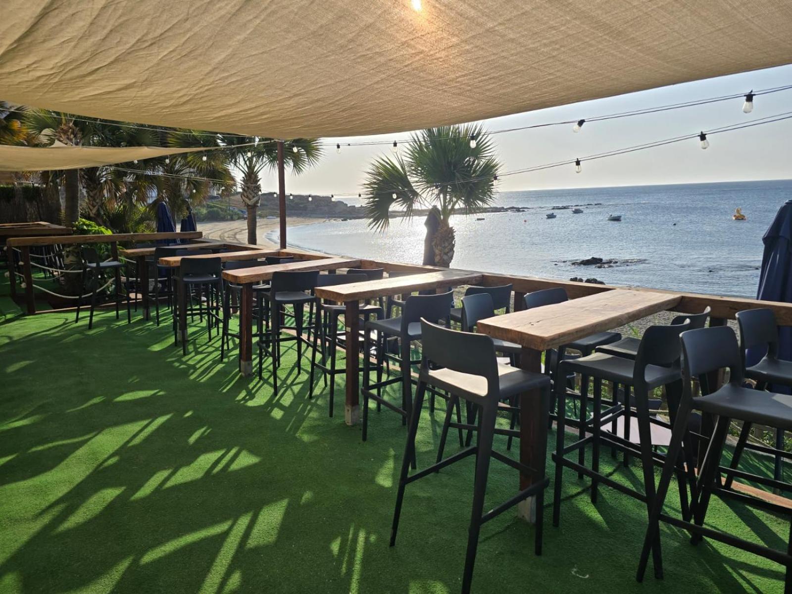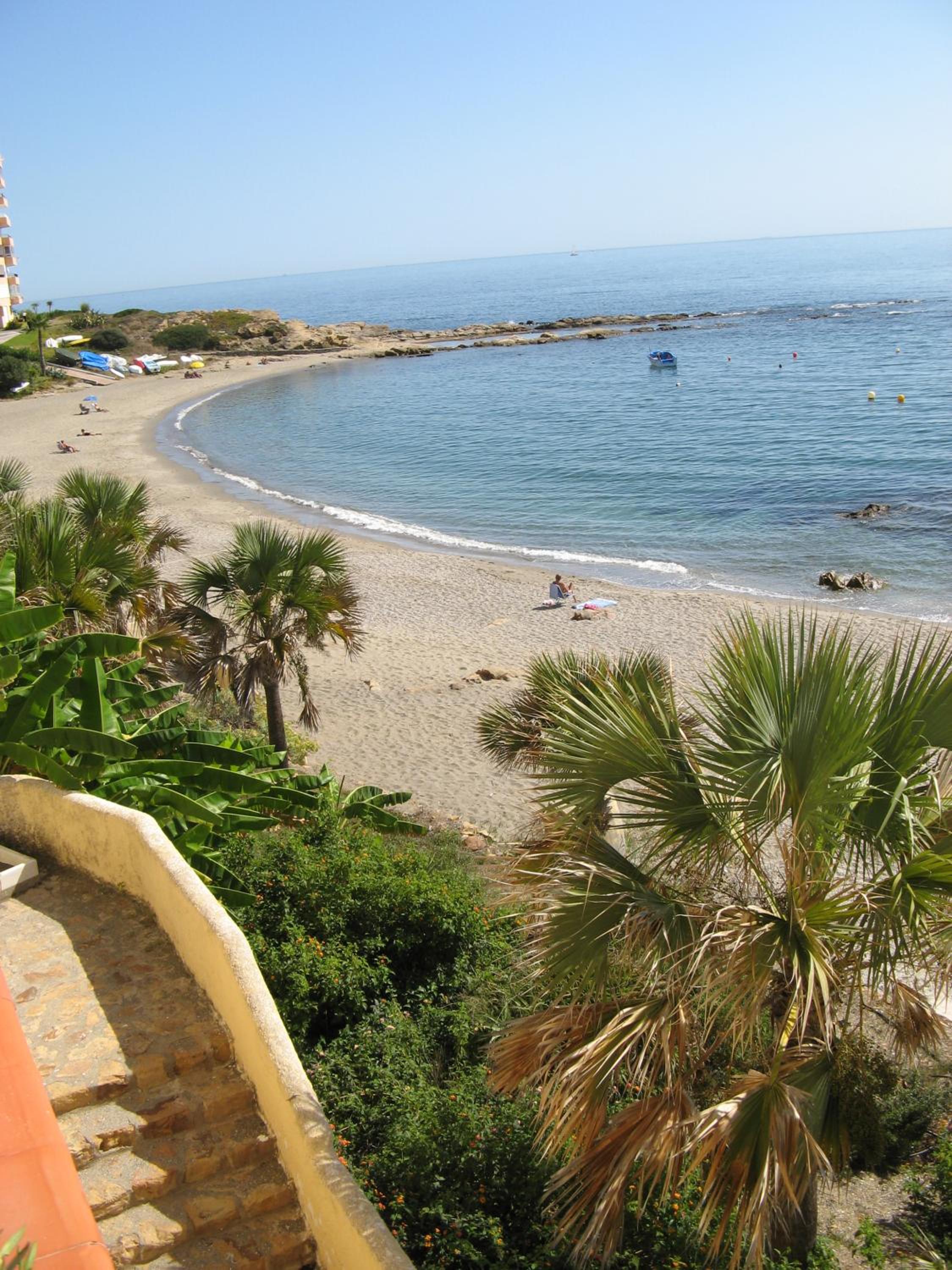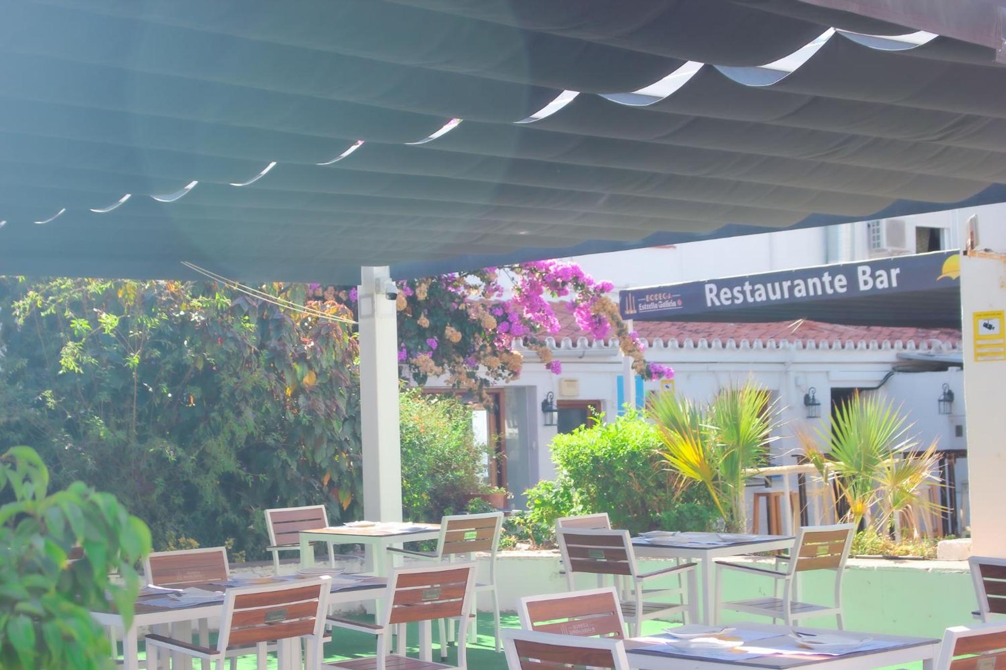 Perfekte Lage direkt am Meer. Zimmer mit überdachter Terrasse mit Tisch, Stühlen und zwei Liegen, Blick auf Gibraltar und Strand. Inverter Klimaanlage die auch sehr gut heizt was bei uns wichtig wegen der Jahreszeit war.