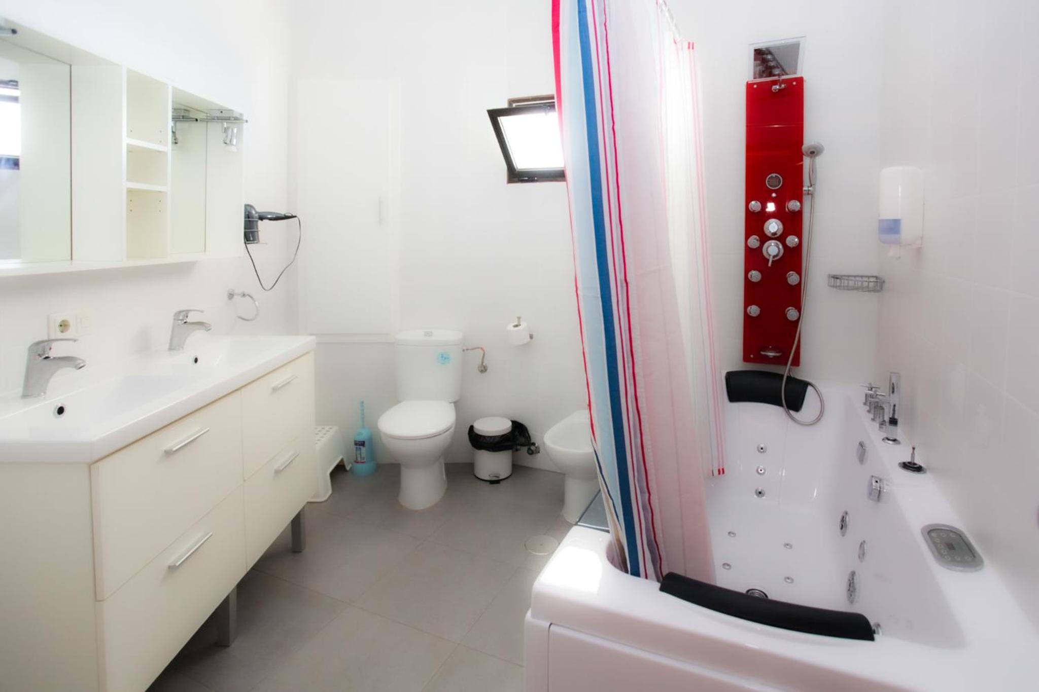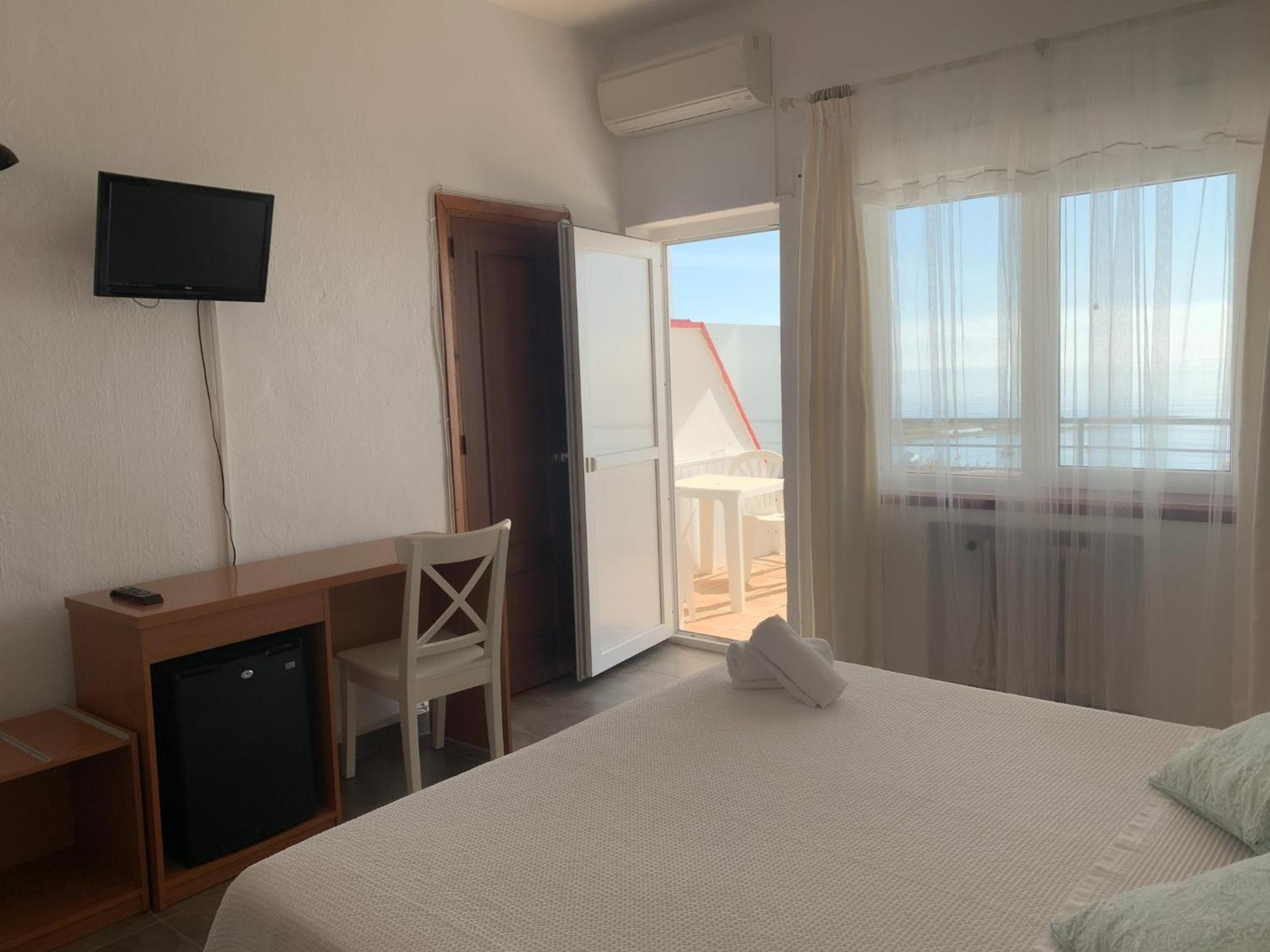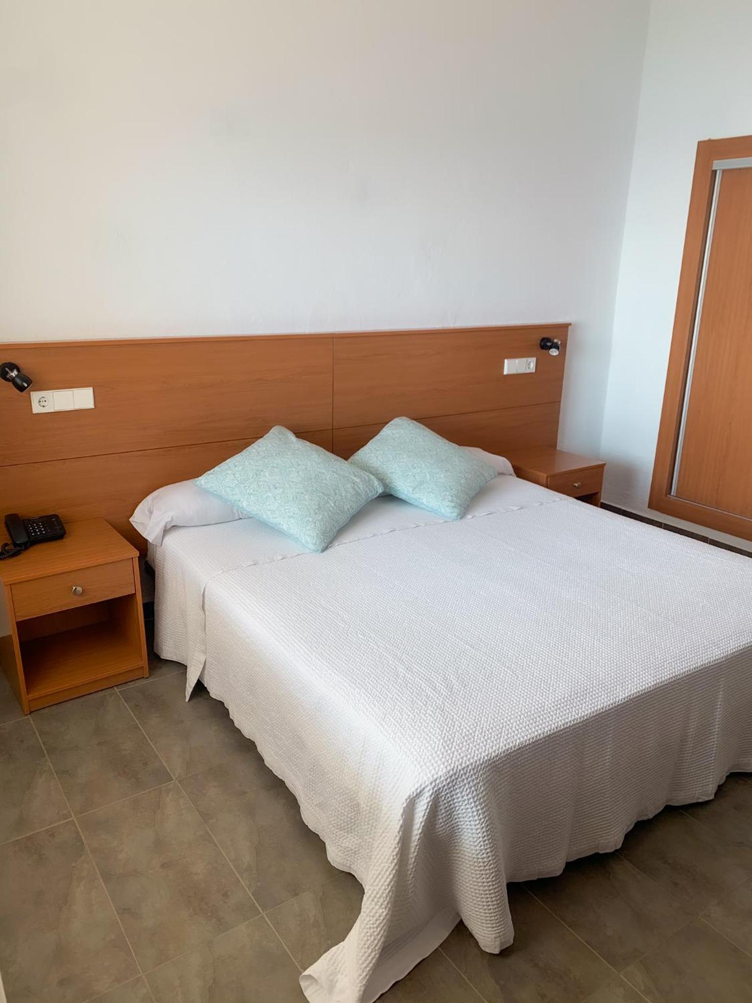 Experience comfort and style in our spacious rooms with white walls and tiled floors, providing a cool retreat after a day in the sun.