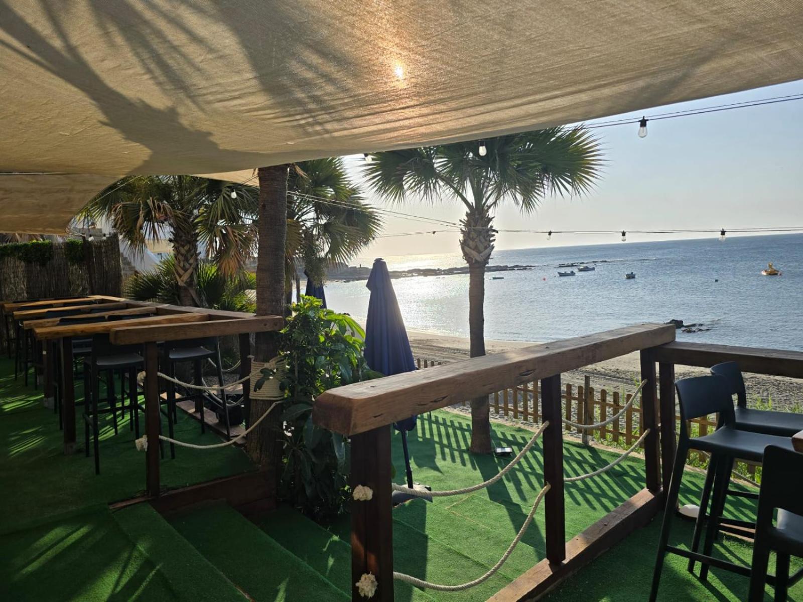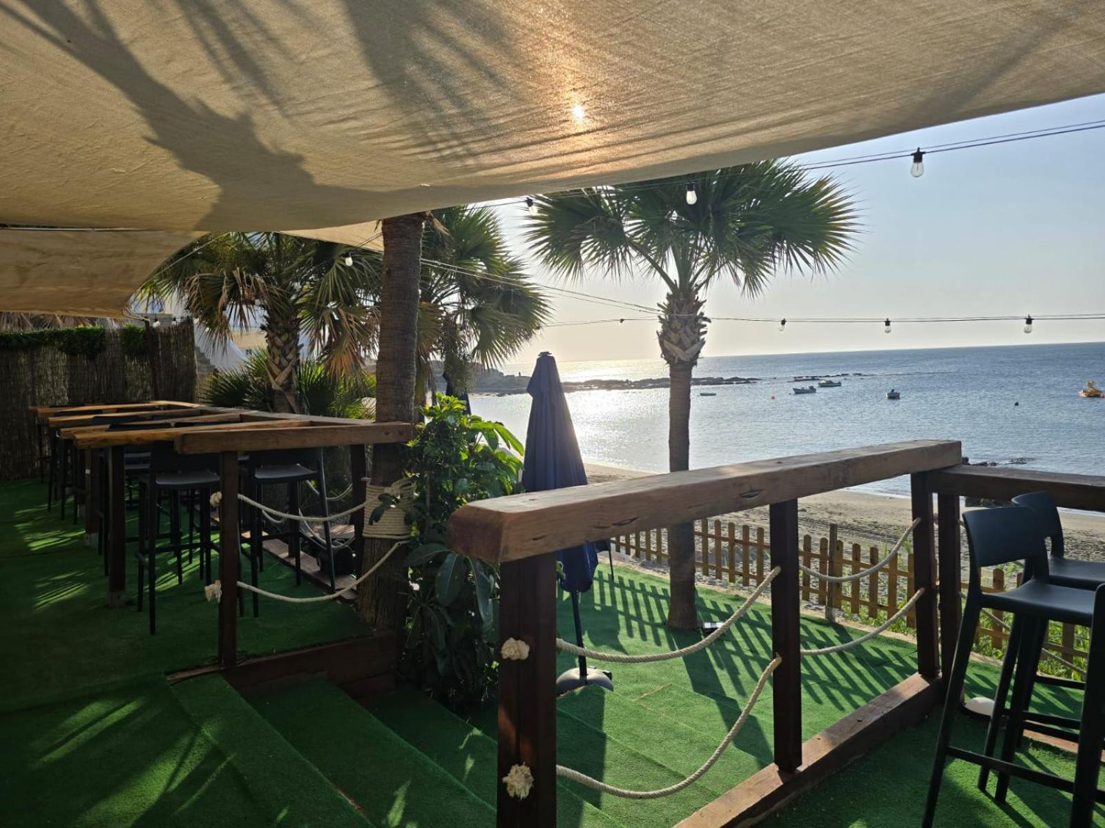 Strand aan de deur, maar wat een herrie. We konden er niet van slapen. Maar als je daar geen last van zou hebben is er geen mooiere locatie. Betere isolatie zou zeer op zijn plek zijn.