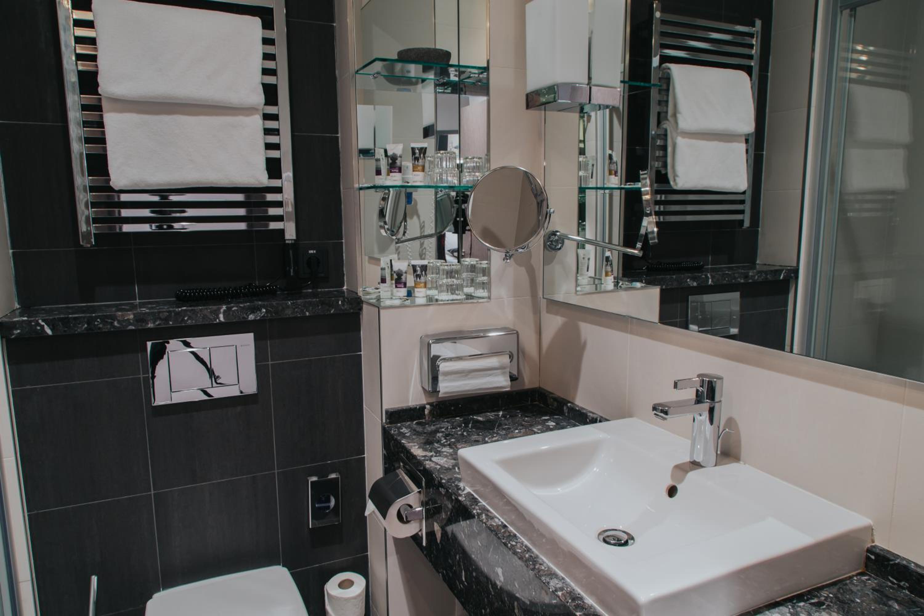 У номері є все необхідне і навіть більше: капці, халати, шампунь, гель для душа, лосьйон для тіла, і навіть бритва для гоління))