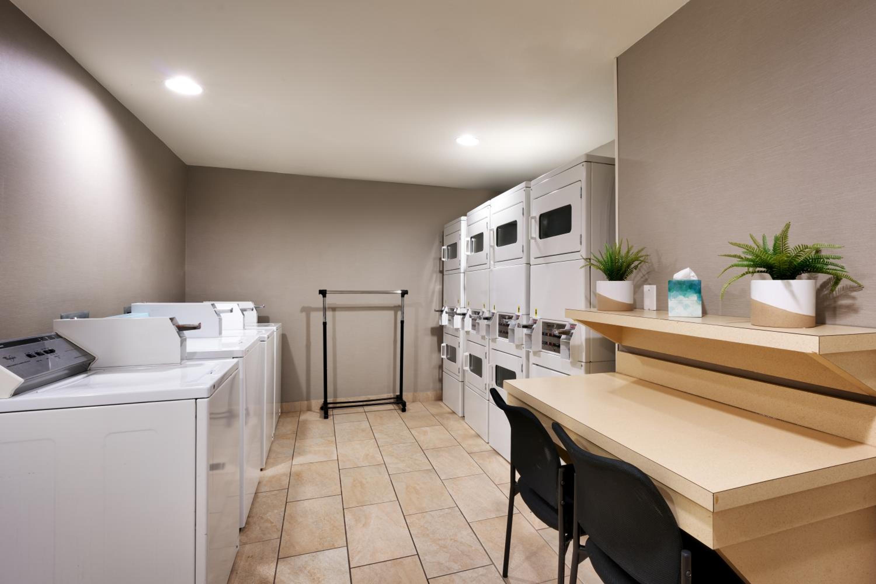 Enjoy complimentary WiFi and cable TV with the HBO movie channel in every suite and studio. Additionally, take advantage of the on-site laundrette, meeting facilities, dry cleaning service, and free grocery delivery. These services enhance your overall comfort and convenience during your visit.