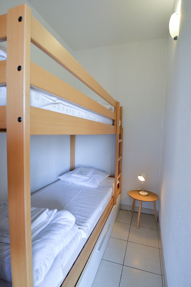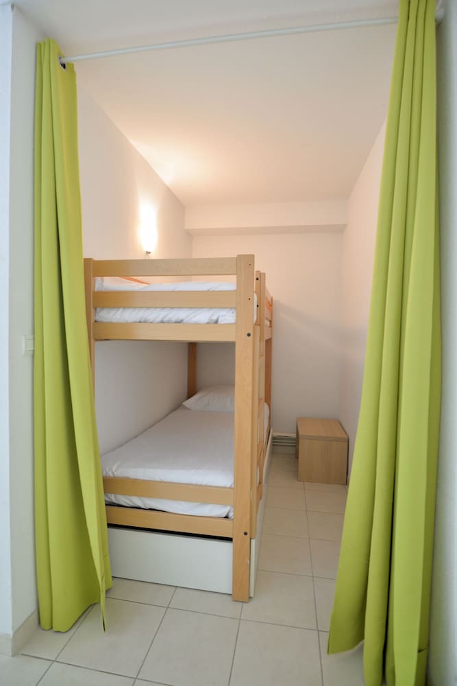 Séjour de 4 jours à 8 personnes dans un appartement, alors pour 8 adultes (4 couples : les 2 parents avec 3 enfants et leur compagnes)il n'y a qu'un seul défaut la chambre avec les lits superposés, n'est pas une chambre juste un espace avec un rideau, nous pensions pouvoir poser les matelas auvsol pour faire un lit double mais impossible par contre le canapé était convertible donc c'était beaucoup mieux, oui sur certains commentaires il y a quelques problèmes de propreté mais il ne faut pas exagérer, quelques toiles de poussière au plafond mais il est tellement haut qu'il est vraiment difficile d'accès, après le reste même si ce n'est pas moderne, c'est bien entretenu, il ne manque rien et assez d'espace pour circuler dans l'appartement et 2 toilettes et une salle de douche et une salle de bain, pour l'accueil c'était parfait, sourire,gentillesse et politesse font toujours plaisir . Le bar restaurant à première allure on se dit que c'est un peu particulier, il manque certaines choses de la carte mais ils sont super gentil, très serviable, et surtout c'est très bien rapport qualité prix , c'est les vacances on est pas là pour ce prendre la tête, la piscine convient très bien, on ne se marche pas les uns sur les autres, oui il manque un peu de transat par forte chaleur car plus de monde et le camion de pizza du samedi soir est très bien aussi, par contre victime de son succès réserver bien à l'avance vos pizzas pour ne pas les avoir trop tard, il est tout seul