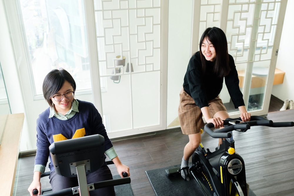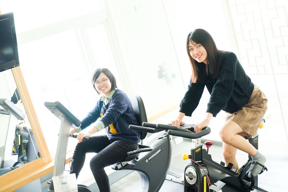 公共區域有免費咖啡跟飲水機、餐具可用,樓上還有洗衣設備跟飛輪室