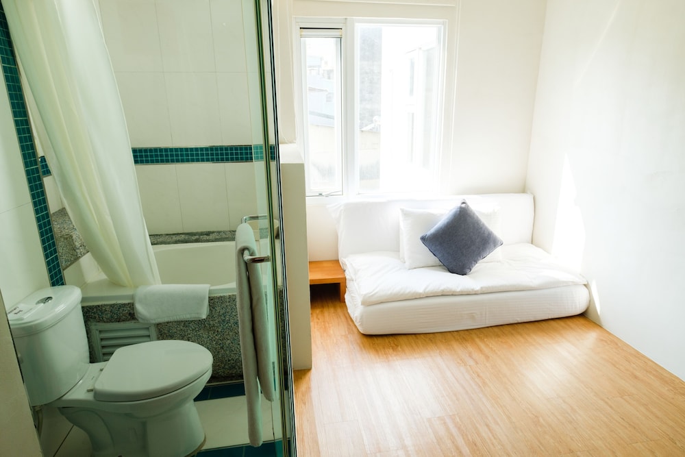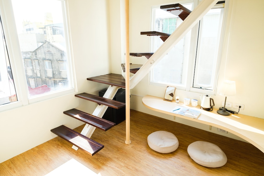 地理位置與生活機能極佳,離火車站及博物館、廟宇都很近,外面有手搖飲,隔壁有百貨公司,外面也有公車站牌。沙發床讓空間變大,沒有壓迫感。洗沐用品好用。入住前可寄放行李,還直接幫忙拿到房間,很貼心,退房後還可寄放行李,很方便。