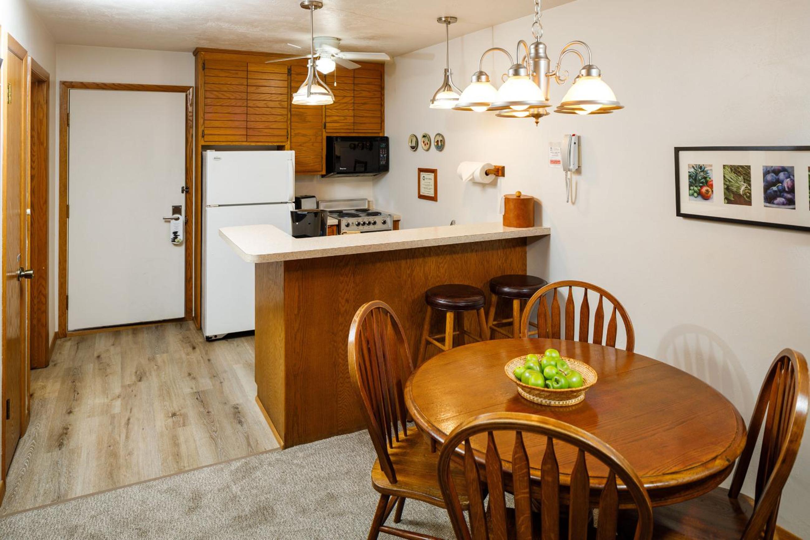 Staff is wonderful and honored our request for a quiet room. Accommodations were comfortable and clean. Location is fabulous, a tiny bit off the busy HWY 42 making it a more tranquil setting, and just a mile south of Sister Bay and all its amenities including a Piggly Wiggly for in-condo meals.