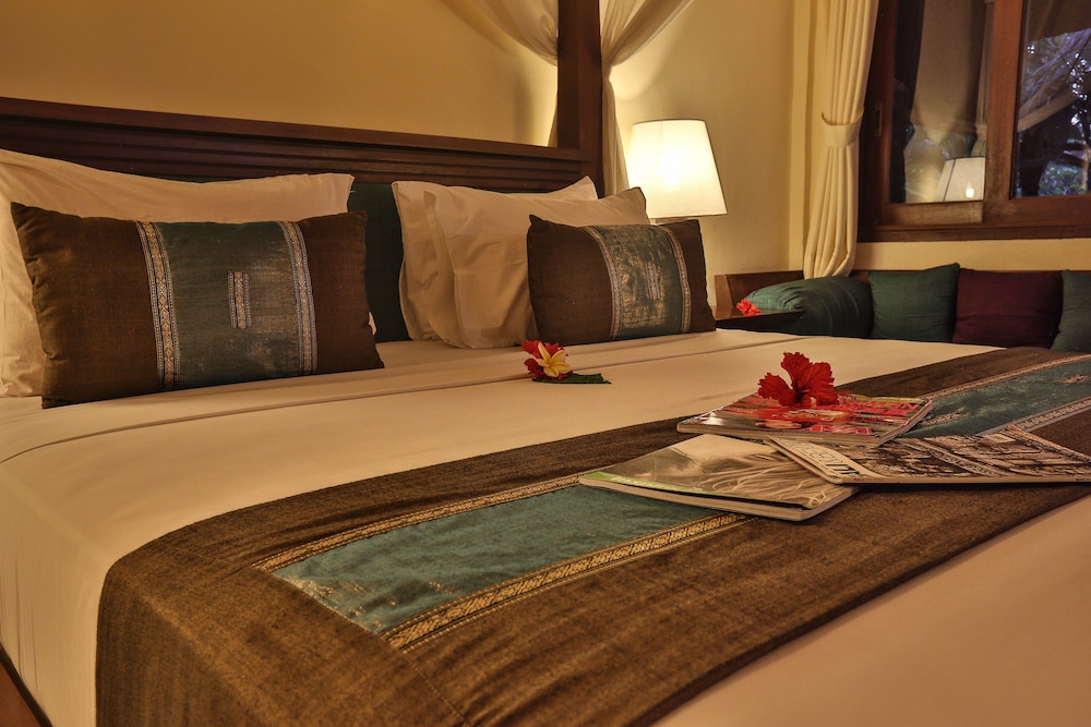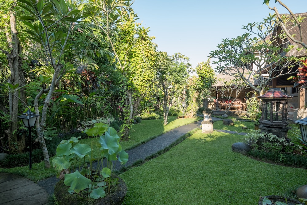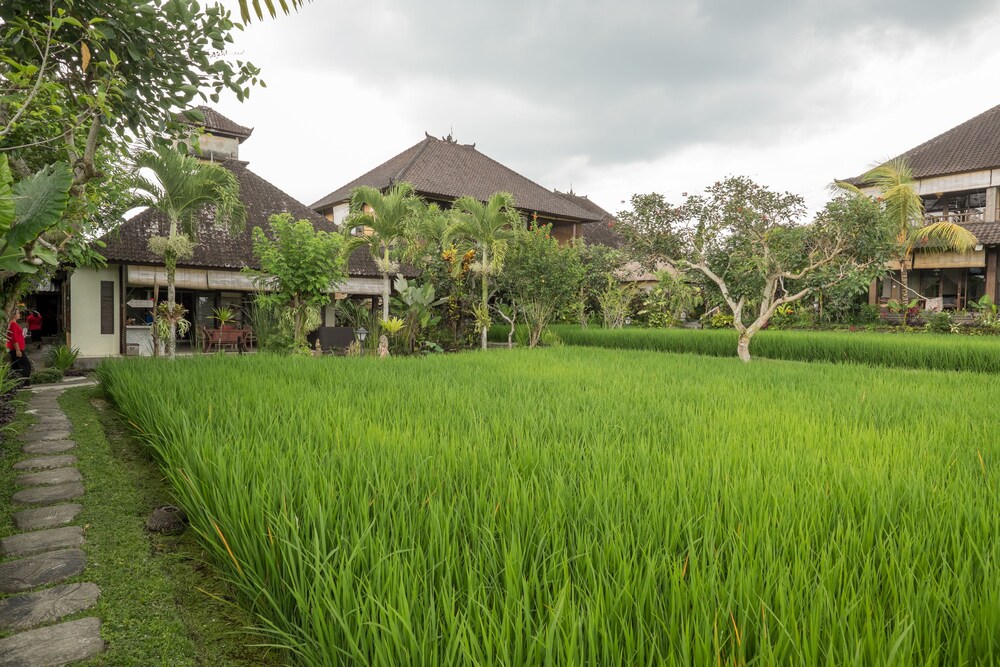 Immerso nel silenzio delle risaie in un labirinto di piante e fiori...I bungalow sono molto belli e ben attrezzati. Sempre molto puliti da un personale molto cortese e sempre sorridente. Possibile fare la colazione nel terrazzo del proprio bungalow ammirando le risaie di fronte. Si trova a 7 min in macchina dal centro di Ubud facilmente raggiungibile anche a piedi facendo una passeggiata. L'hotel inoltre mette a disposizione uno shuttle tre volte al giorno per il trasporto gratuito al centro di Ubud.