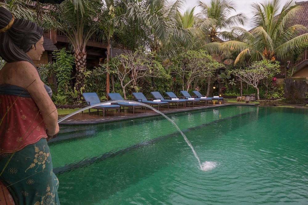 Ideal location for Ubud writers and readers festival. Ten minutes walk to event , or two minutes by motor bike or car. Add another ten minutes if you want to go to the heart of Ubud shopping. But if you want to swim in a beautiful pool and do laps at eye height to the paddy fields, this ticks all the boxes. It's a very peaceful environment. Staff are very obliging. Rooms are spacious and clean.