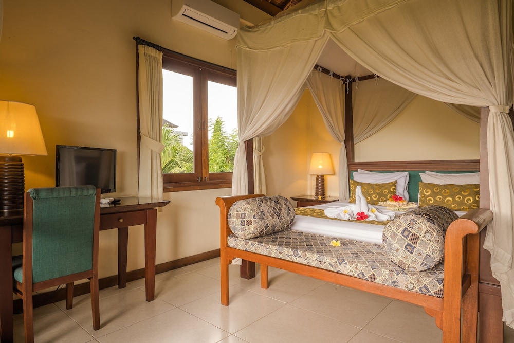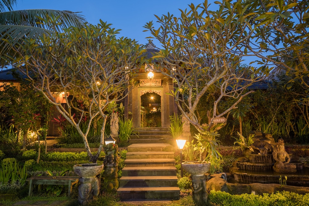 + The buildings are in wonderful garden with little streams, ponds and fountains. The views to the ricefields and palms are stunning. The rooms are spacious with a large balcony. The staff is very friendly and really helpful are in all matters.