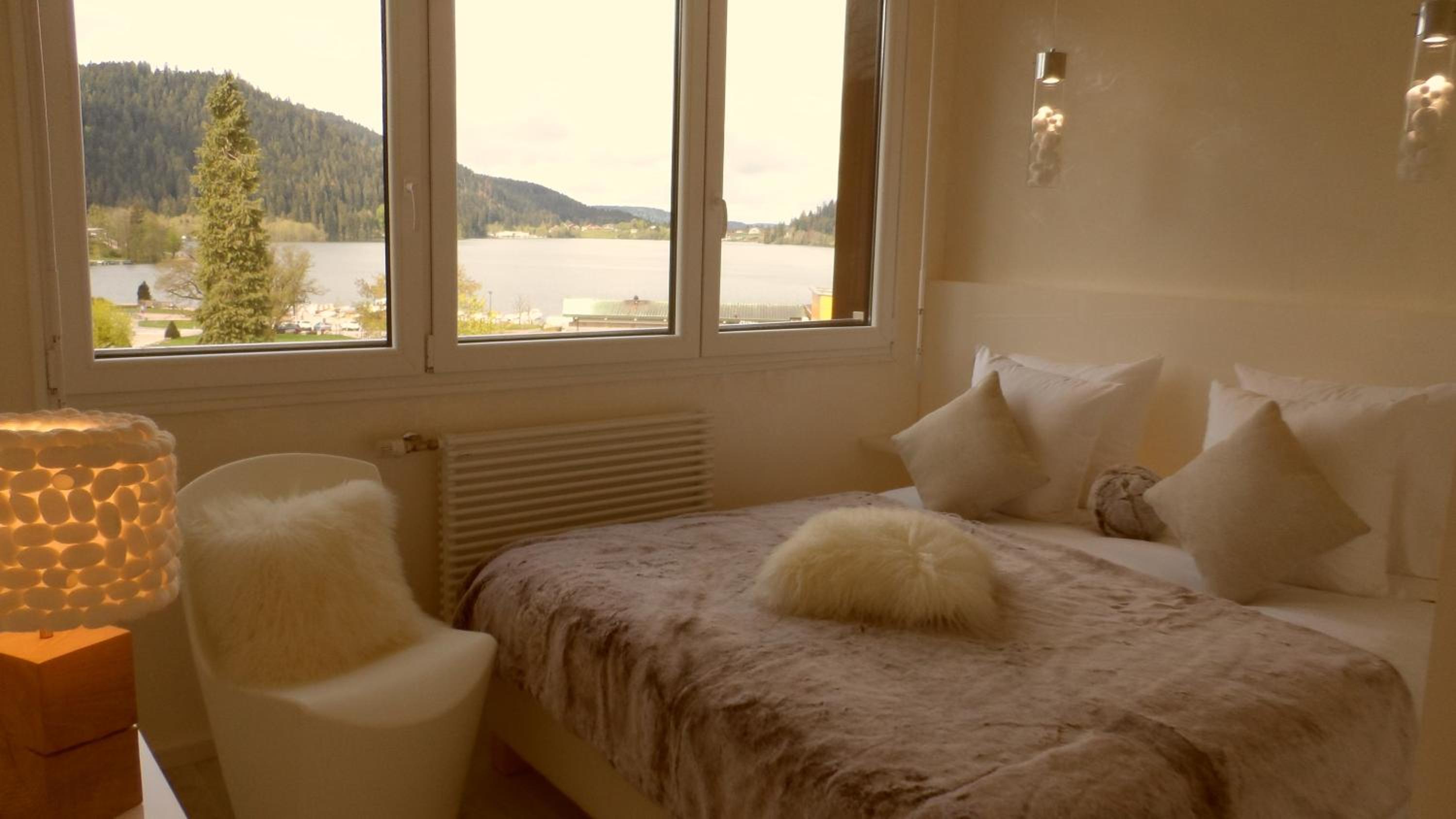 L'accueil était très agréable, la chambre petite et jolie. La situation est parfaite en face du lac et le parking est gratuit.