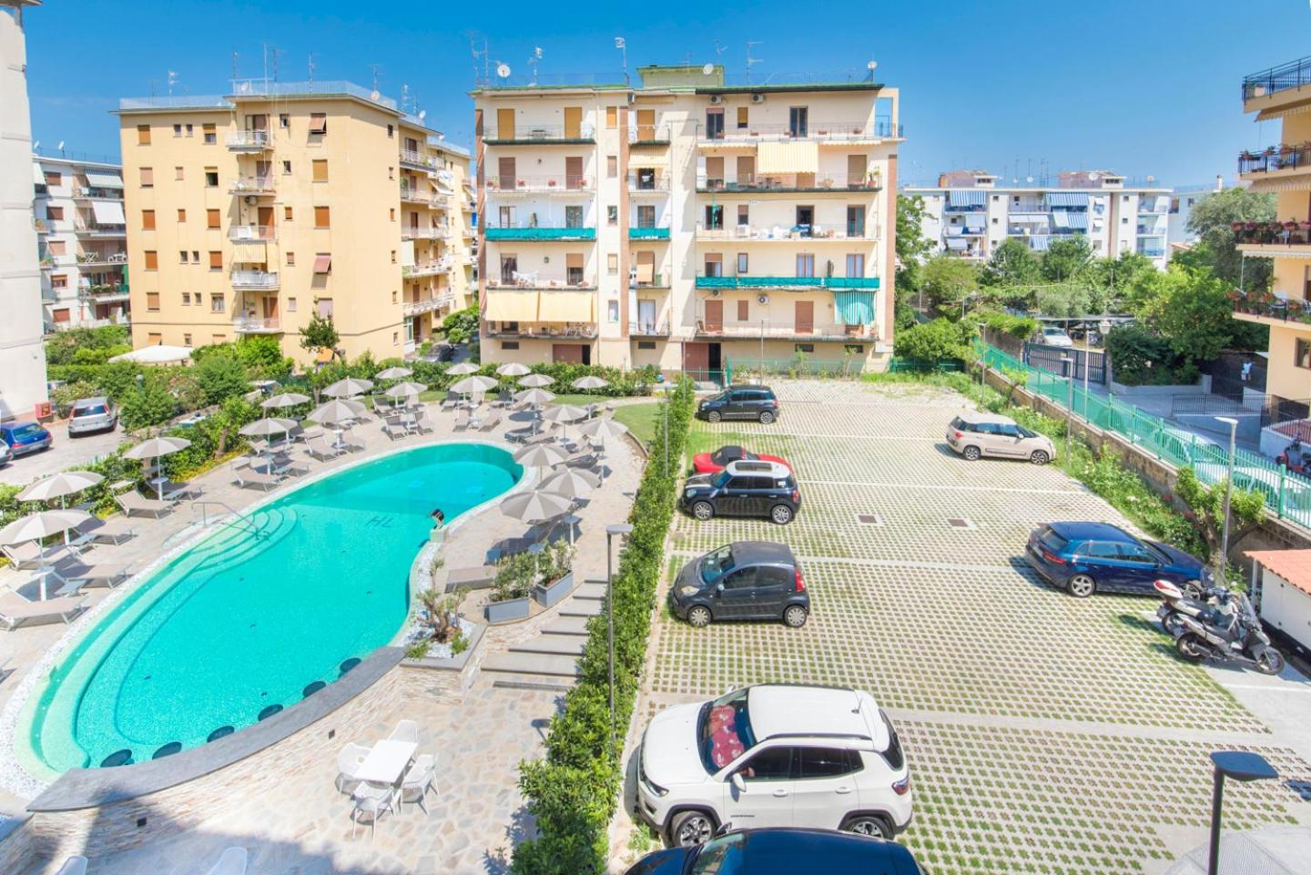 La piscina e la posizione dell’albergo rispetto al centro.