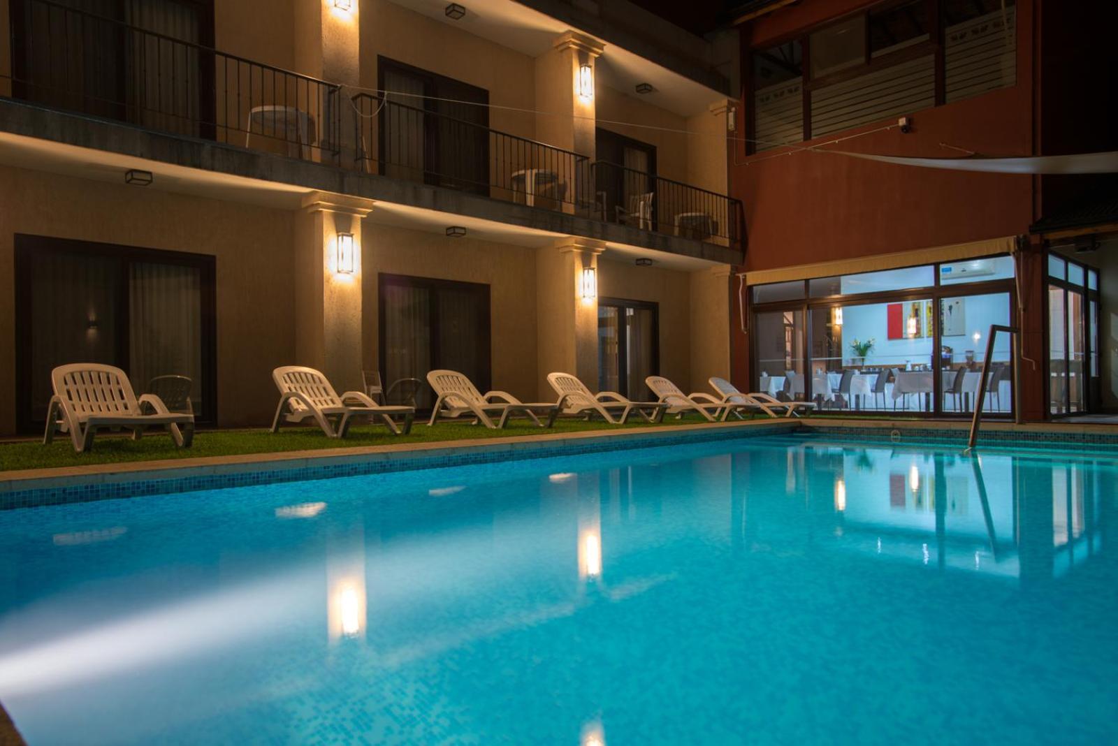 Guests can start their day with a delicious buffet breakfast and unwind by the outdoor pool. The serene garden and patio are perfect spots to enjoy snacks from the bar or delve into a book from the library.