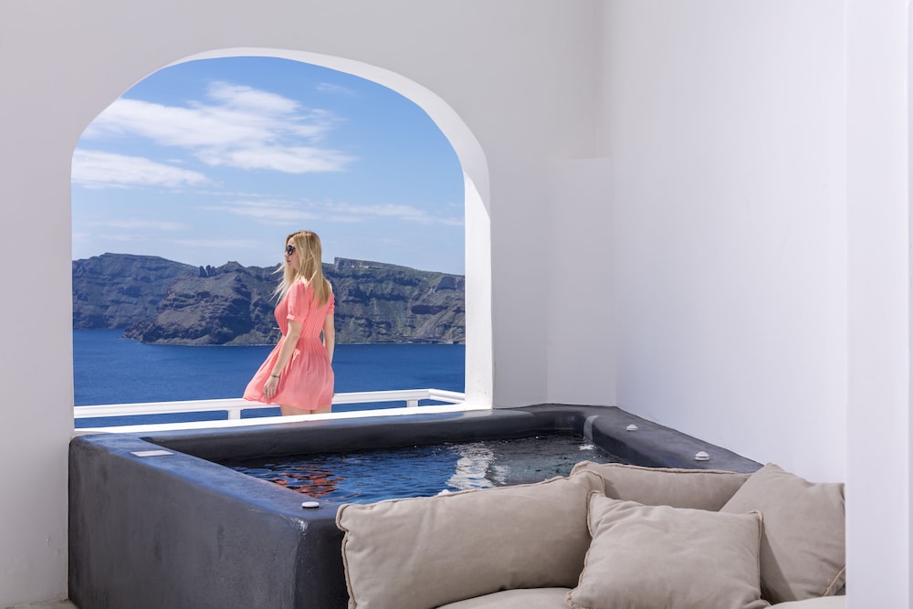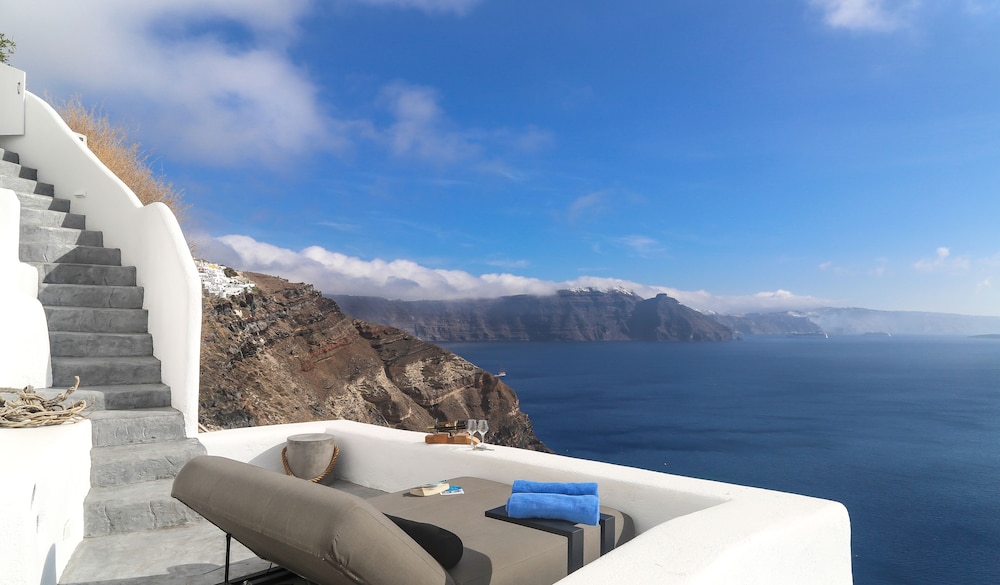 The property has a great view of Santorini waters. I booked the 2 floor suite with private pool for just the wife and me—it was amazing. The only issue, which is fixable is changing the beds because they are hard and changing the toilet lid which was not aligned with seat bowl. Also, it would be best to give customer some snacks and drinks for each day they stay. Overall, great place to vacation.
