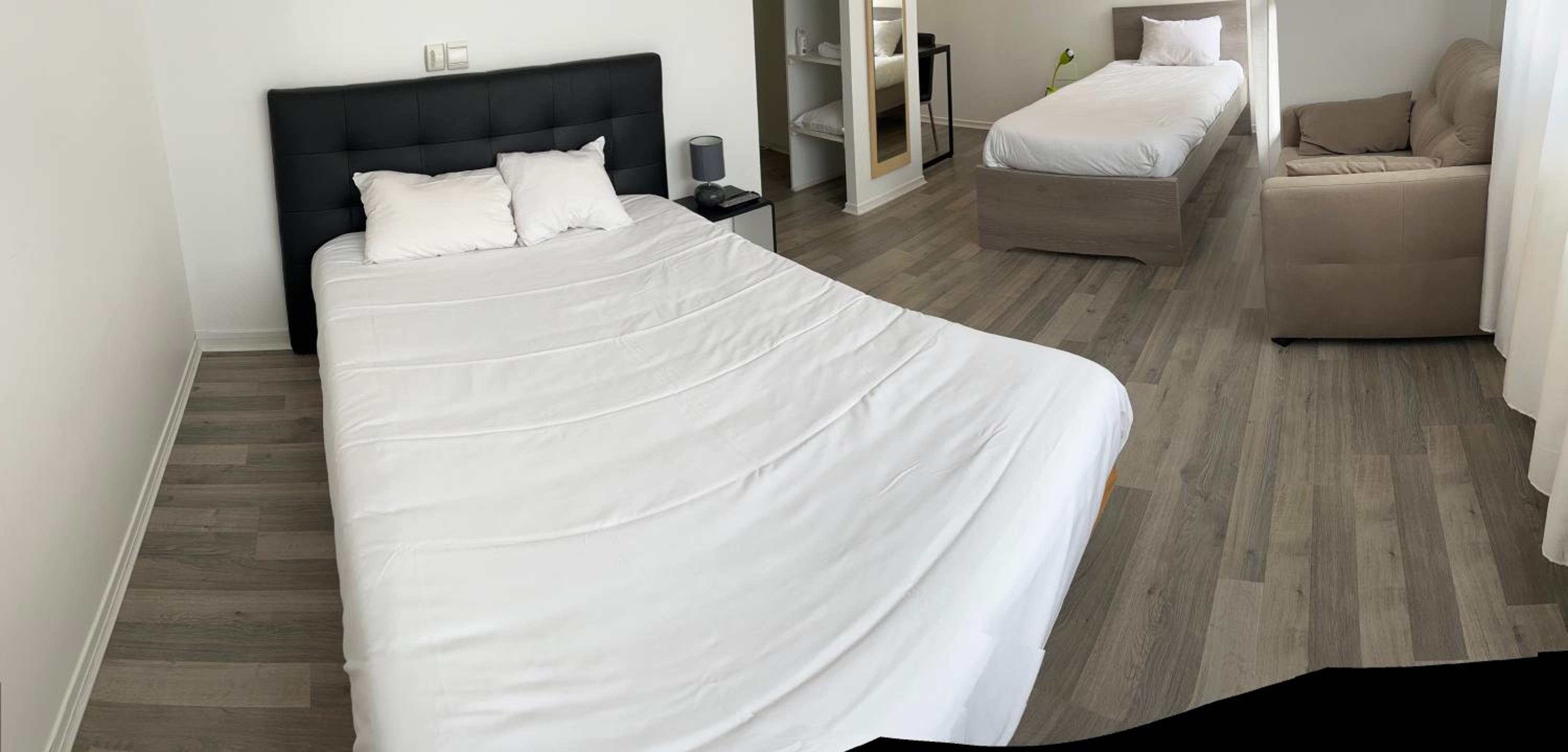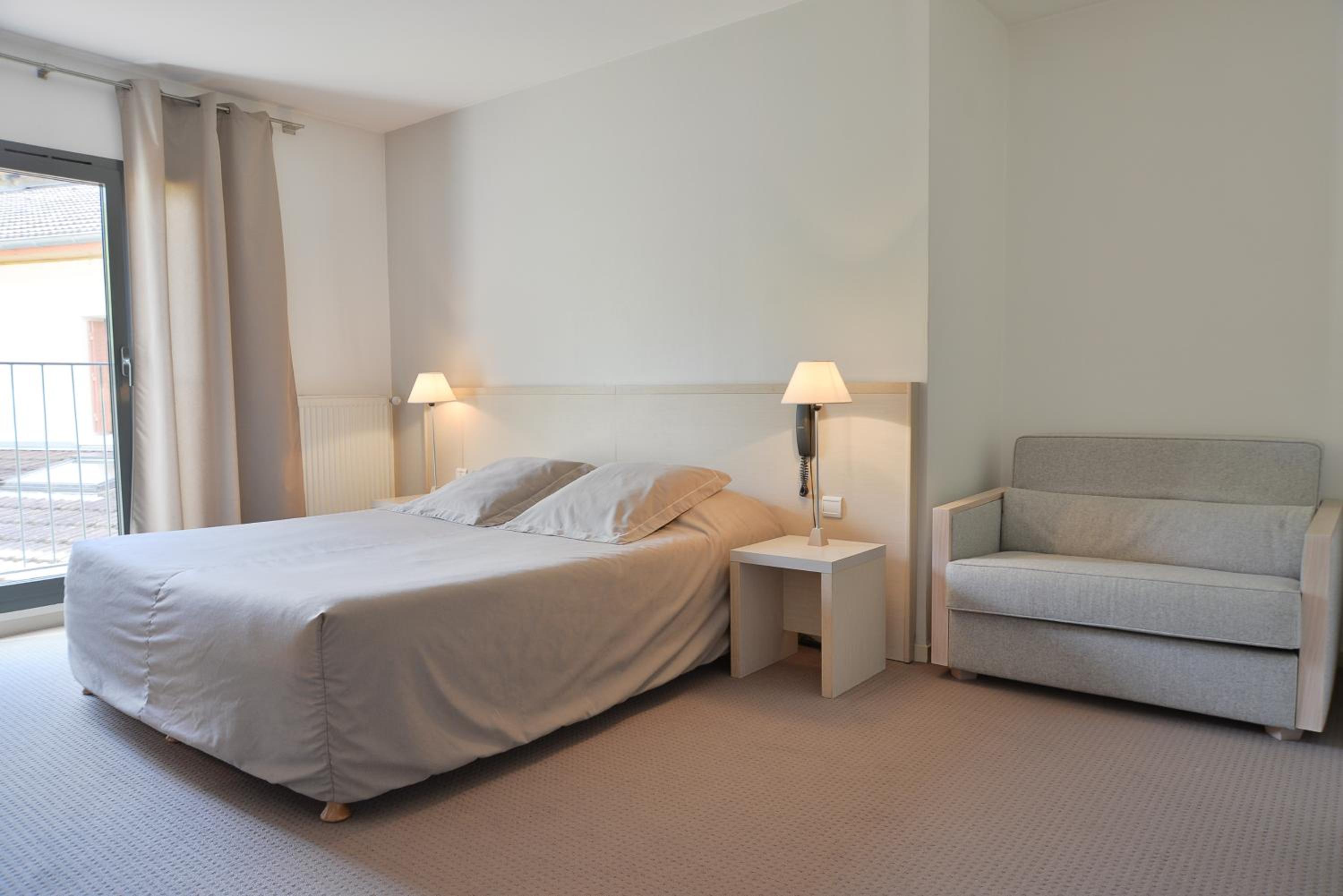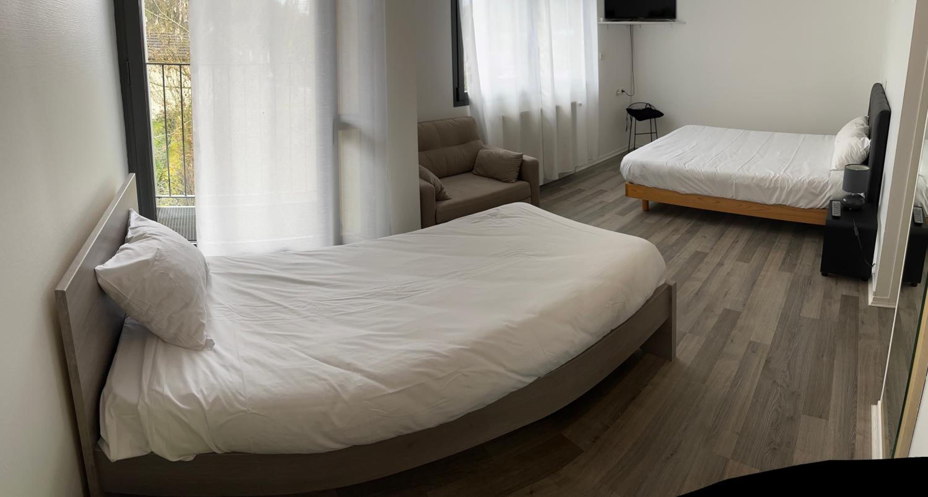 Une nuit passée dans cet hôtel, très bon accueil, pas de chambre familiale à notre arrivée, la réservation avait été faite le matin même avec la centrale, pas de souci car, de suite un compromis de trouvé. 2 chambres double cote à cote isolées et un geste commercial, merci nous sommes ravis d'avoir mangé aussi dans le restaurant très bon repas de qualité le soir. Petit bémol sur le petit déjeuner pas très varié, peut être des céréales ou pains au chocolat en plus ? Chambres propres, style moderne, tout parait neuf, impeccable, lits confortables, tv ok.