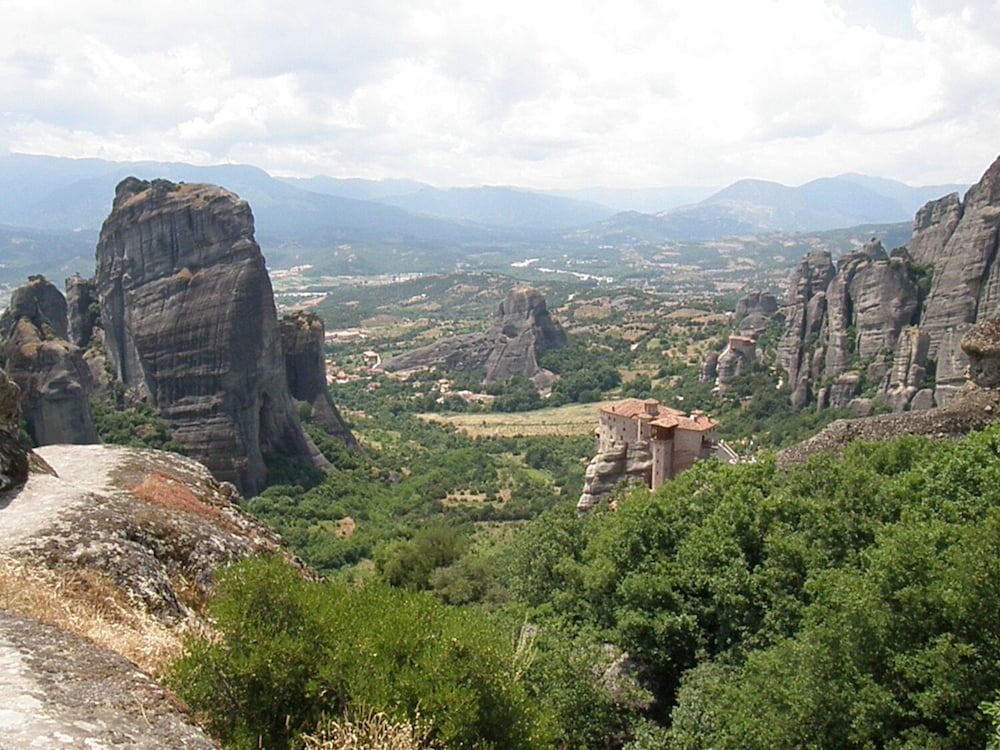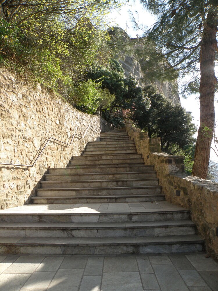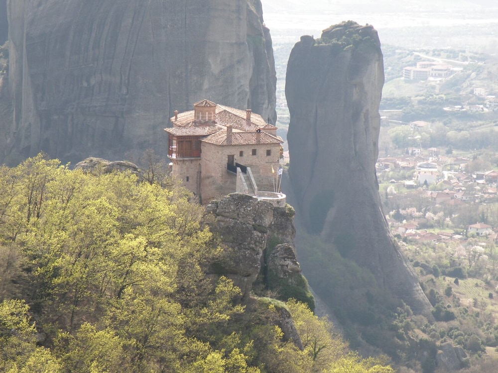 It rained during our stay else it is a 20 min walk to downtown Kalabaka. The room has beautiful woodwork, tiles in the bathroom, and a nice balcony. The bed was very comfortable and breakfast was delicious. If it was so foggy, we would have seen the rocks from our room. Front desk was very friendly and quick checkin. If you don’t have a car or don’t want to walk, you will need a taxi to/from here.