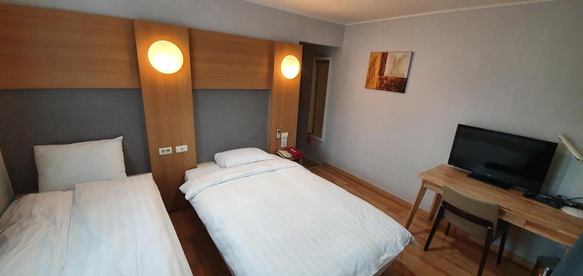 Todo muy limpio y ordenado, buena comunicación con el hotel, habitaciones fantásticas con kit de aseo, nevera con aguas, set de café y té. Zonas comunes limpias y equipada con cocina y el sillón de masaje en la entrada que por un módico precio de 1000 won te da un masaje de 10 min. Y la cercanía andando a la Estación de Autobuses y otros lugares de interés
