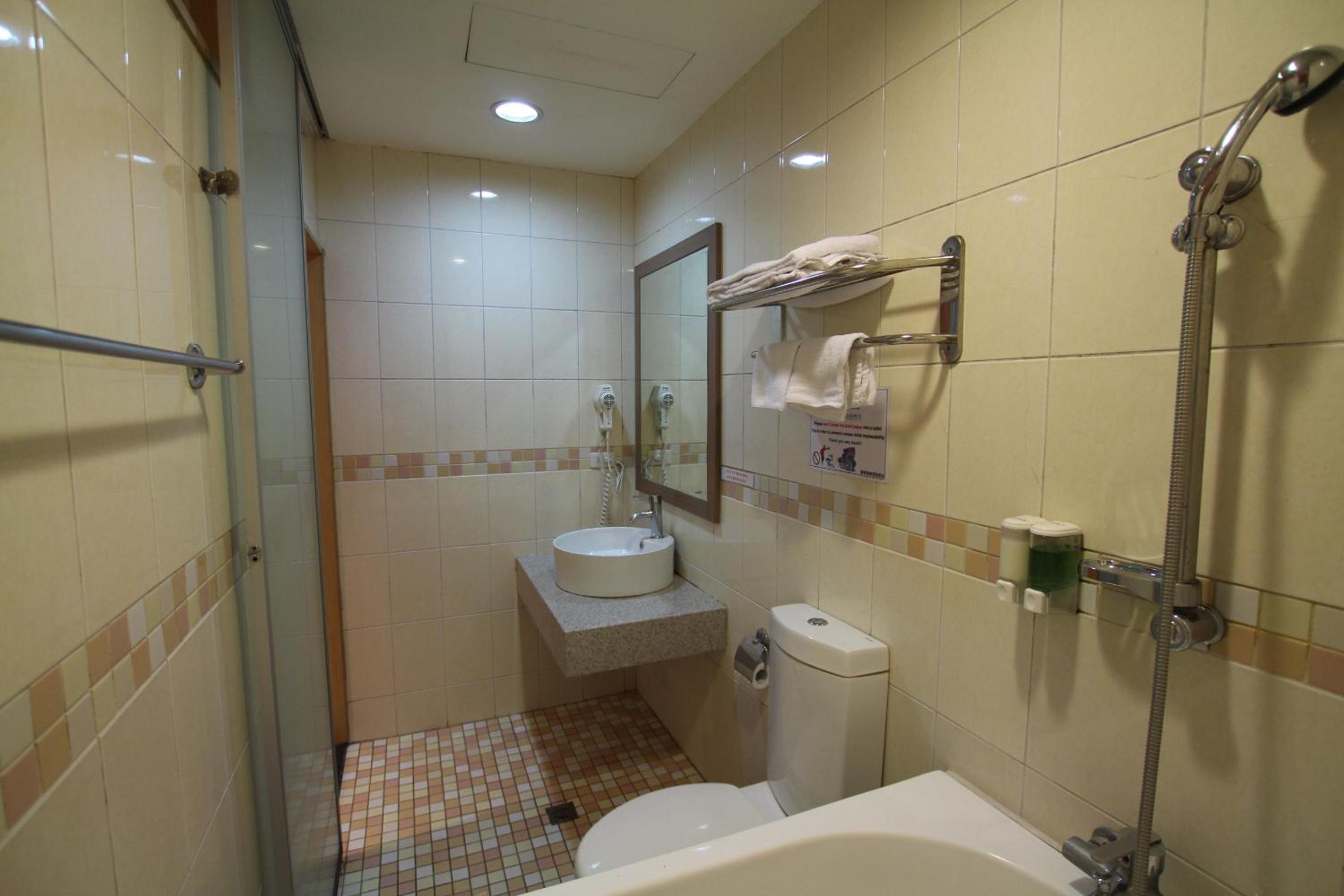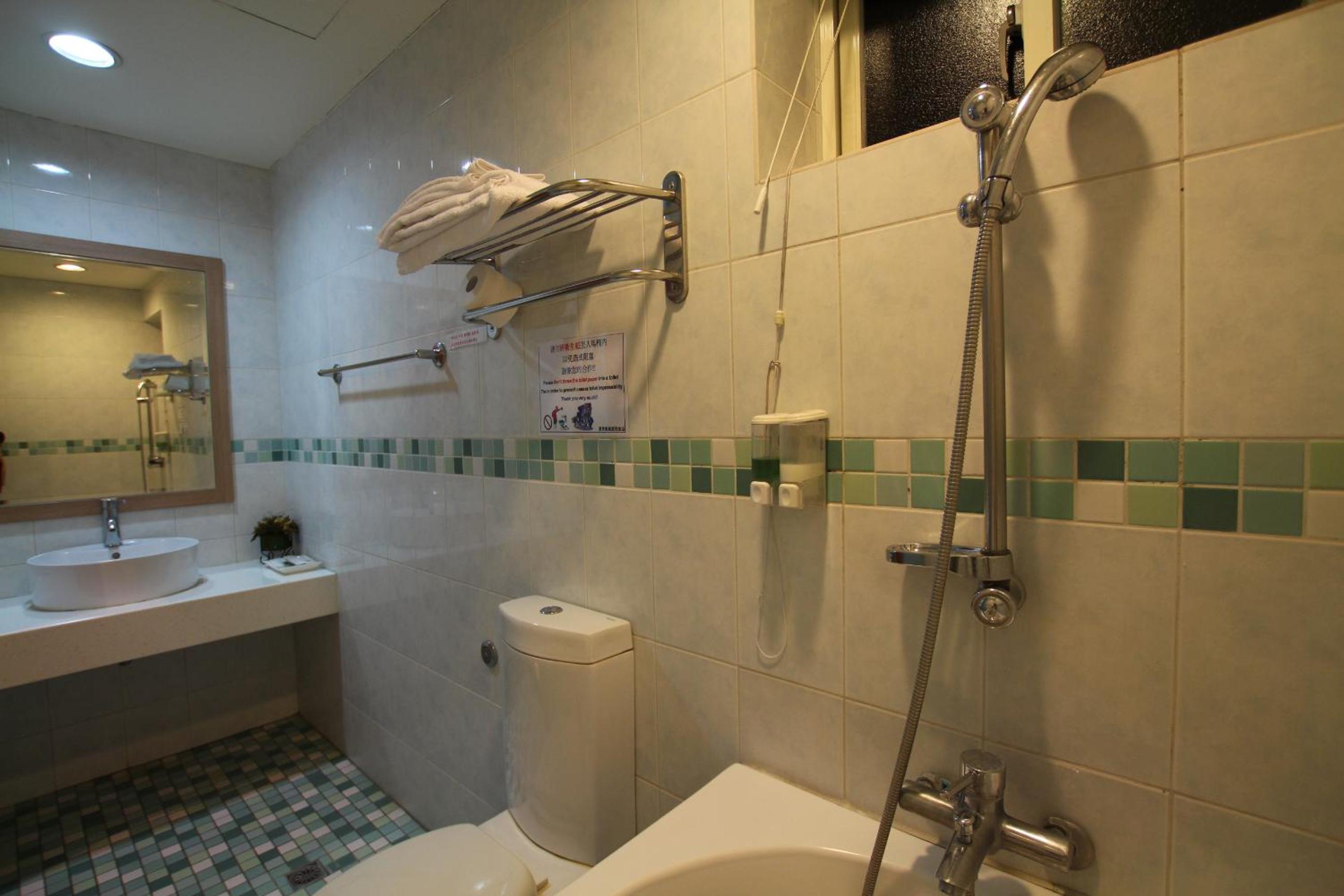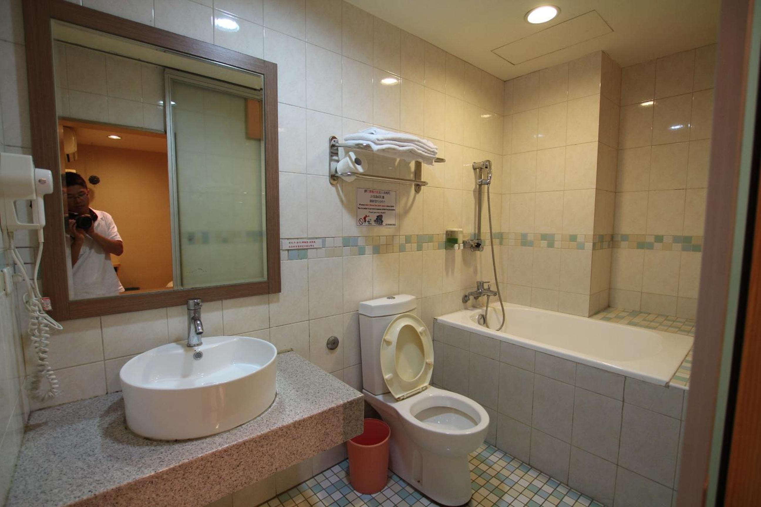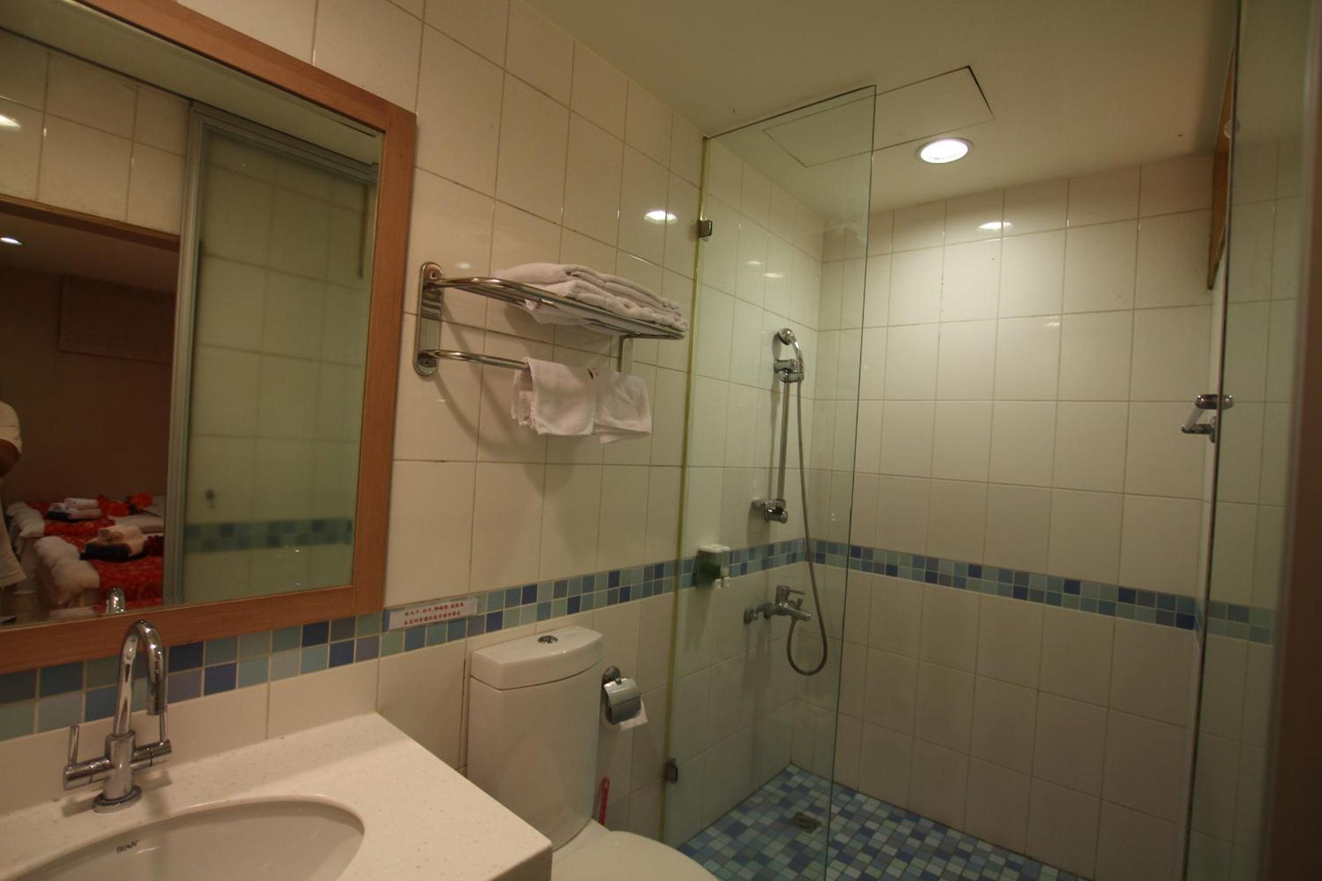 蓮蓬頭的熱水,會忽大忽小,所提供的沐浴乳洗髮精,感覺還可以看到很詭異的顏色已經有分層的狀態。