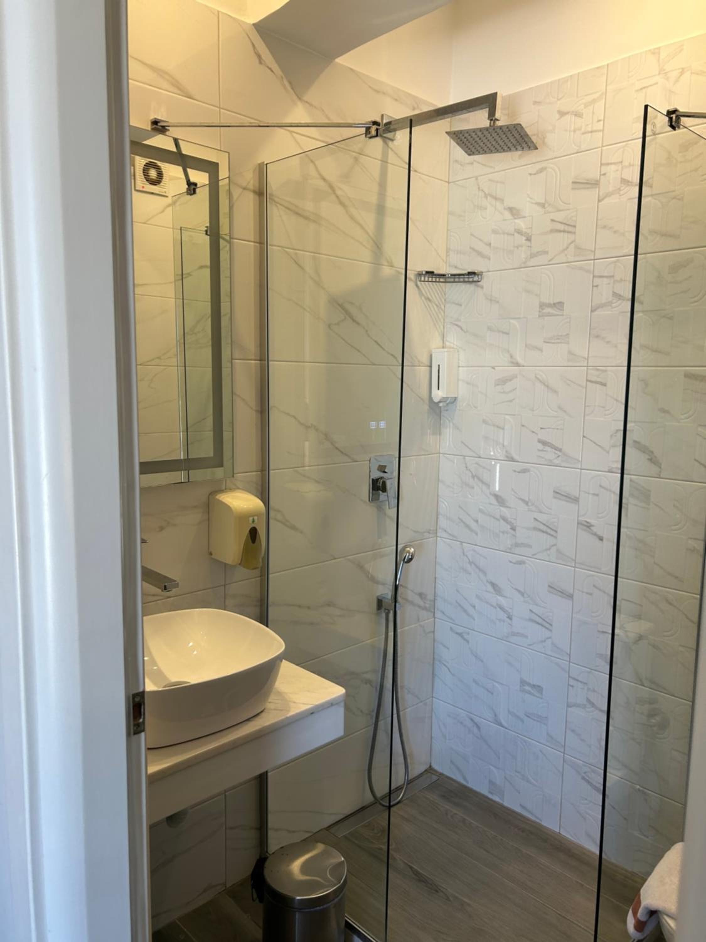 Υπέροχο ξενοδοχείο, άψογη καθαριότητα, ήσυχη περιοχή, άνετο πάρκινγκ έξω στο δρόμο.
