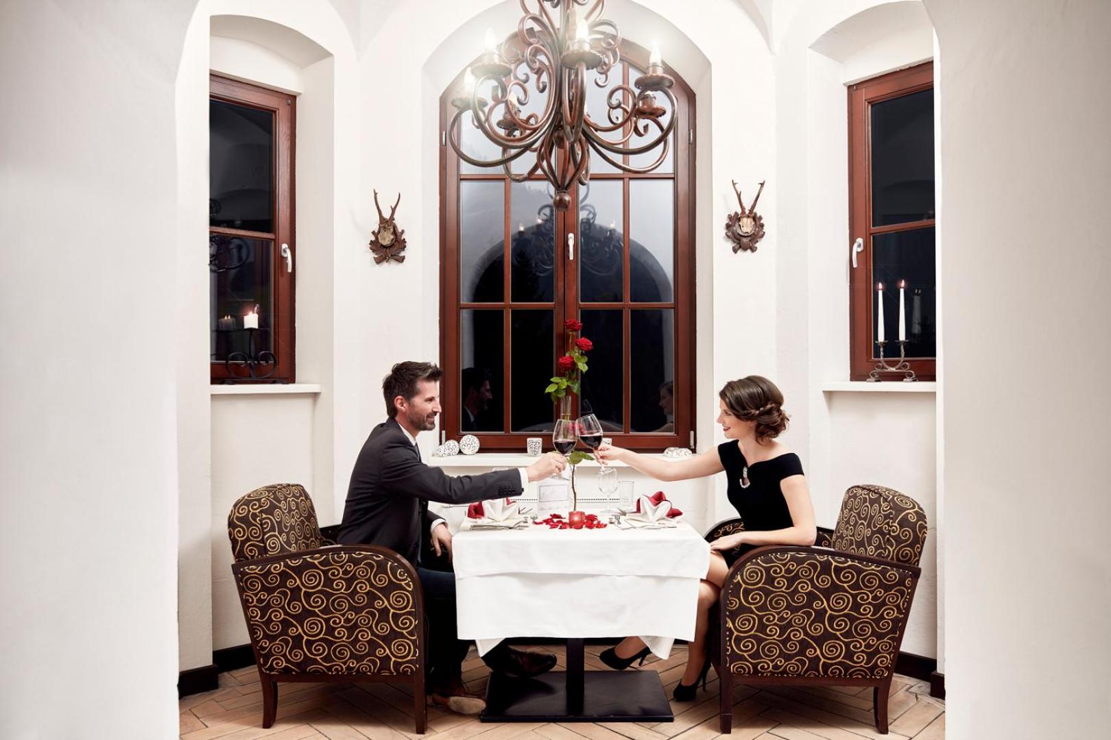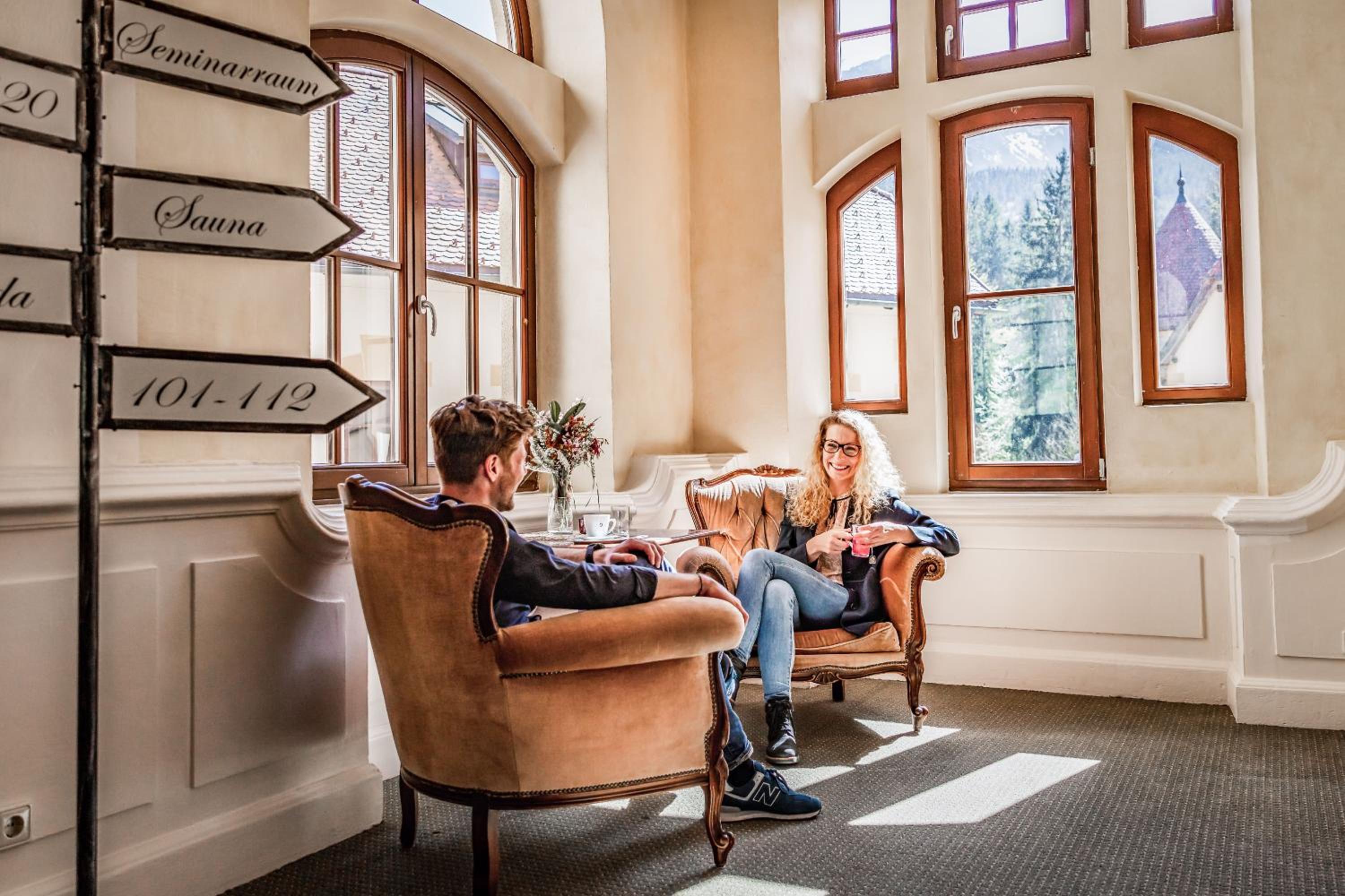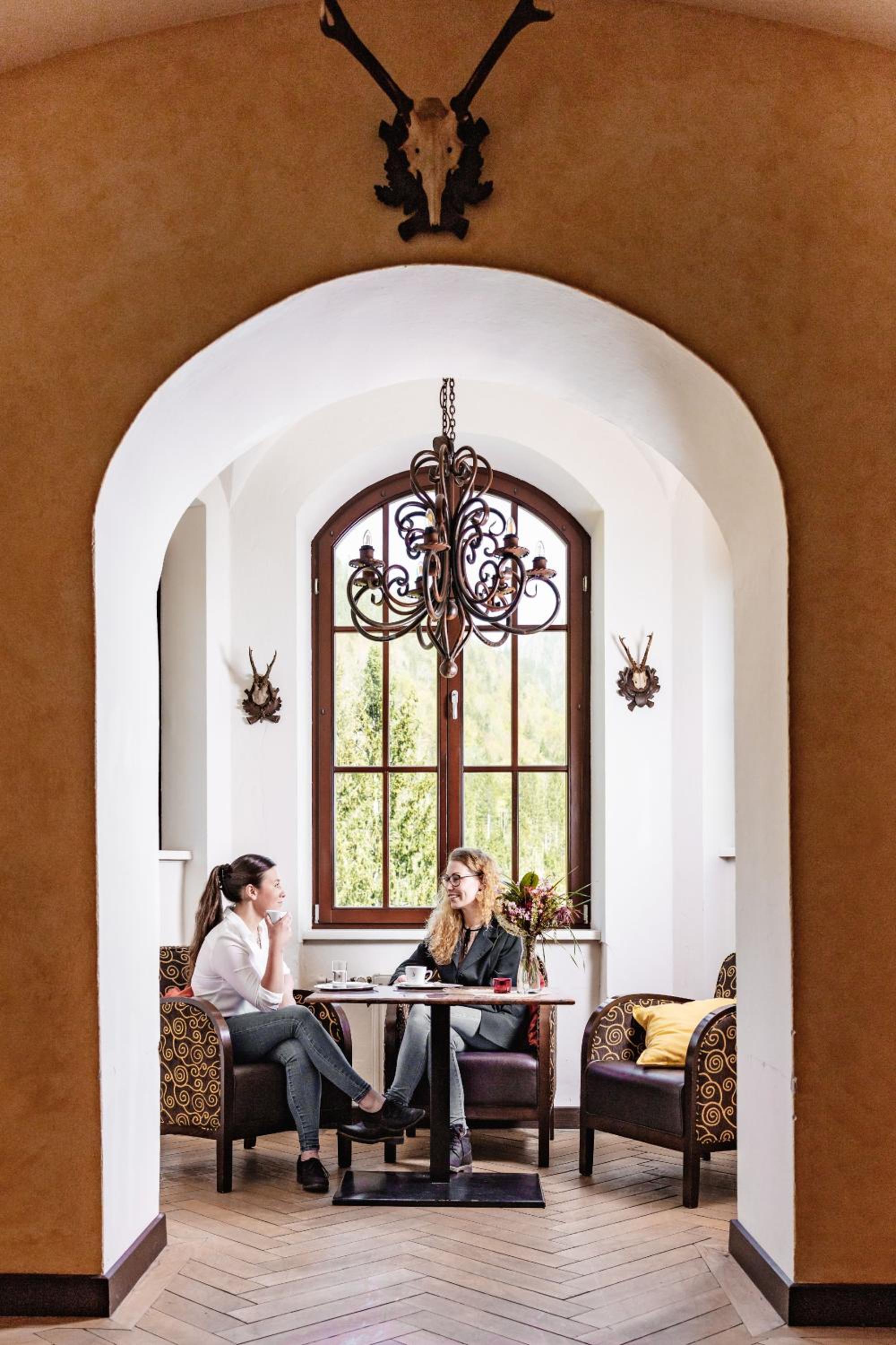 Experience a unique stay at Naturhotel Schloss Kassegg, nestled on the edge of a forest with breathtaking mountain views. Enjoy regional cuisine in the charming dining hall and relax on the sun terrace with snacks and coffee.