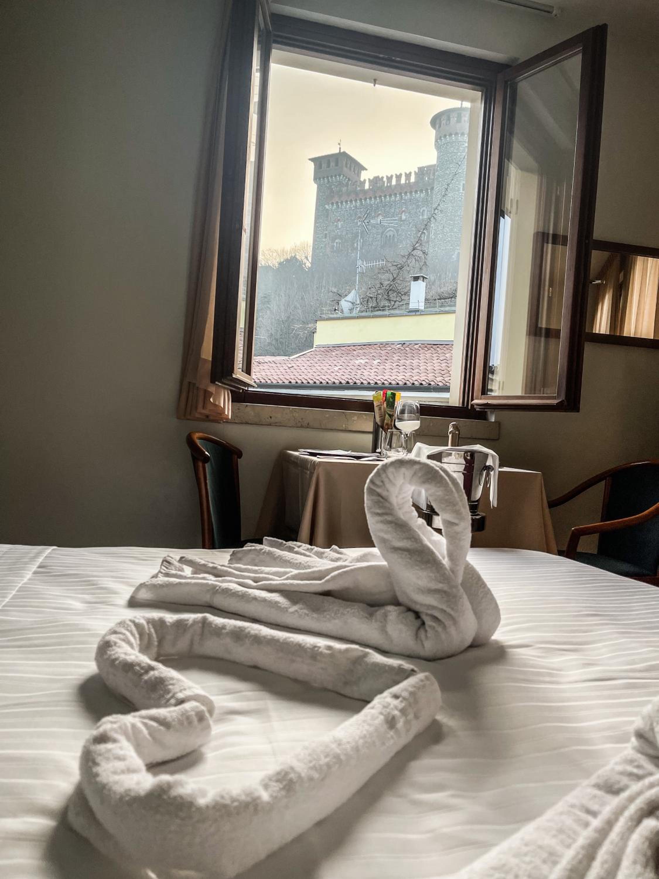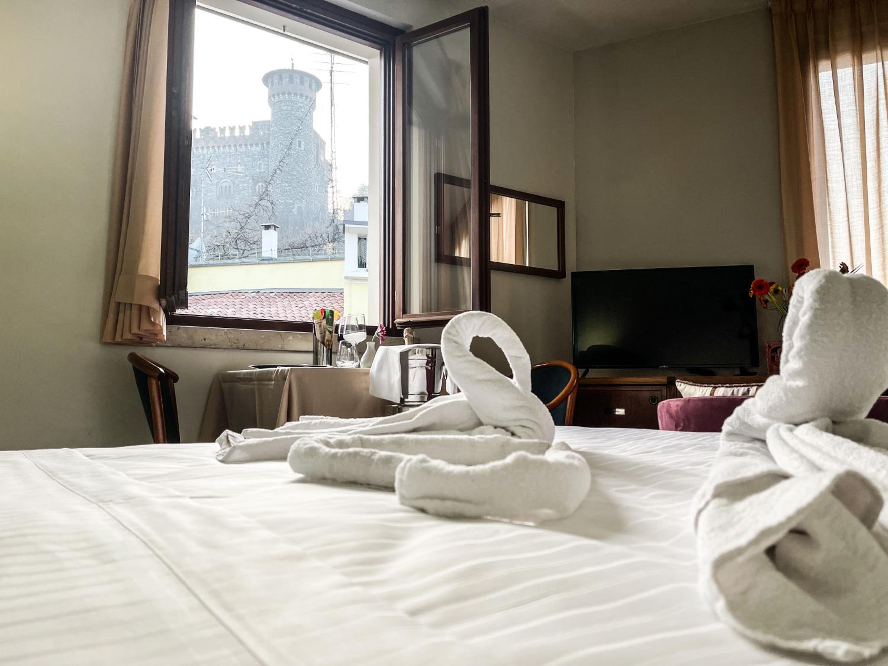 Hotel Elefante, located in Montichiari's historic centre, offers a charming stay opposite the medieval Bonoris Castle. Enjoy stunning views of the castle from some rooms with classic design and modern amenities like air conditioning and LCD TVs.