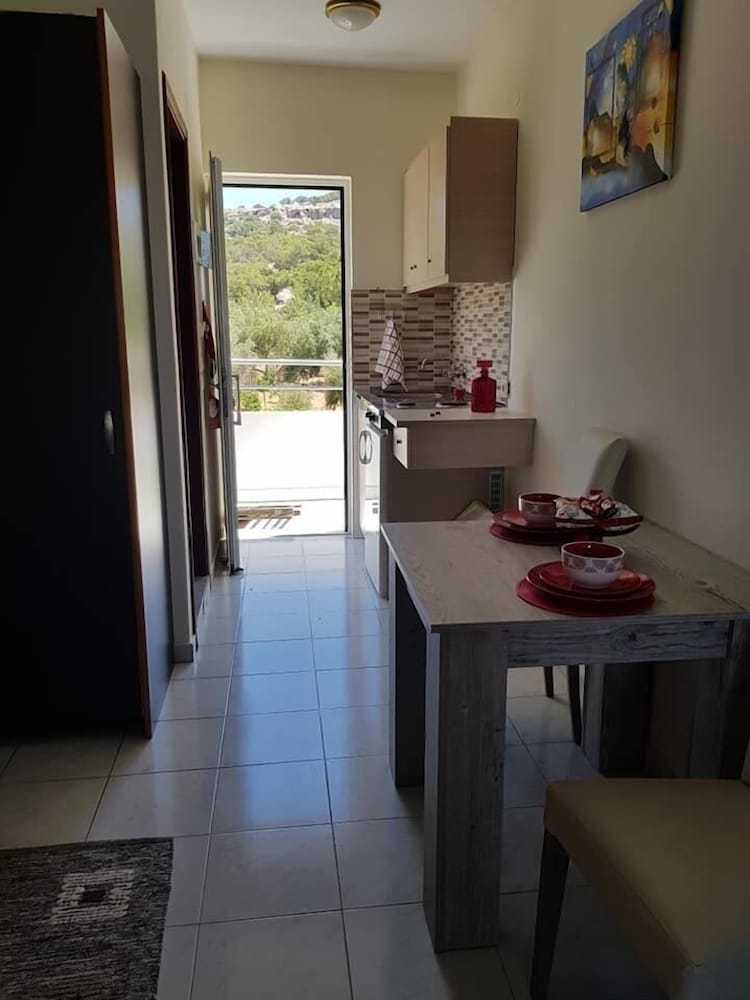 Accueil très sympathique du propriétaire, Georges, dans un appartement qui nécessite un peu de rénovation, ce que le propriétaire a prévu. Mais, l'ensemble est très agréable, terrasse à l'ombre des citronniers et studio bien équipé. La plage est proche à pied et le quartier calme. La ville de Pefkos est à 10 mn à pied. Une réservation à conseiller.