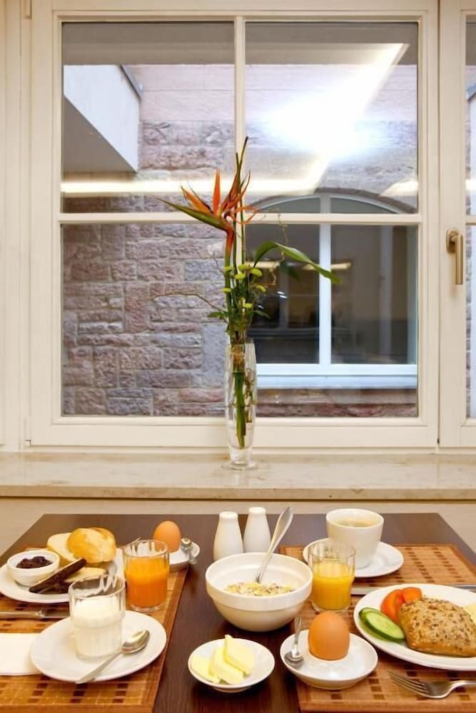 Charming old building, huge, lovely room with kitchenette, big bathroom, everything very clean, excellent breakfast, very friendly staff, not too long a walk from the old town / city centre. We could check in well before the check-in time, it was raining, so big thank you for that.