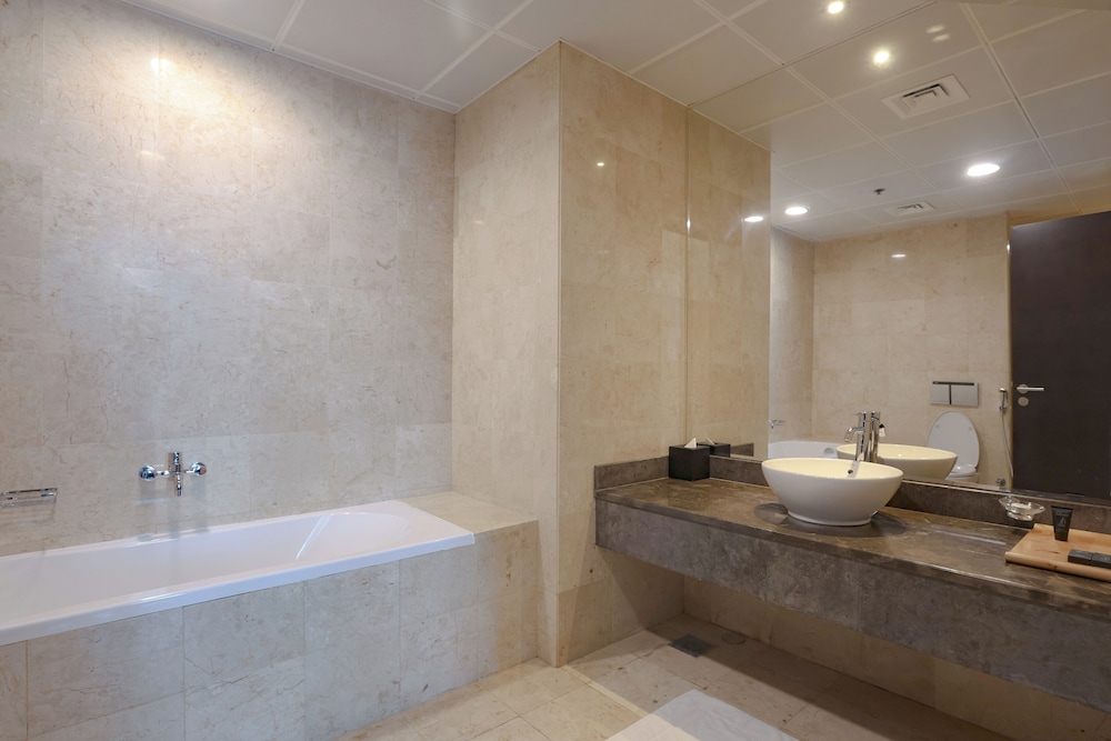 We booked 2 one-bedroom apartments because we’re 5 adults and these have 4 bathrooms…. Dirty bathrooms like they have not been cleaned for ages! Major maintenance issues! No house cleaning no service!!! Also no towels no tissues no toilet roll no toiletries! They said upon request!!! We requested but were told we can only get 2 !!!!! I had to fight for towels! Reception people were cooperative. Overall if it wasn’t for sold out gitex circumstances we would not stay