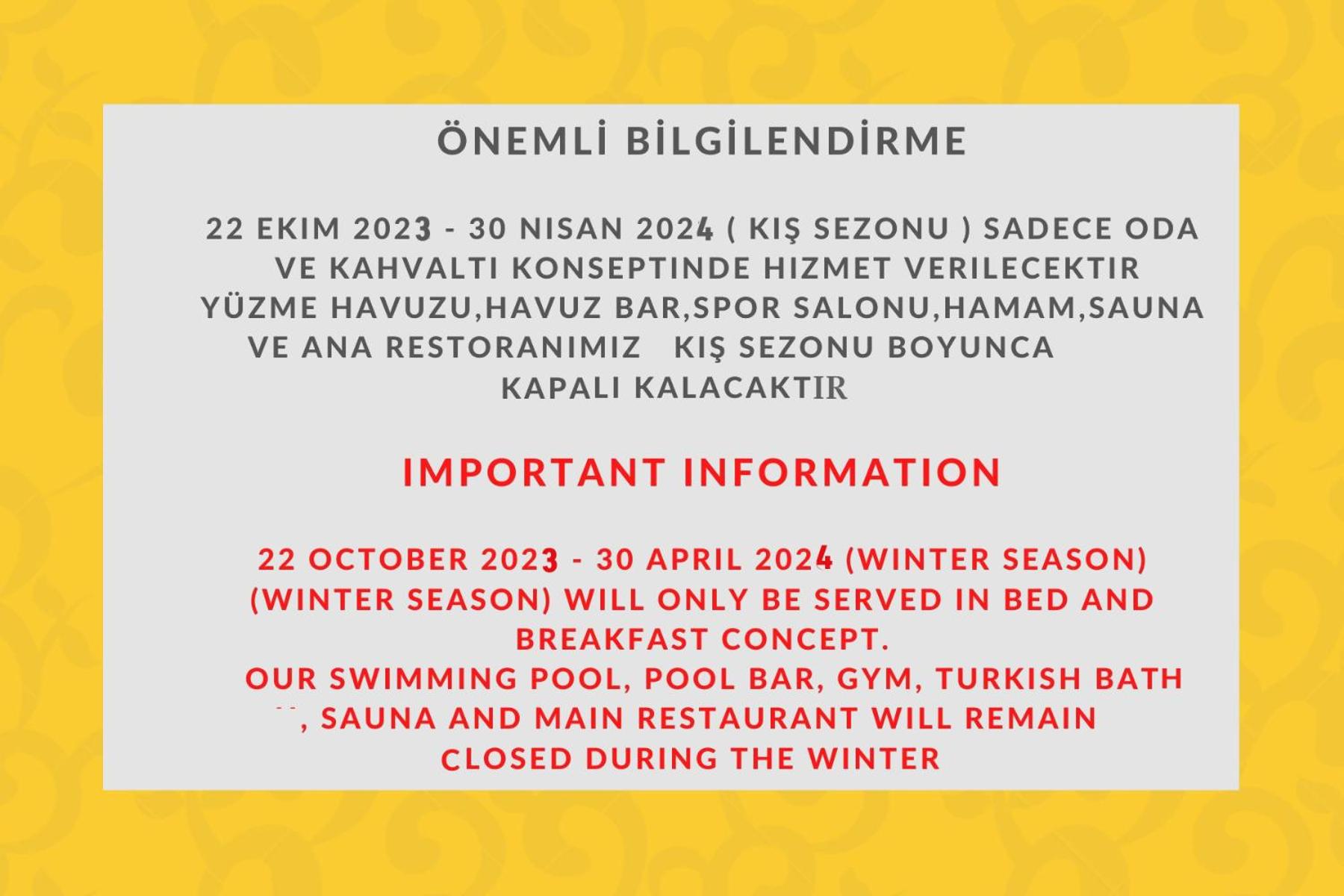 Swimming pool: Closed from Tue, Oct 21, 2025 until Fri, May 1, 2026