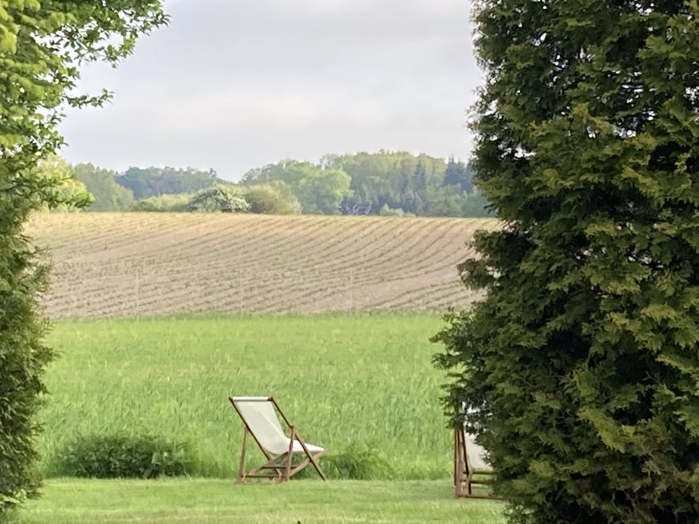 L hotel est en pleine campagne cest tres calme. Tout es discret calme . Les chambres sont propres et bien équipées petit déjeuner buffet tres copieux. Bref un bel endroit