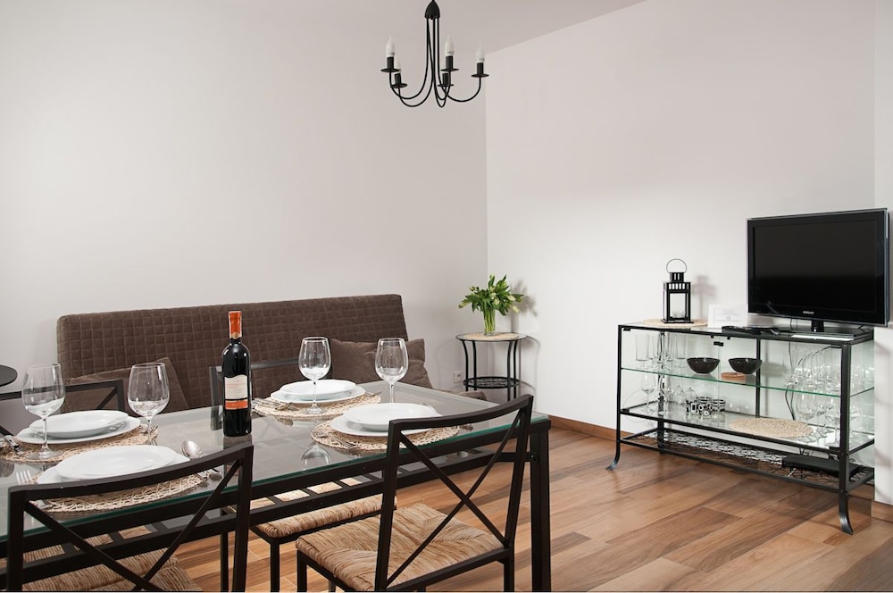 Irritating to have to pick up and drop off keys on a different location then the apartment. Good location very close/ in old town. Hard beds.