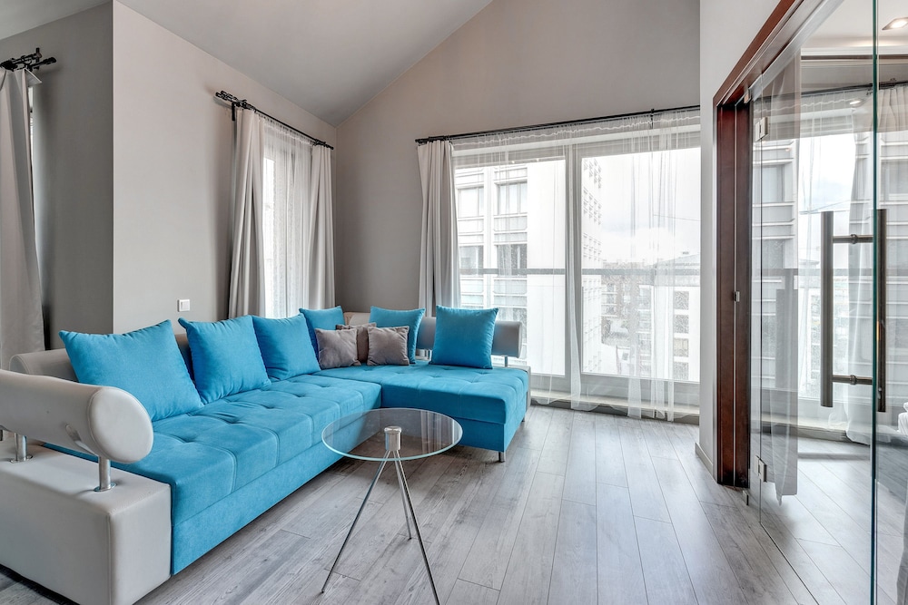 Jättefina rymliga lägenheter, med ett bra läge. Sköna sängar. Vi hade balkong mot floden, där det är sol på EM. Pool i källare. Andra gången vi bodde här, tyvärr var nyckelhämtning/lämning någon km bort den här gången. entréhallen är bemannad, men räkna inte med någon hjälp, personerna som arbetar där är på gränsen till otrevliga. Kommer troligen bo här igen