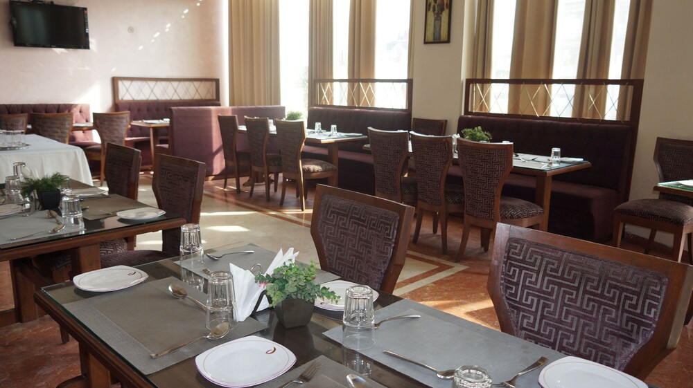Enjoy a garden view while dining at Ambrozia or opt for room service; don't miss the daily complimentary reception.