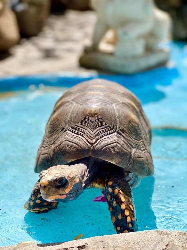 Hotel owners have pets - small dogs, 2 cats, and several rescue tortoises. All friendly.