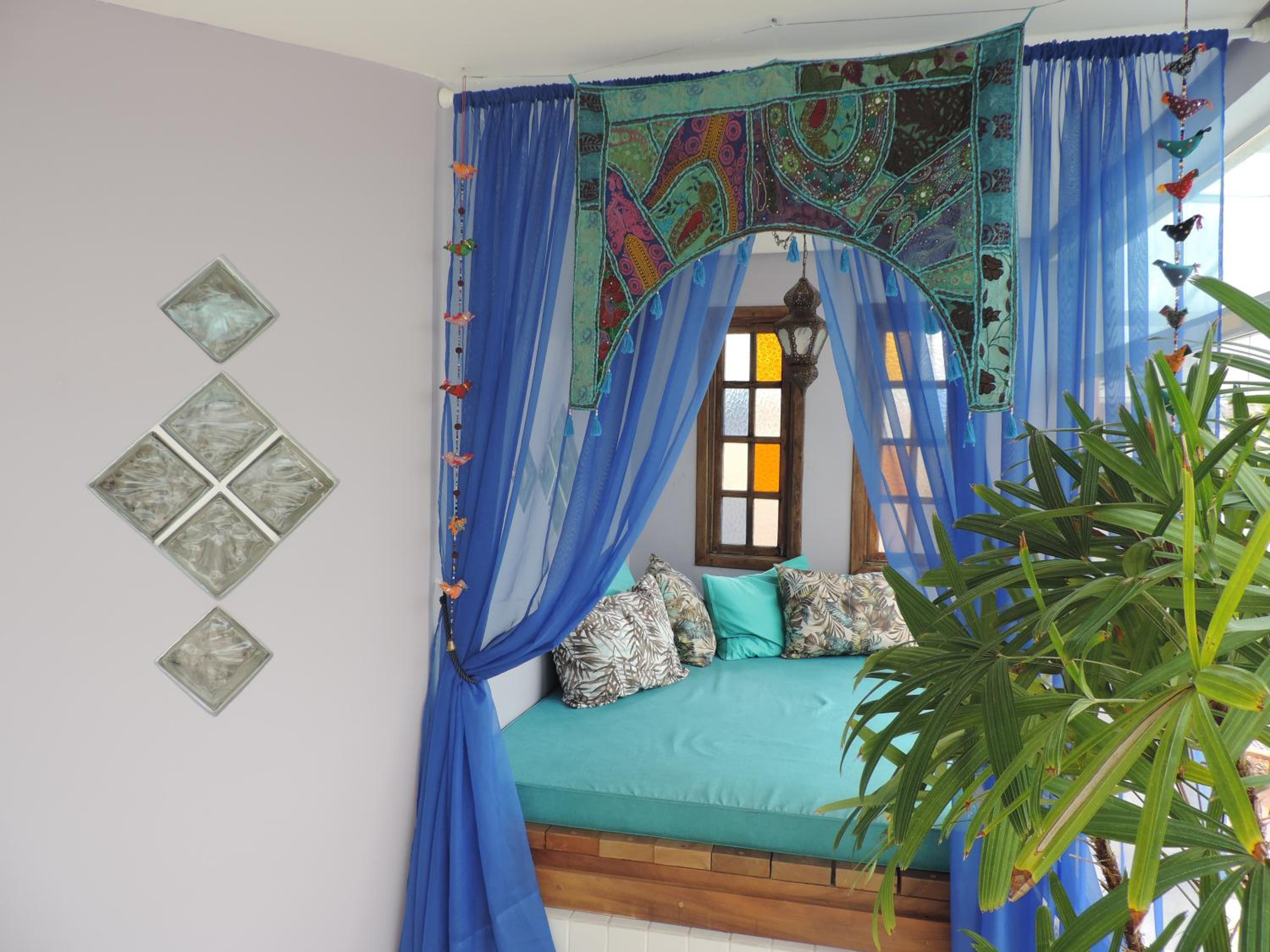 Camas, rede, varanda, piscina, decoração muito linda e bem confortável. Café da manhã bom.