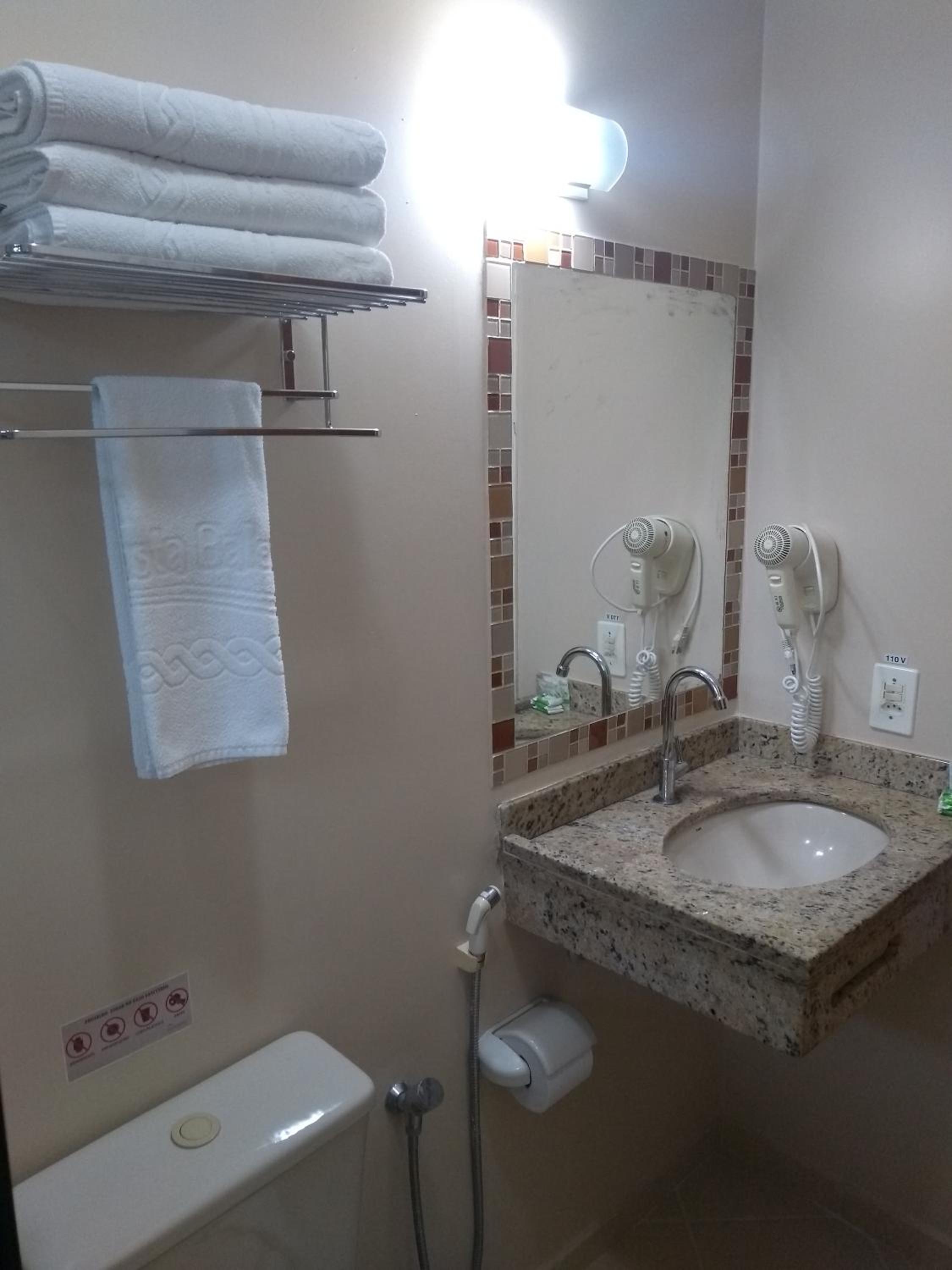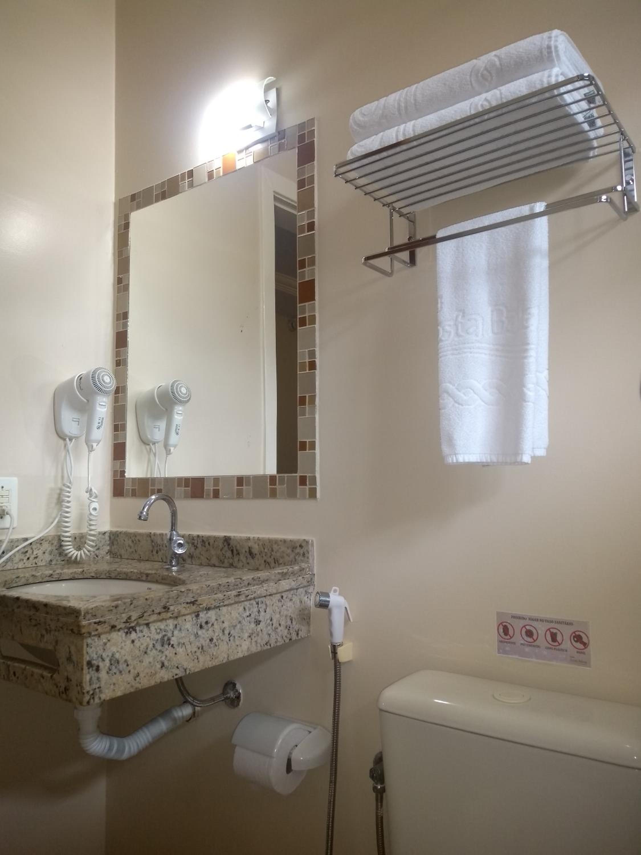 Poucas tomadas, baixa manutenção do banheiro.