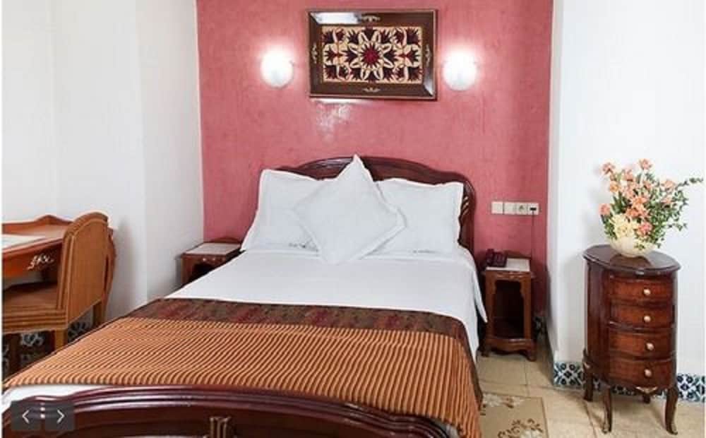L'hôtel est bien situé mais il fait très vieux (alors que l'on m'a dit qu'il était tout récent). Le hall est sympa, la déco mauresque dans les chambres est sympa mais il suffit de regarder les mûrs fissurés, la salle de bain mal finie, les tâches sur les draps de lits pour se dire que l'exigence s'est arrêtée juste après la construction de l'hôtel.