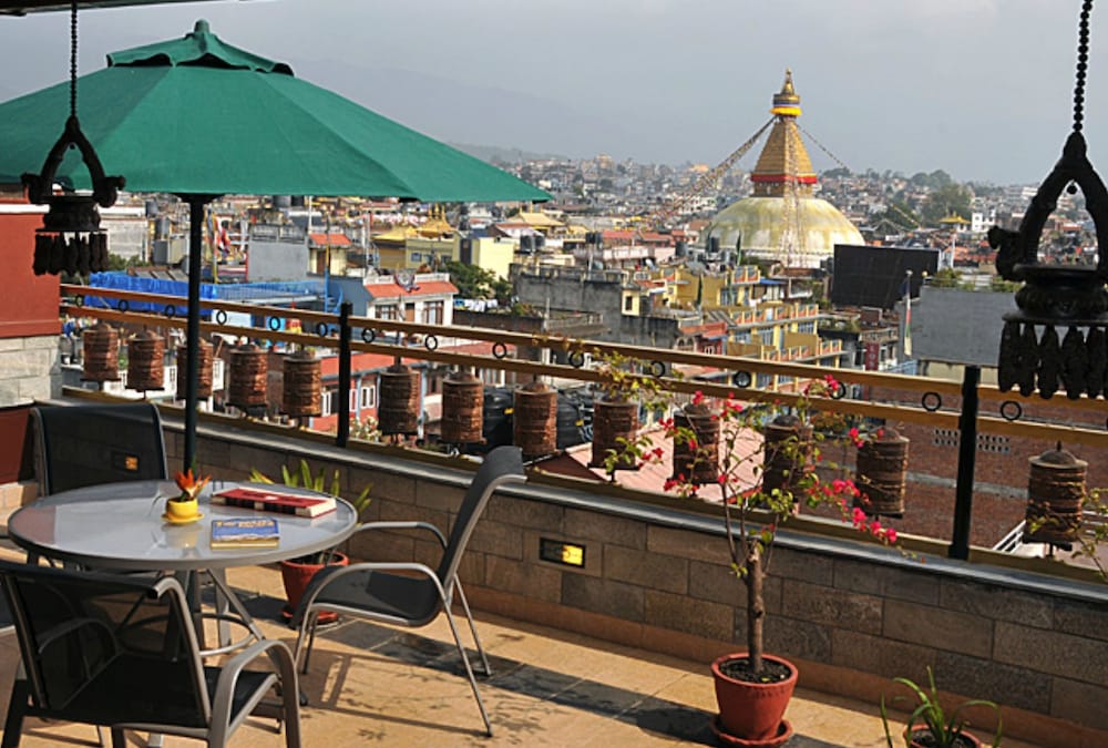 Good neighborhood with numerous dining options and Buddhanath nearby (walkable). Nice terrace dining and bar, attentive staff, good price, recommend!