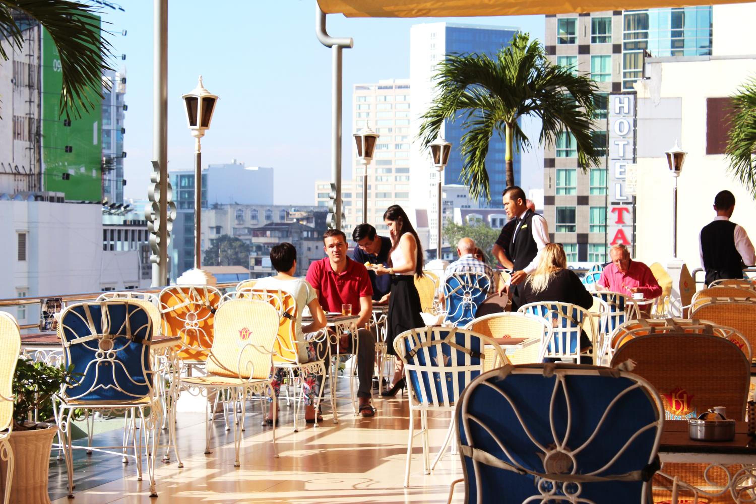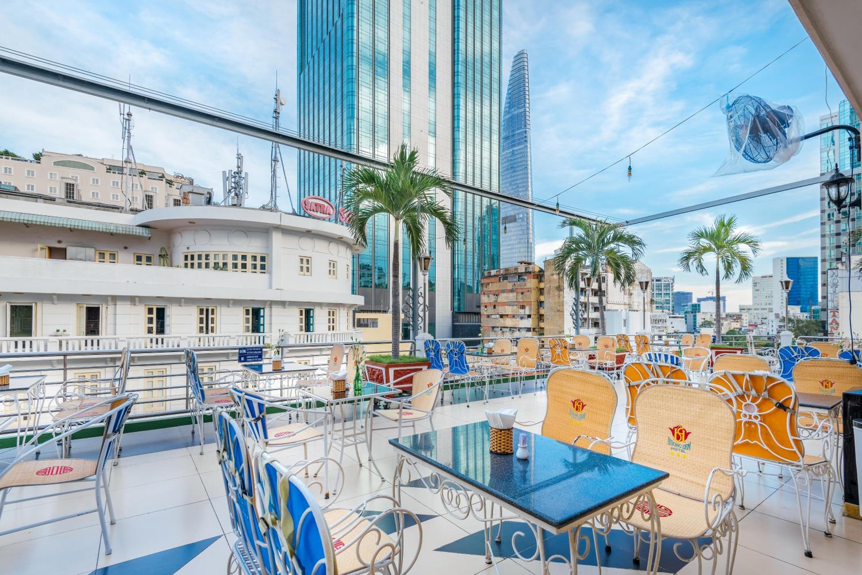 Huong Sen Hotel offers a unique experience with its rooftop restaurant boasting breathtaking city views.