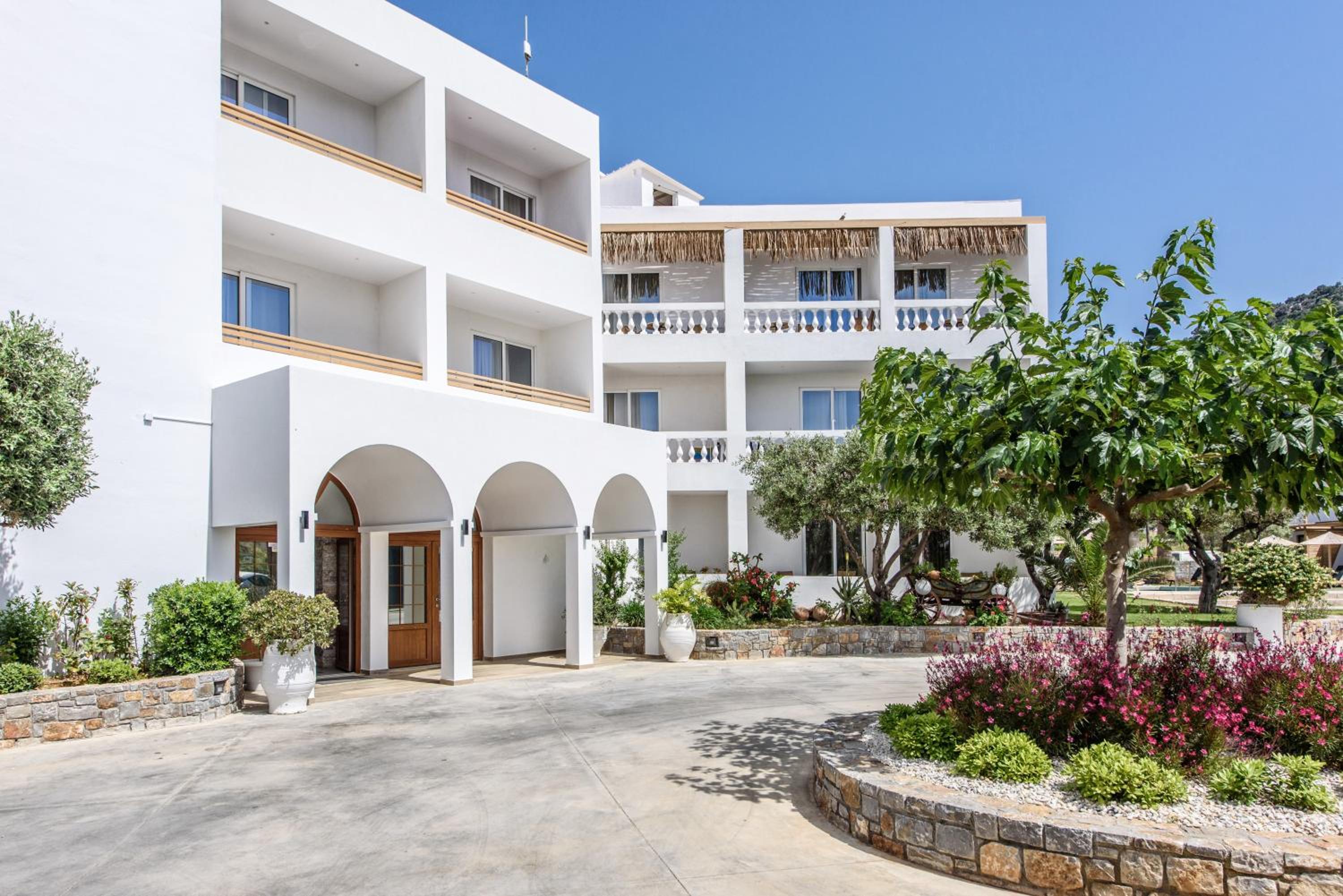 Aggello Boutique Hotel offers a luxurious stay just steps away from the sandy Stalis Beach. The palm-tree garden, swimming pool, and poolside restaurant create a serene atmosphere for guests to relax and unwind.