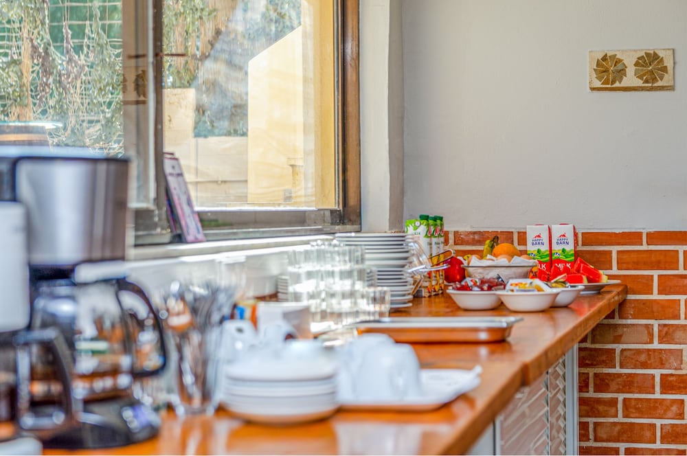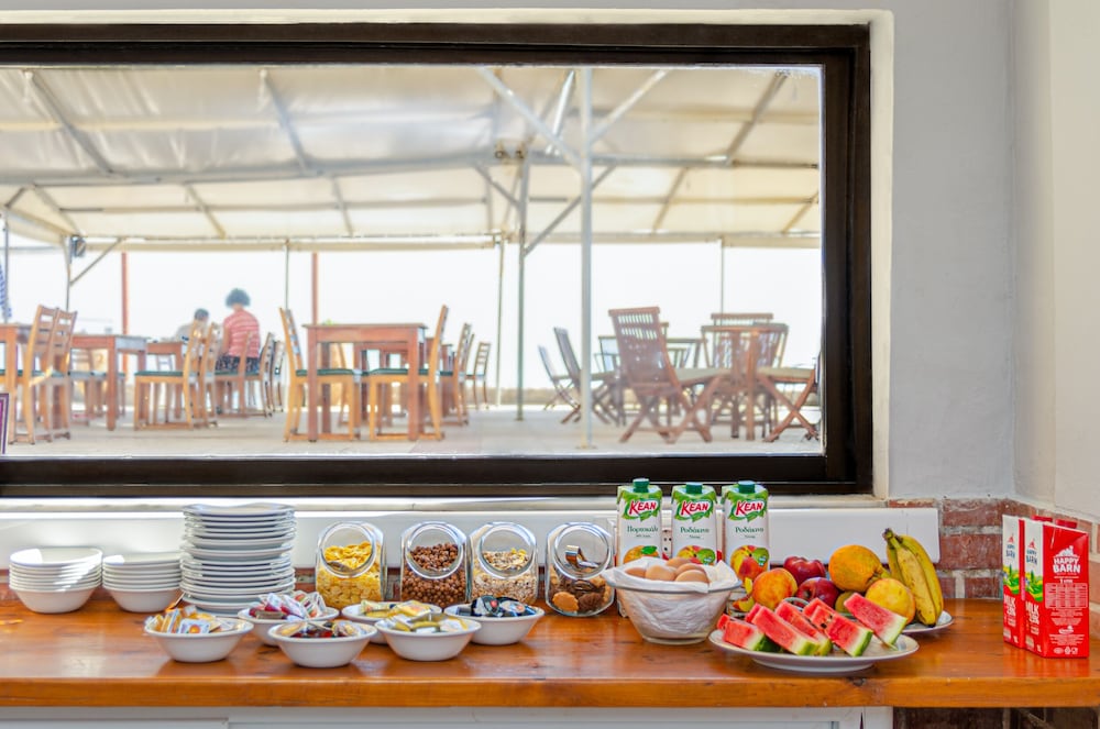 Restauranten serverer en veldig stor frokost med friskpresset appelsinjuice, egg, bacon, skinke ost, honning, syltetøy, oppskåret frukt, søte kaker og yoghurt med honning. Alt for 6 euro per person. Det er billigst i hele området.